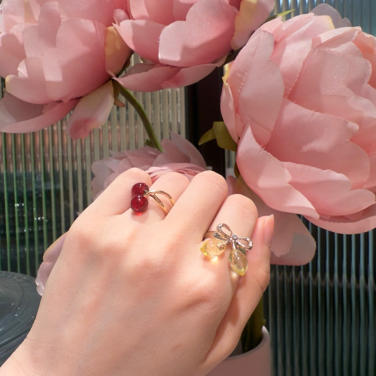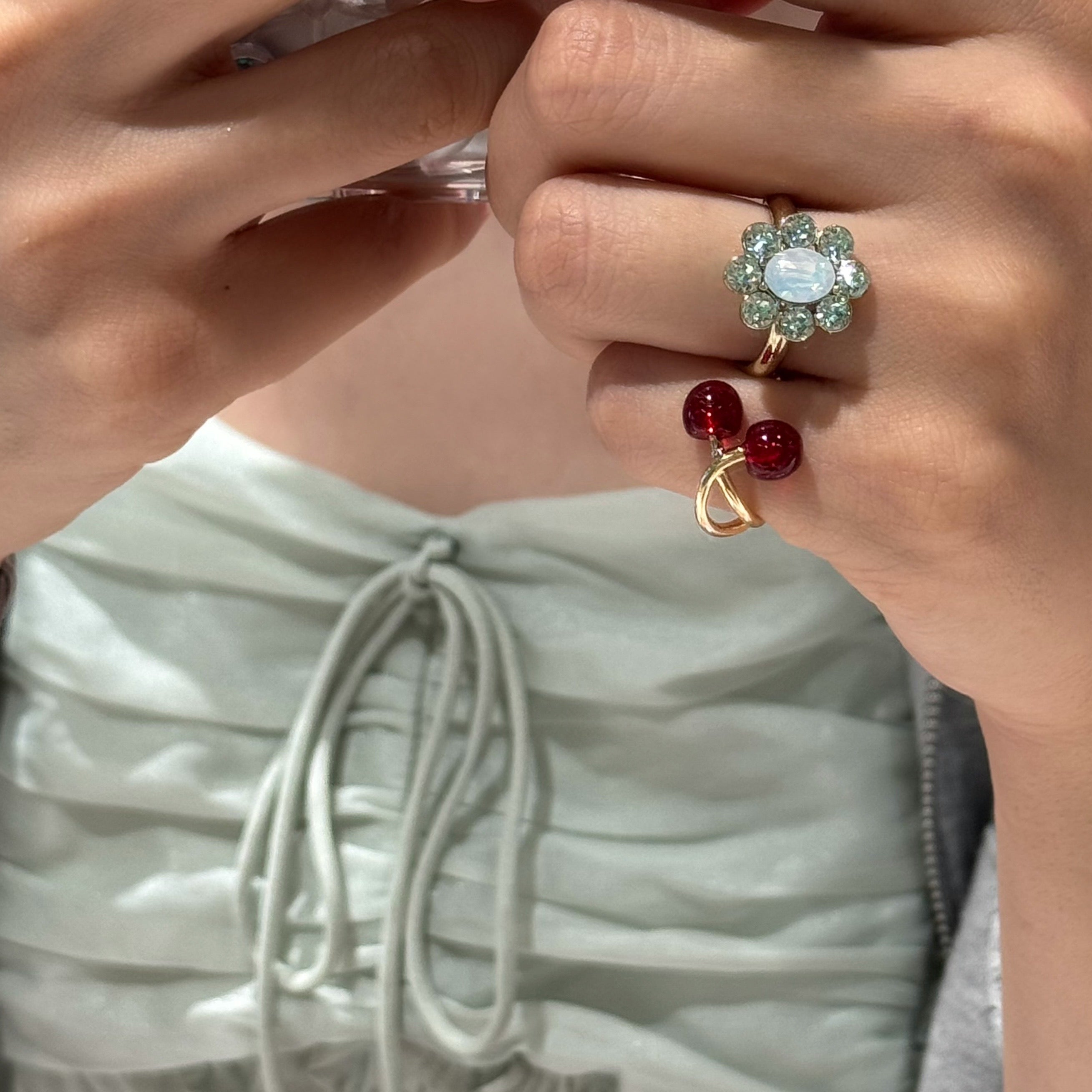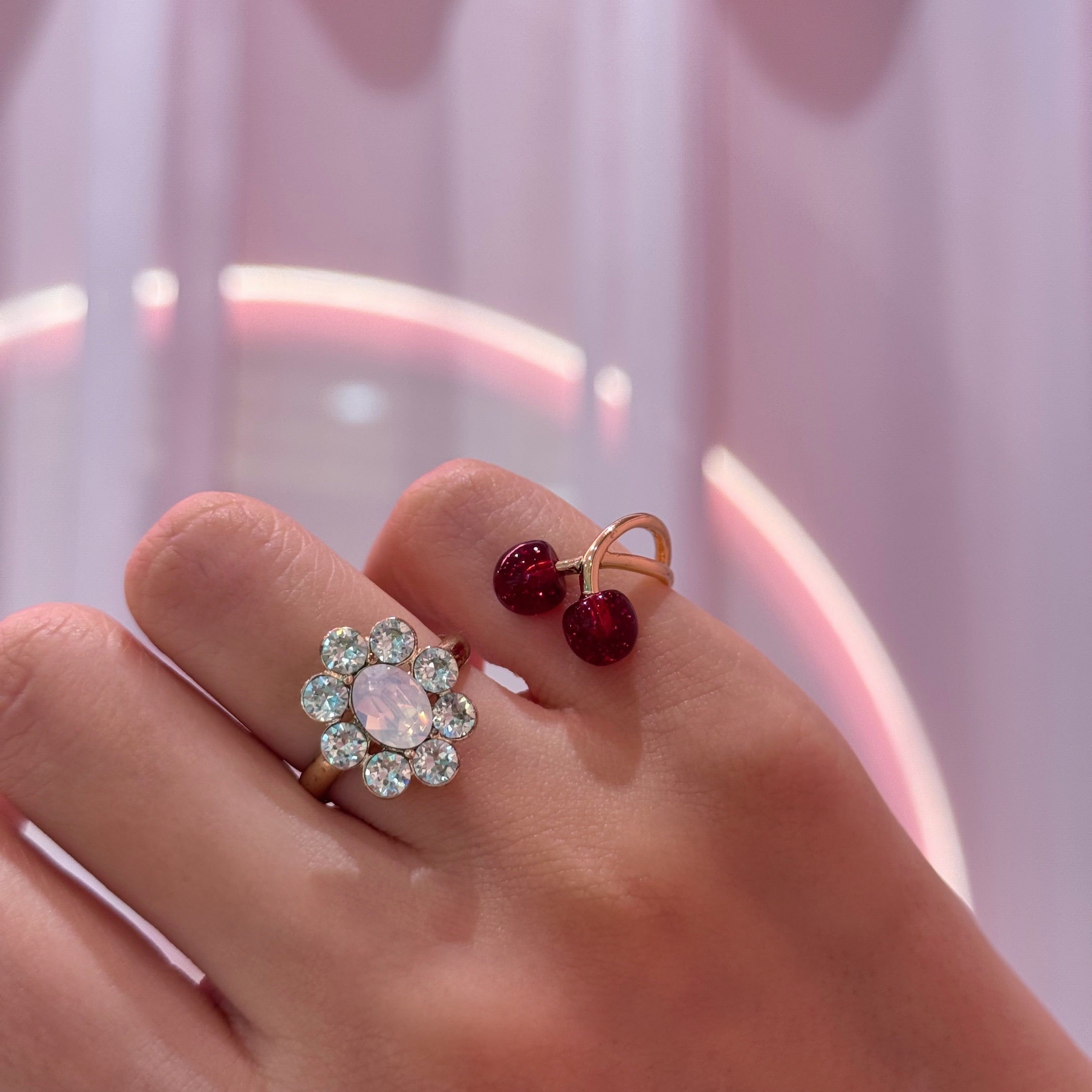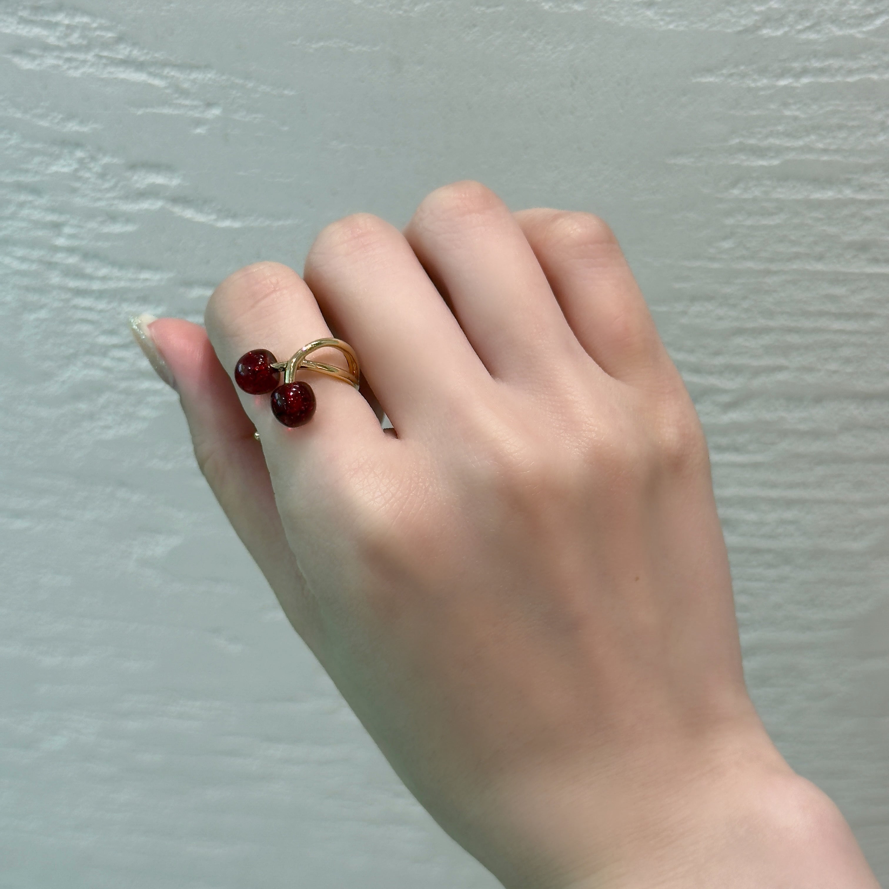 Liquemのブランドアイコン、人気No.1を誇るチェリーリングに、新たな定番カラーが仲間入り。チェリーリキュールのような深みのある「クリアレッド」に、初期に制作されたチェリーで使用した“ピンクラメ” を加えた伝統的なハイブリッド仕様です。ダークでつるんとした質感が魅力で、季節を問わず活躍します。