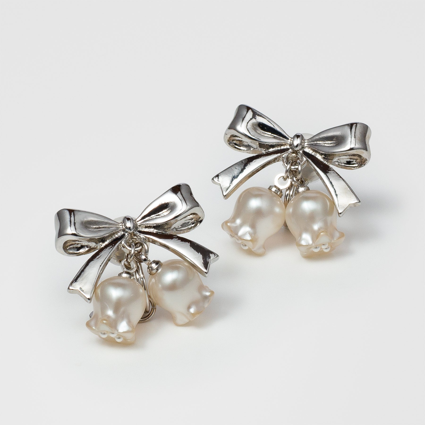 可憐なスズランを、淡い光沢のパール塗装で仕上げたイヤリング。