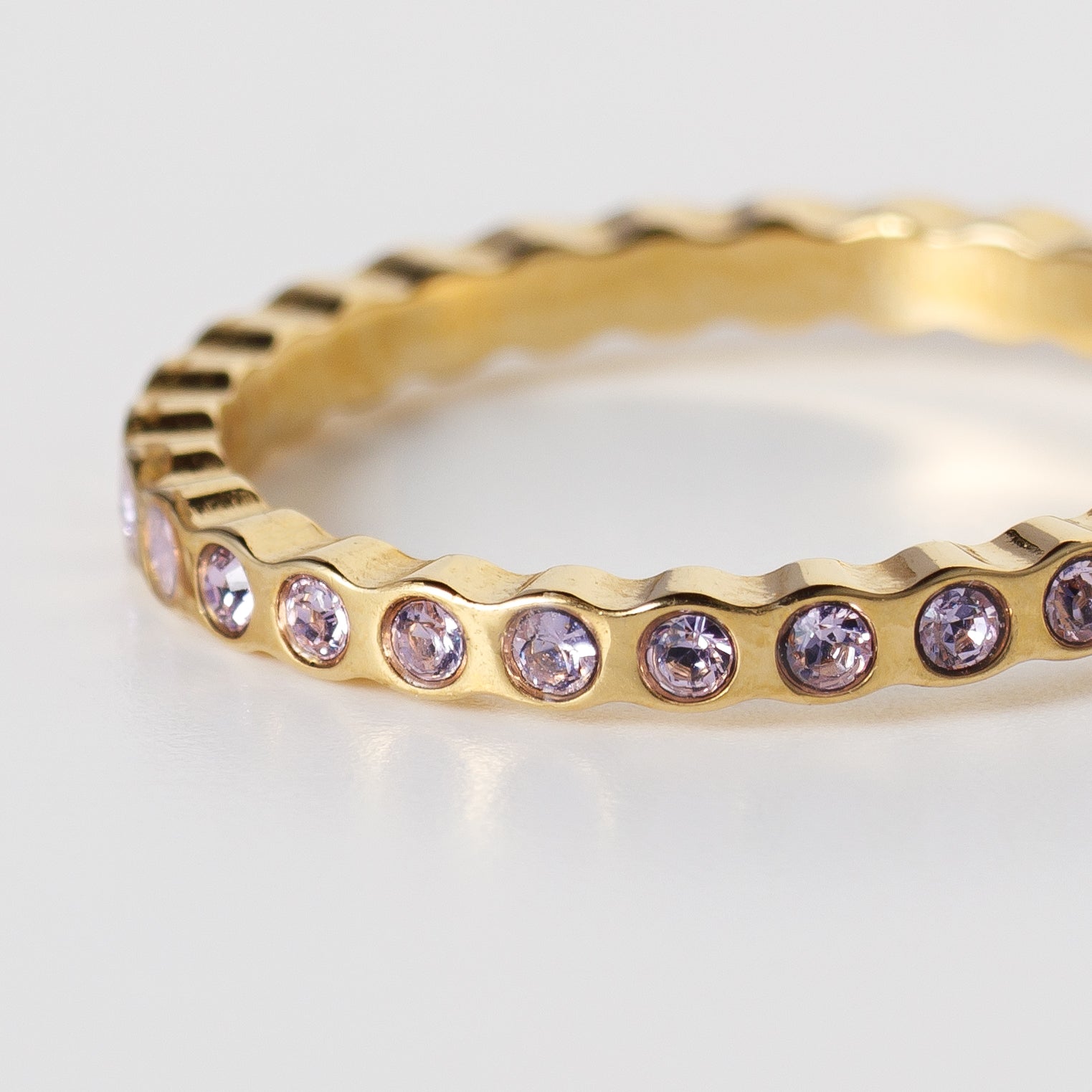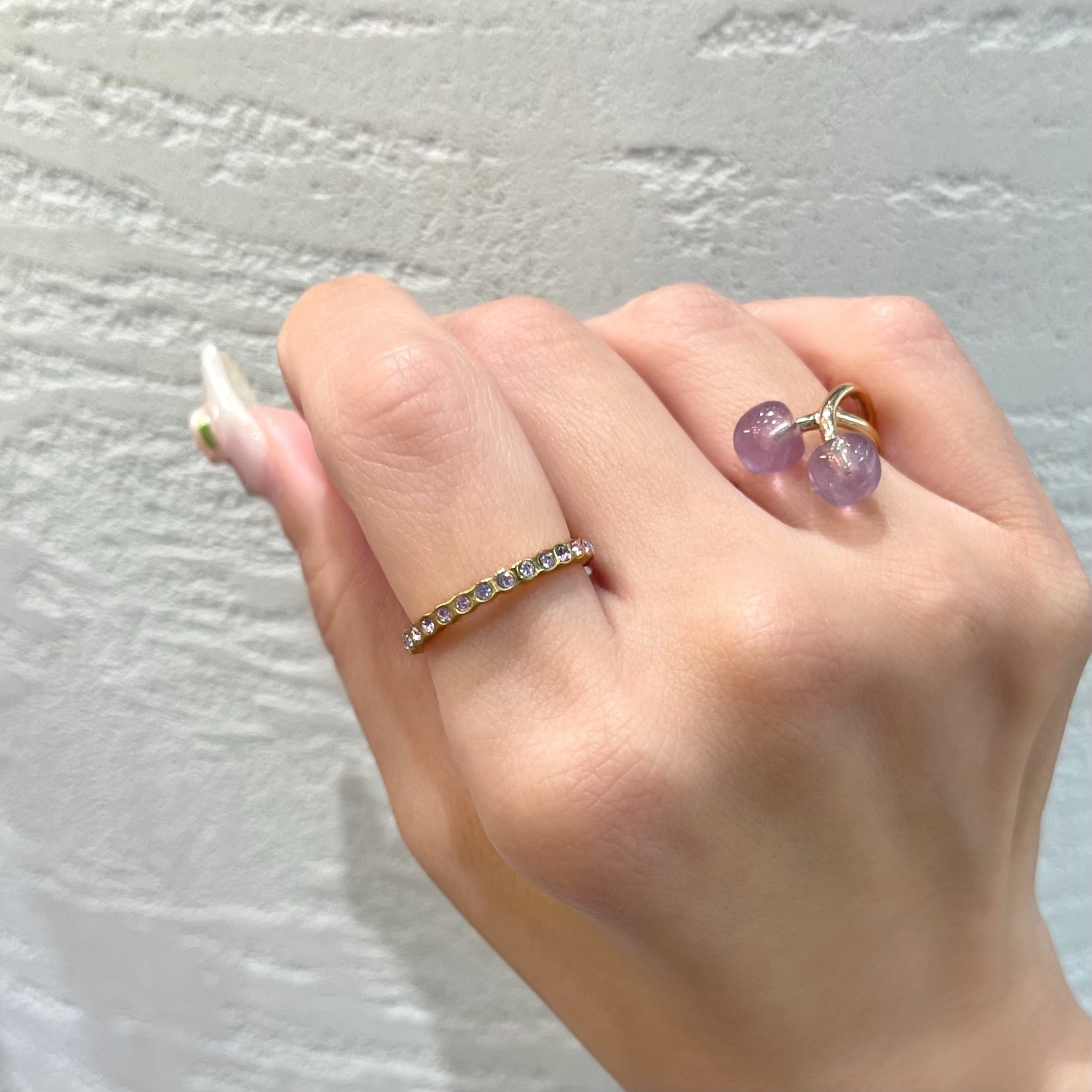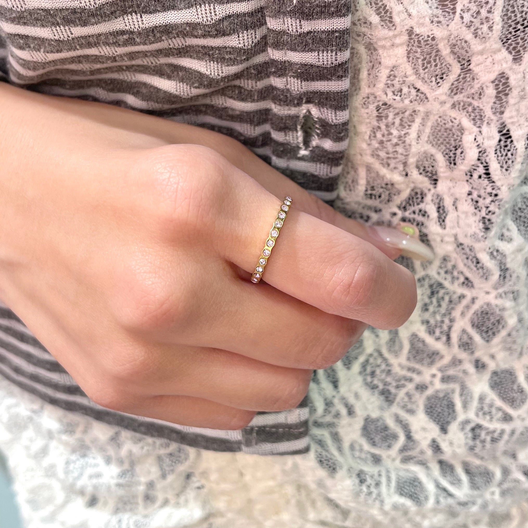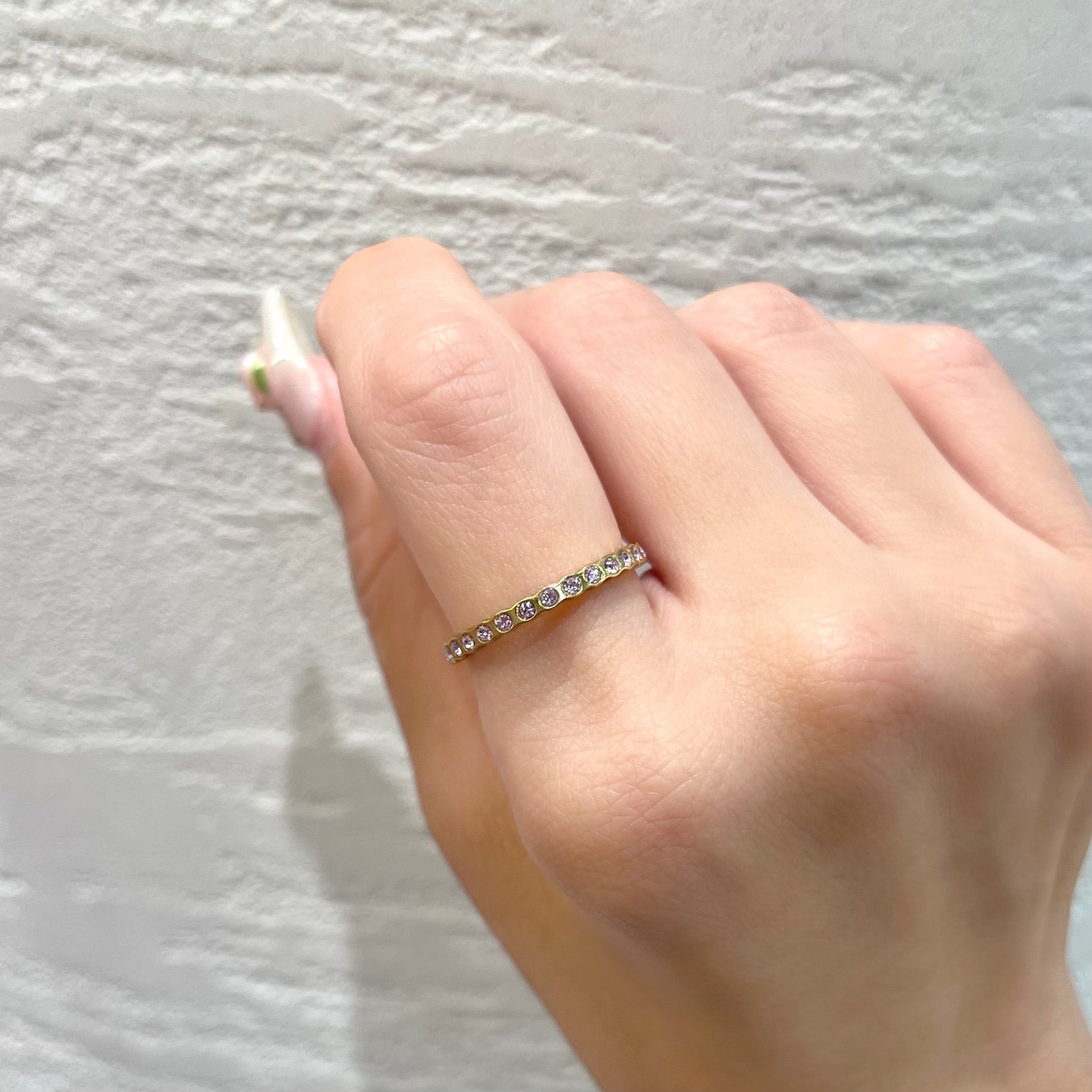 繊細なストーンをぐるりと一周に配し、指先に光のラインを描きます。
