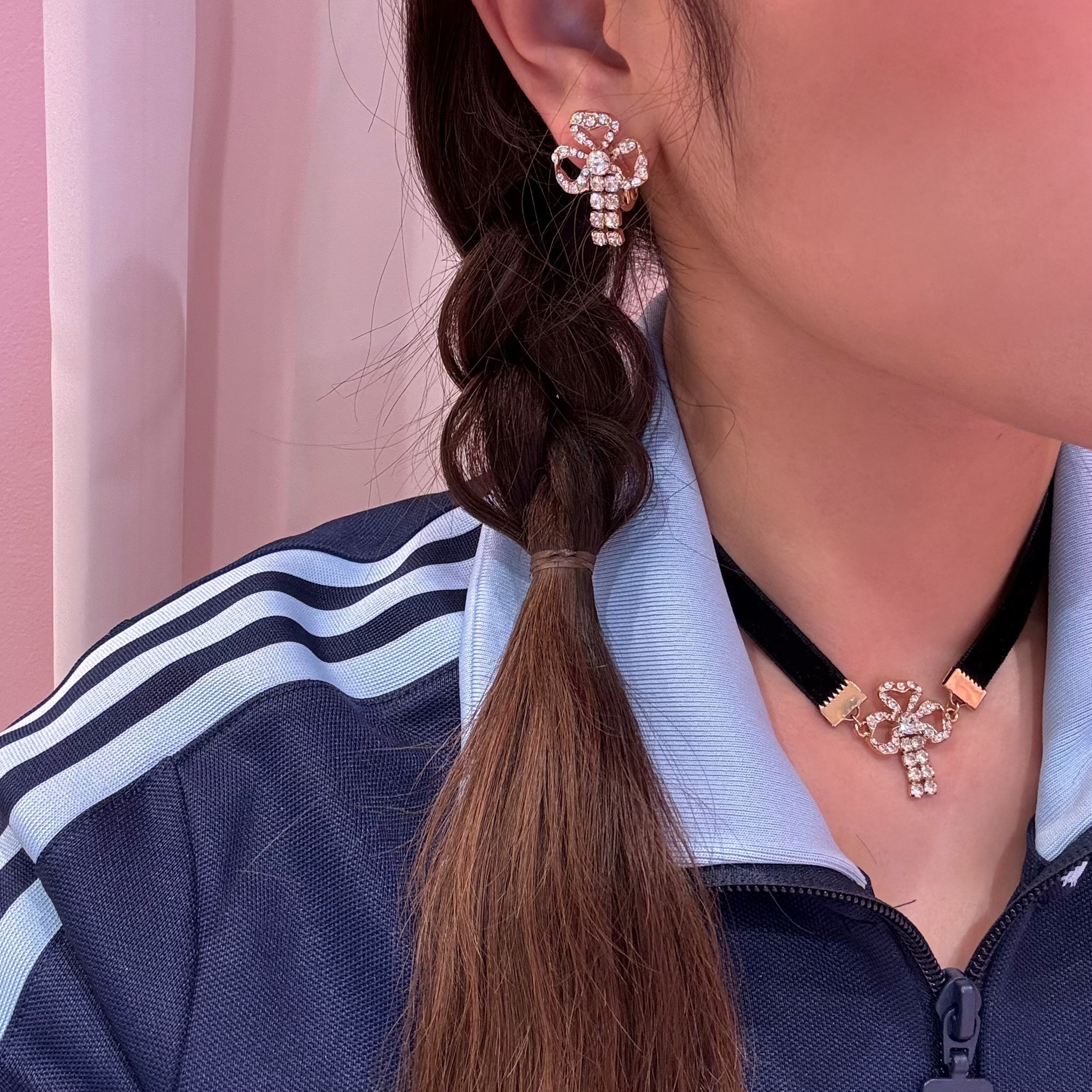 立体的なクラシカルリボンに小粒のクリスタルを埋め込み、