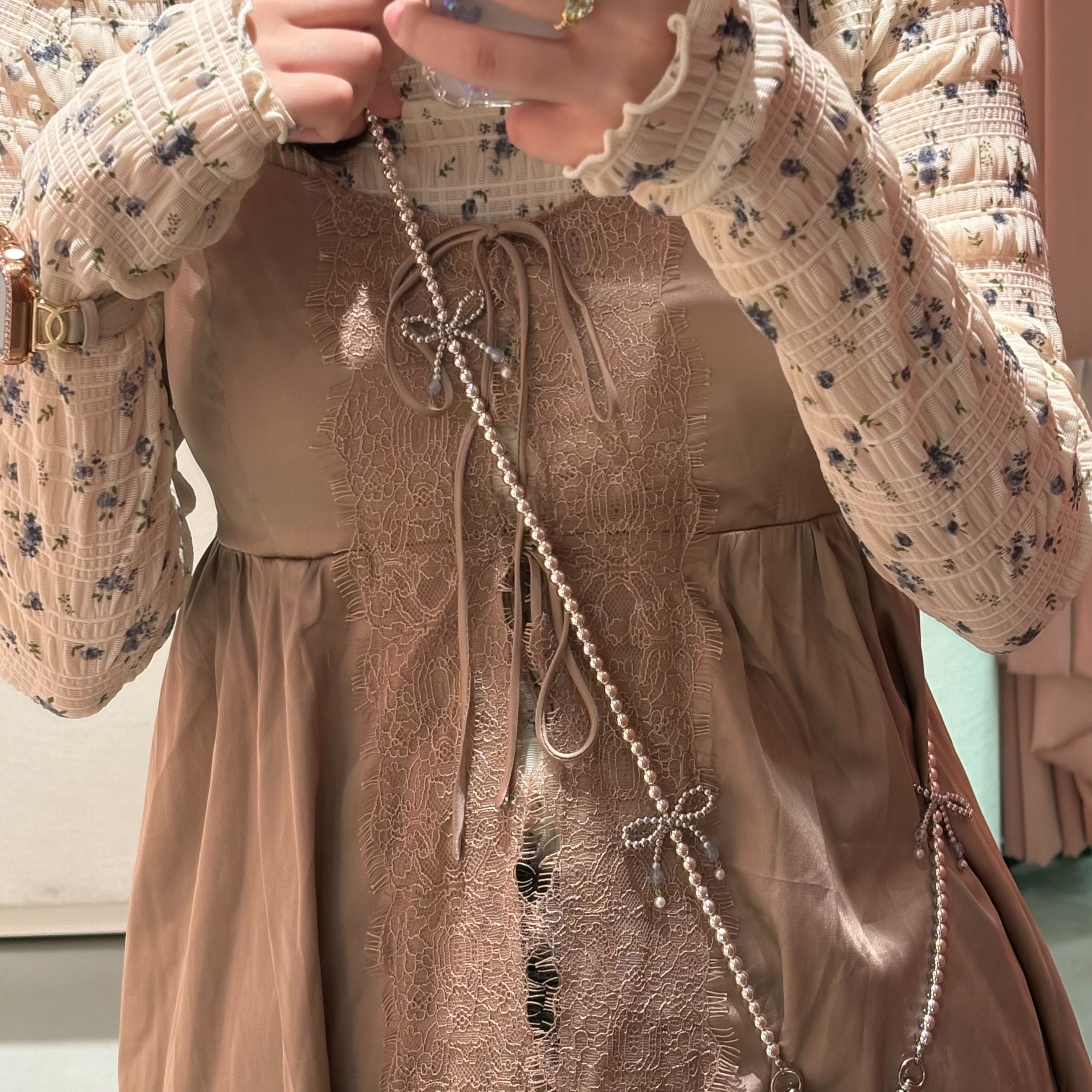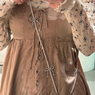 メタリックビーズに、同じくメタリックビーズでリボンをあしらいました。