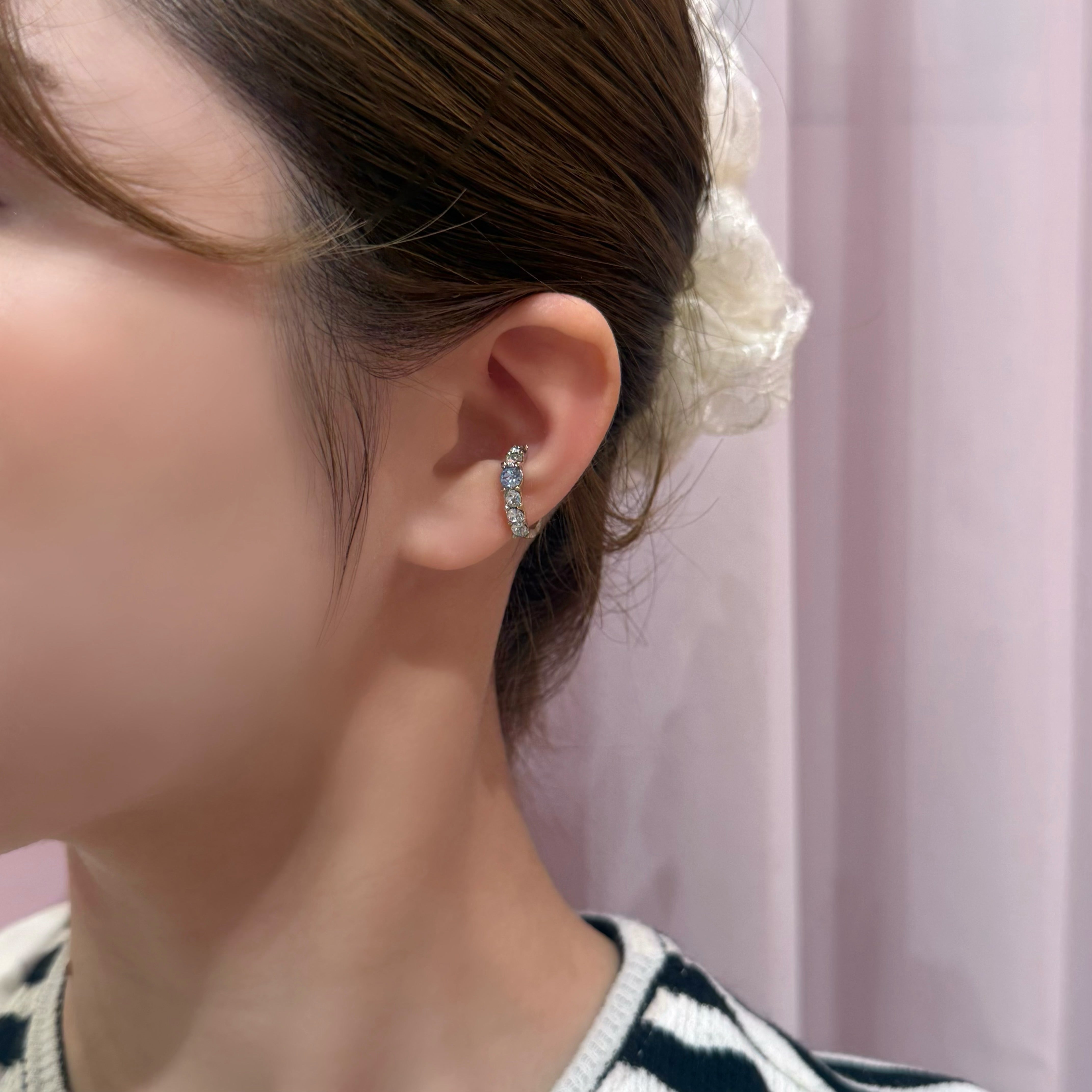 Liquem初のカラバリ・イヤカフシリーズ。鮮やかなレッドが耳元にさりげなく映え、単色でも、重ねづけでも楽しめます。好きな色を選び、自分らしいスタイルに合わせられるアイテムです。クリスタルのカラーはライトサファイアxライトアゾレ。全7色でメタルカラーは全て共有でライトゴールド