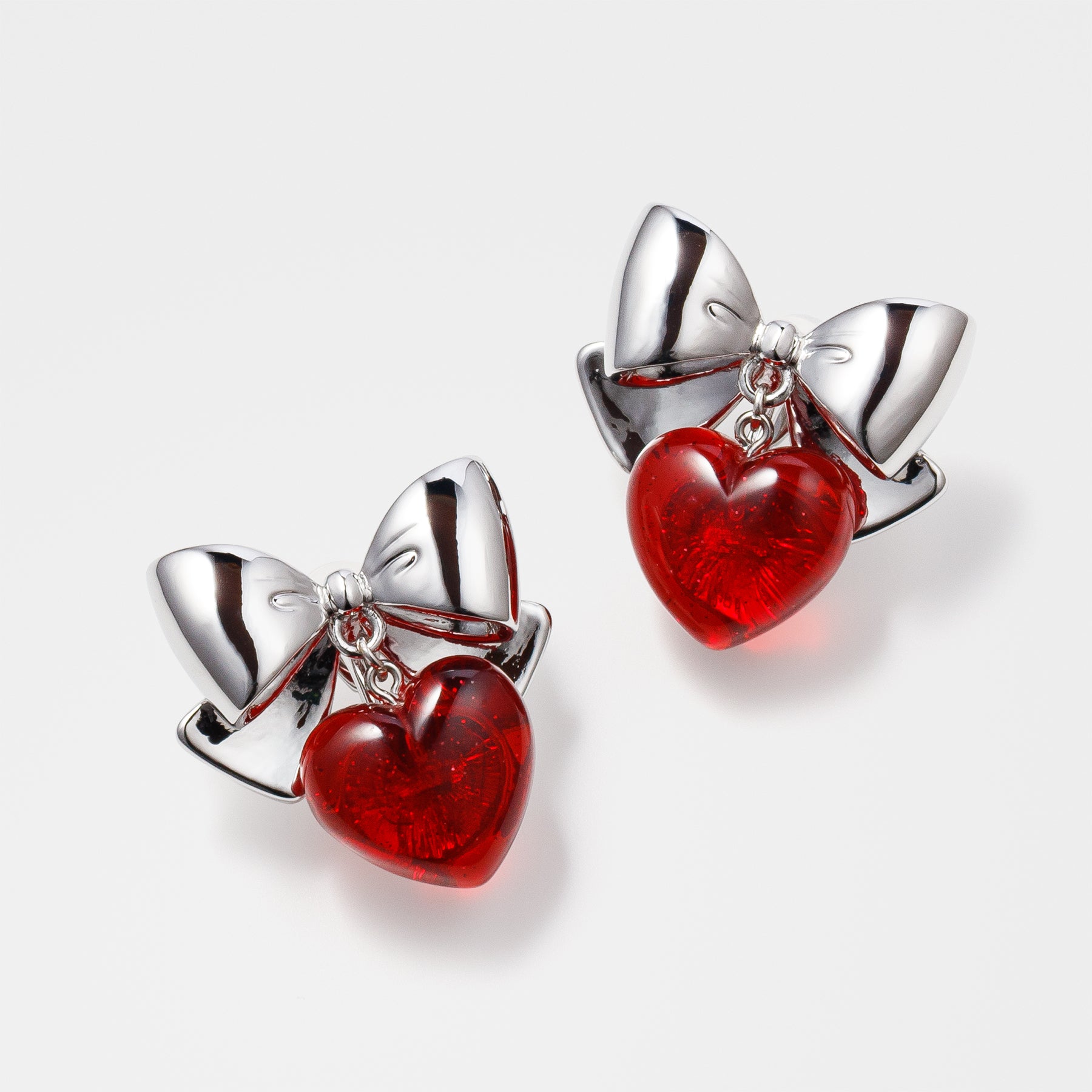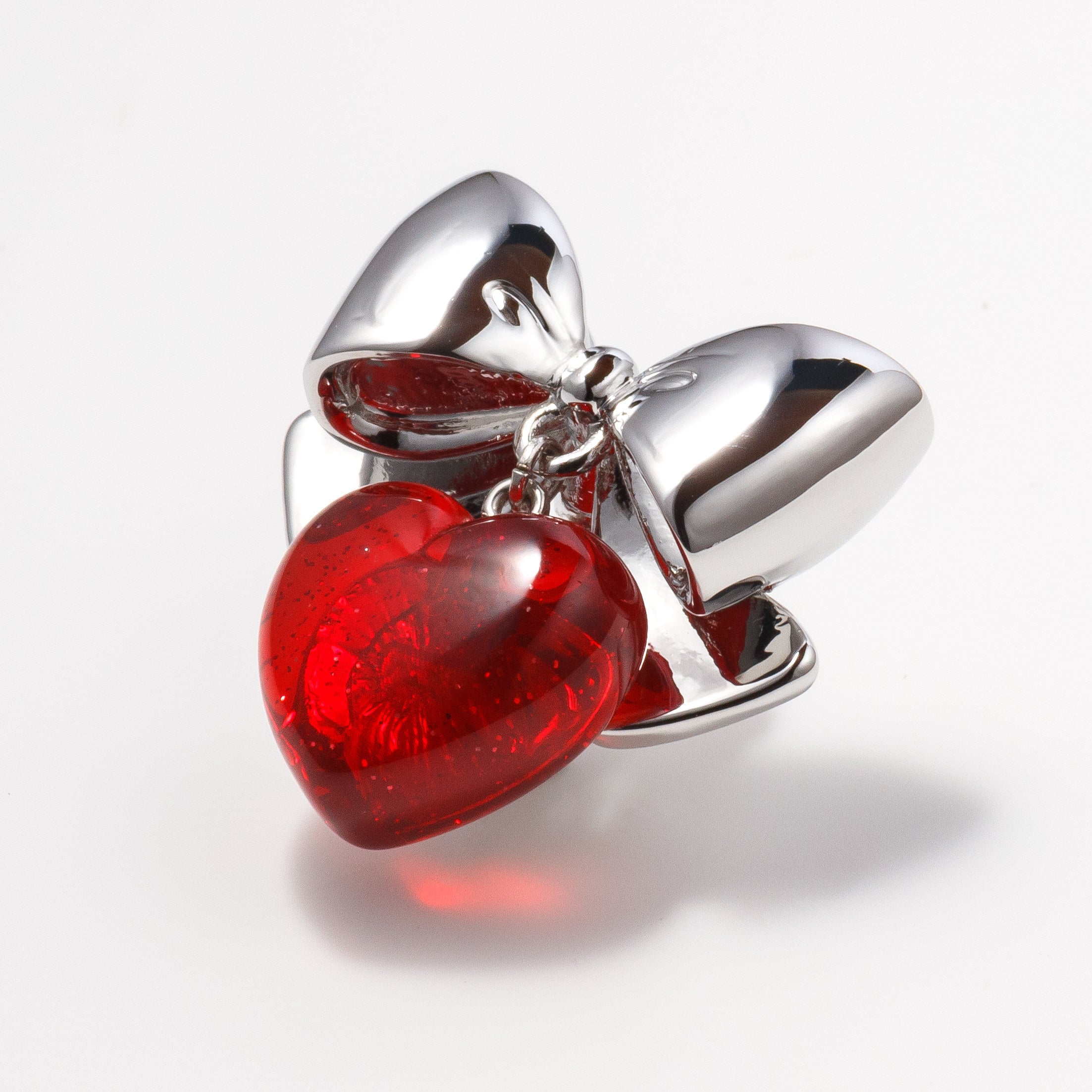 カジュアルなシルバーリボンと、真っ赤な立体ハートの組み合わせ。