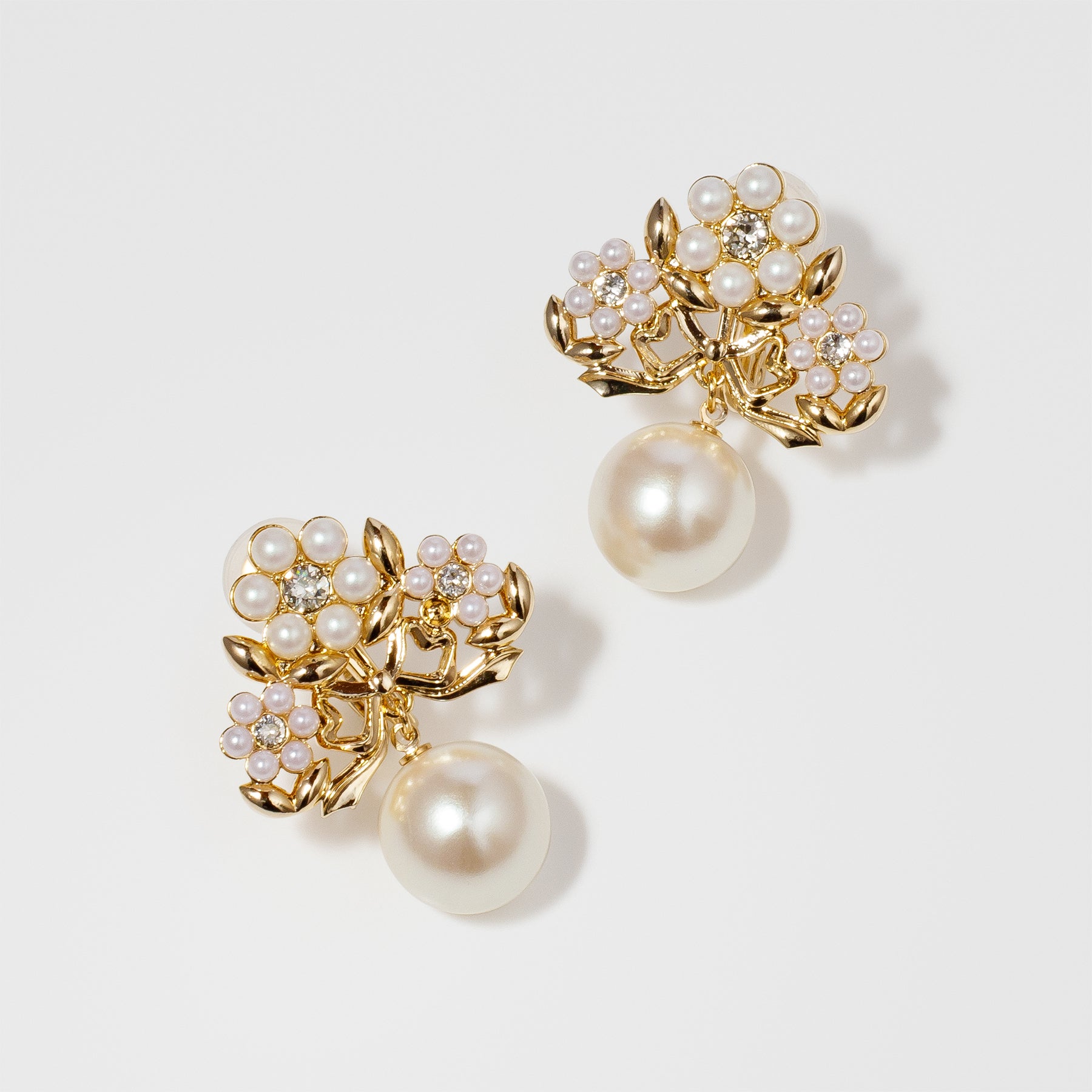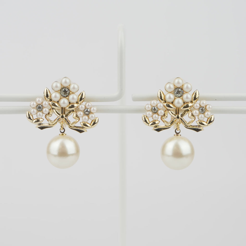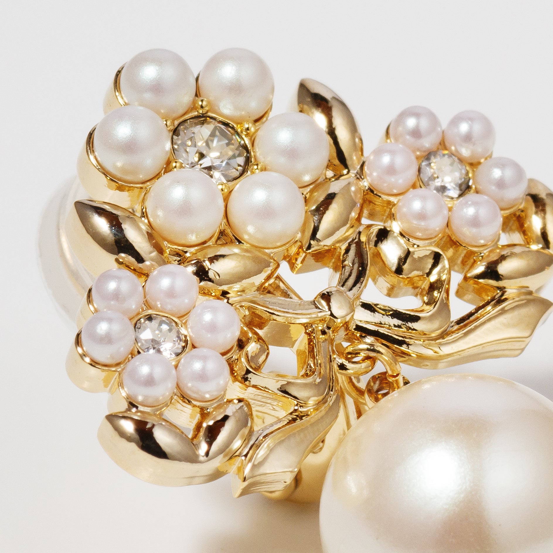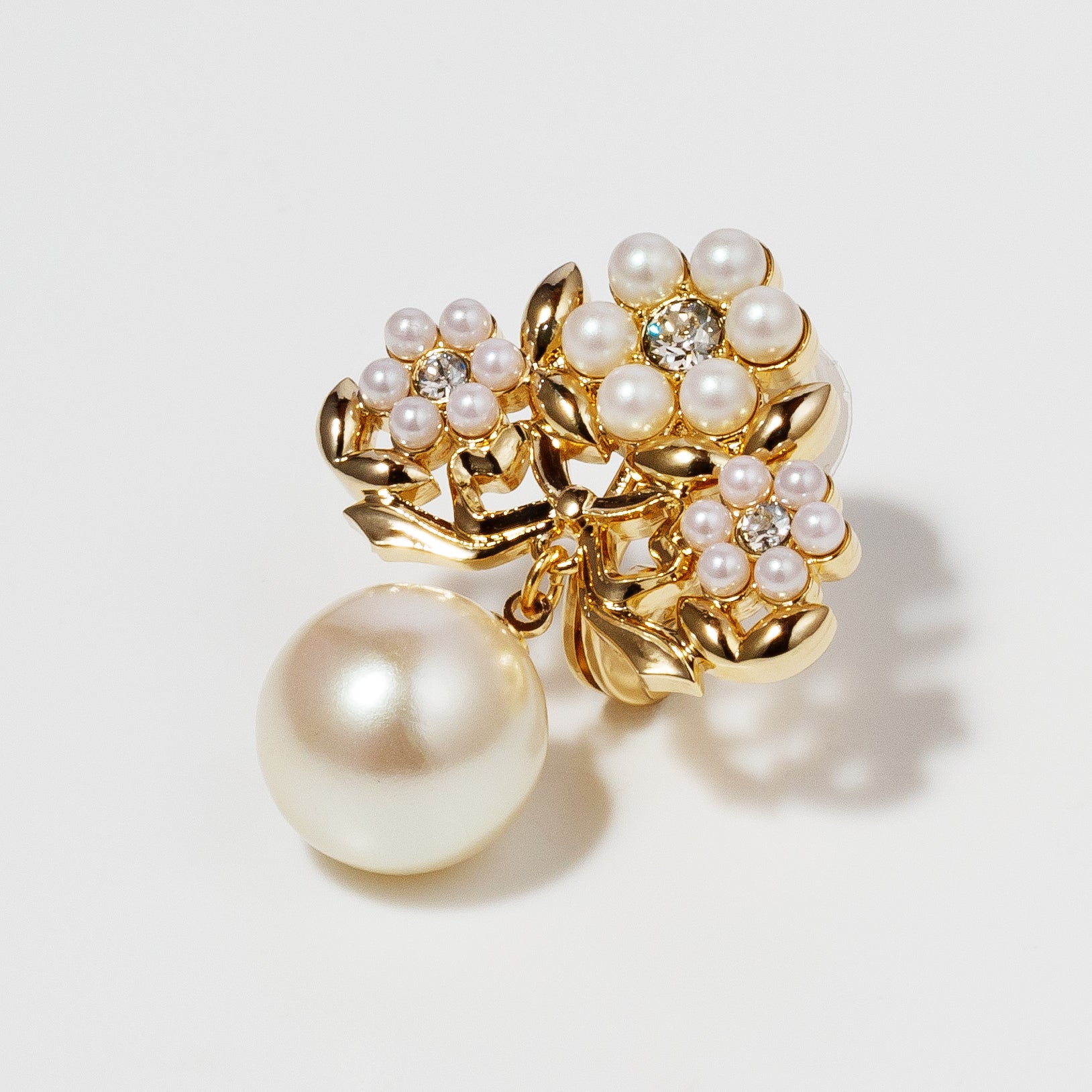 耳元で3つの花が連なることで、シンプルな装いもクラシカルで品のある雰囲気へと引き立ててくれます。