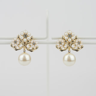 3つの花を一列に連ねたクラシカルな構図のイヤリング。