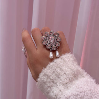 ヴィンテージ風パールフラワーリング(クリスタル)