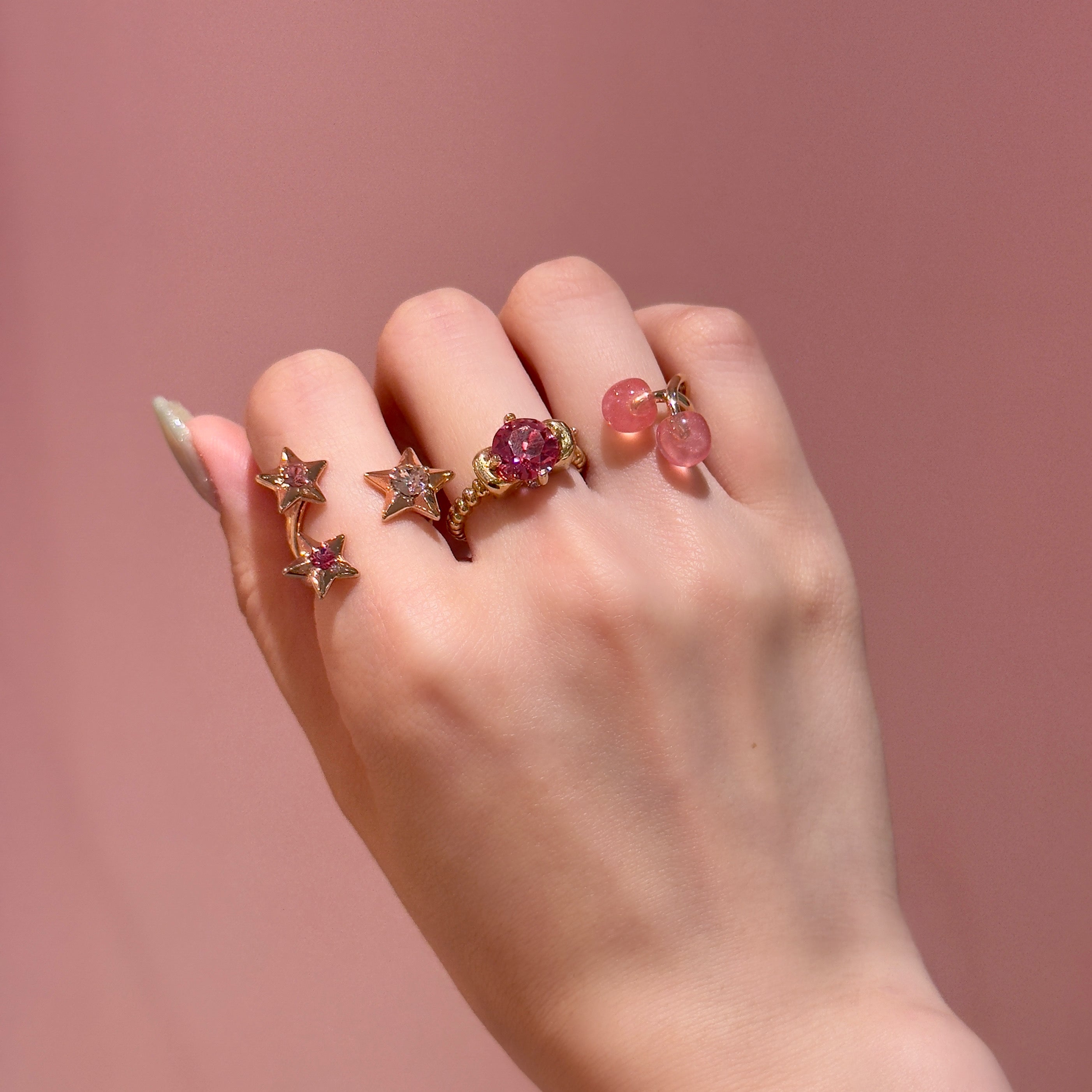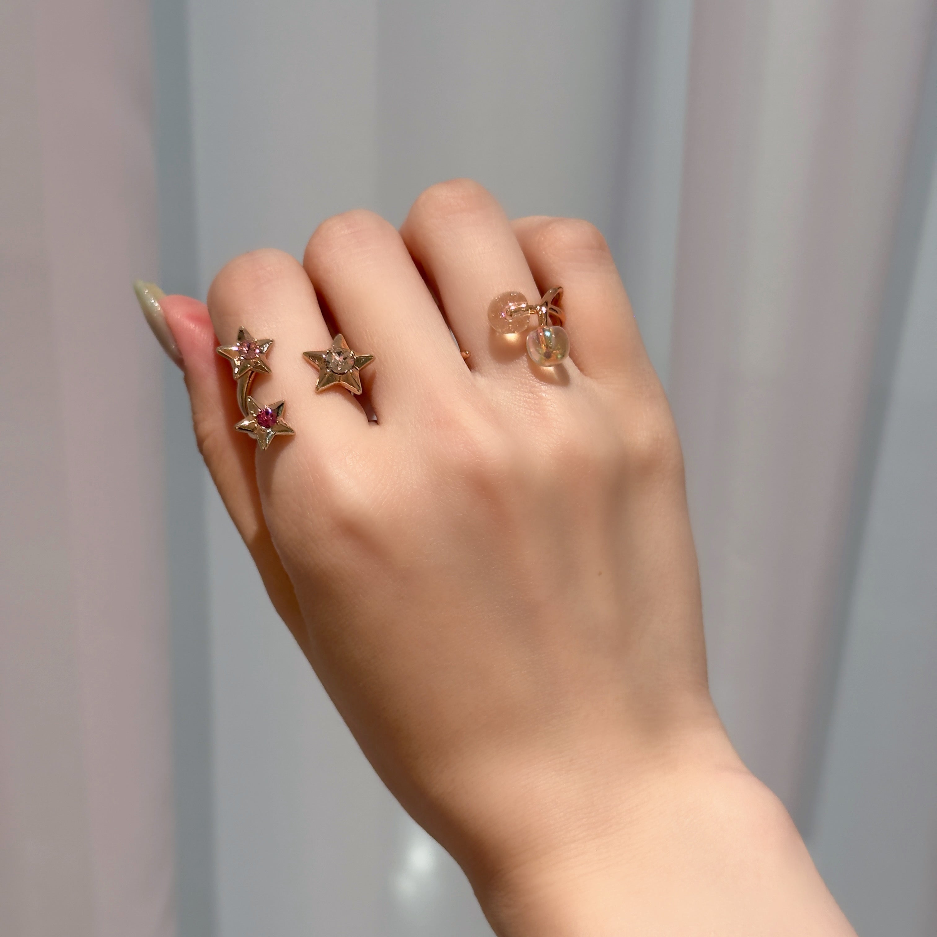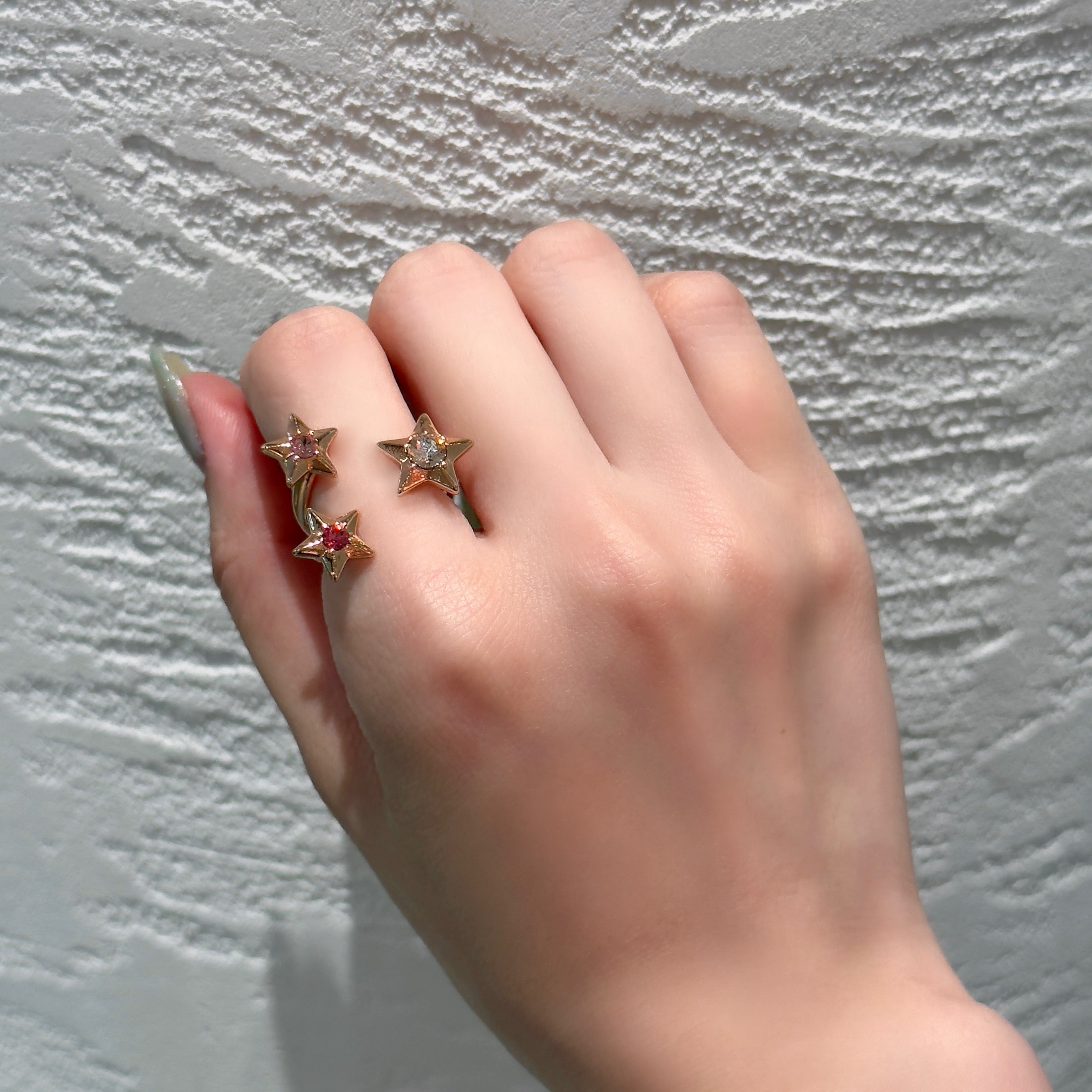 ピンクの星が指の間からキラッと光って可愛い♡手元を見るたびにテンションの上がるリングです!!