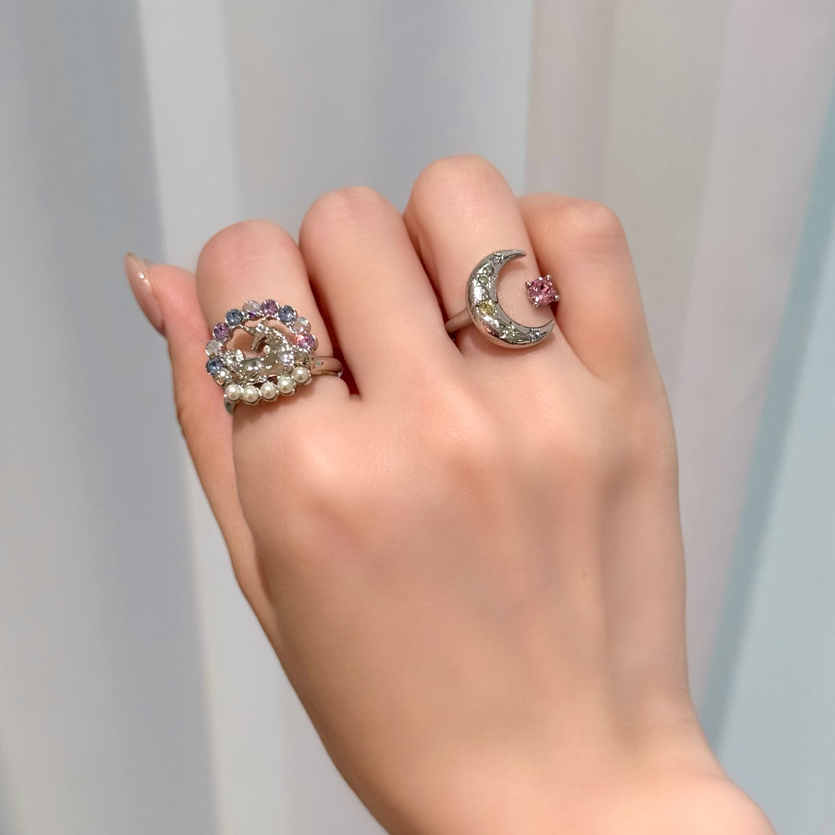 単品で主役にしても、月モチーフのリングと重ねても美しく、
