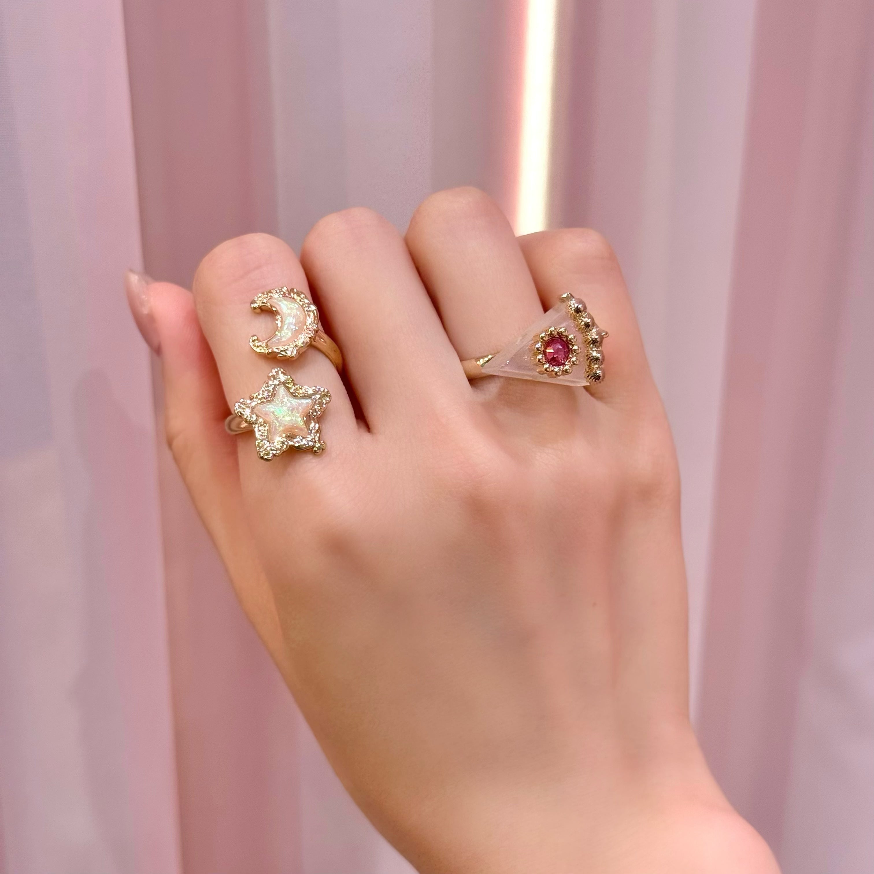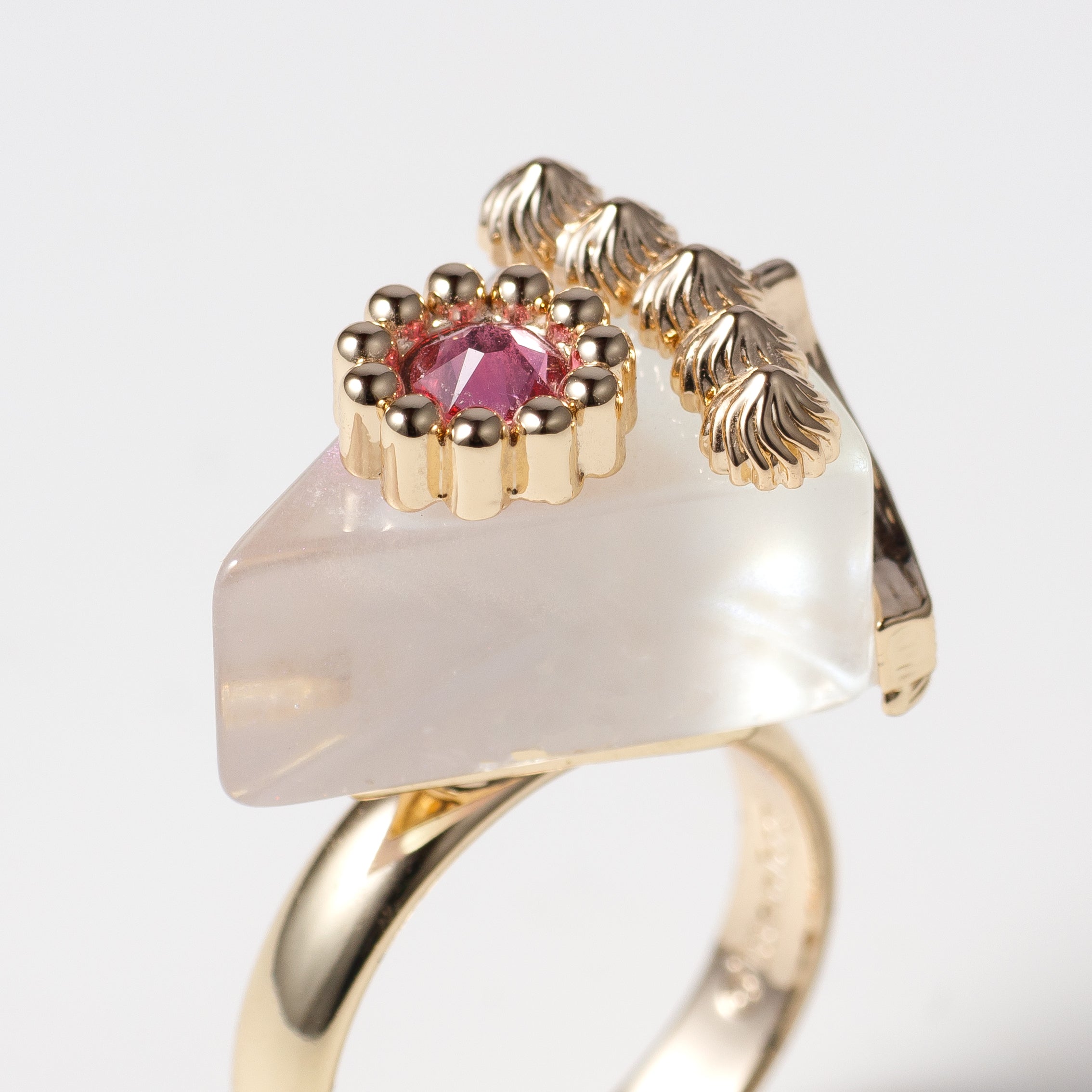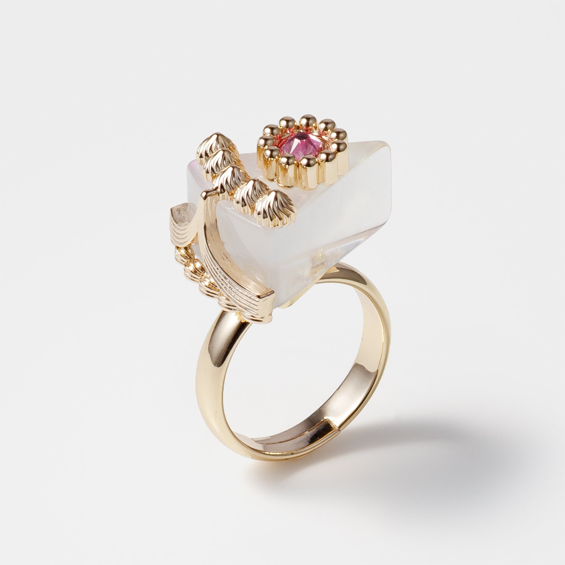 トップにはクリームをイメージさせる金属装飾とローズのクリスタルをトッピング。