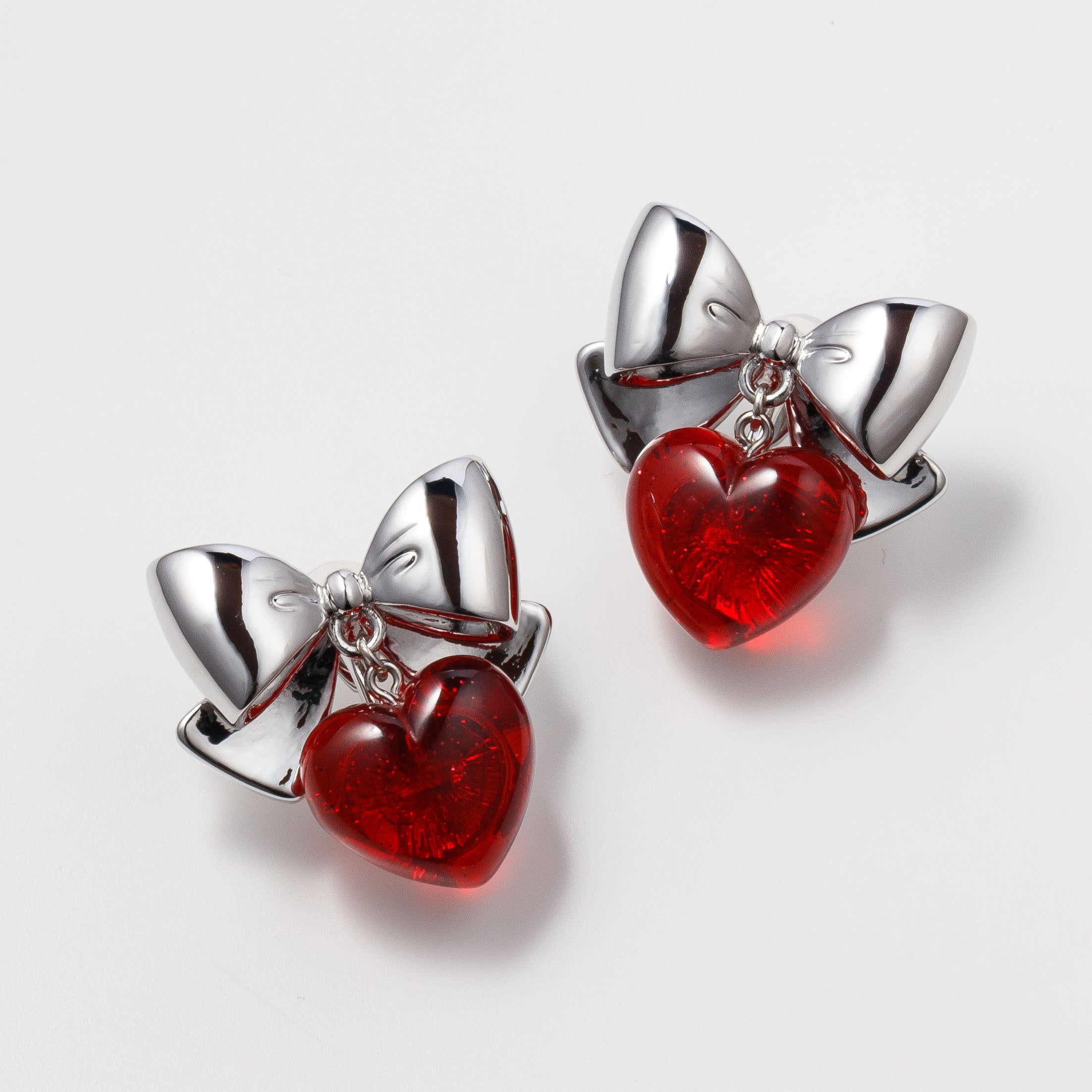 カジュアルなシルバーリボンと、真っ赤な立体ハートの組み合わせ。