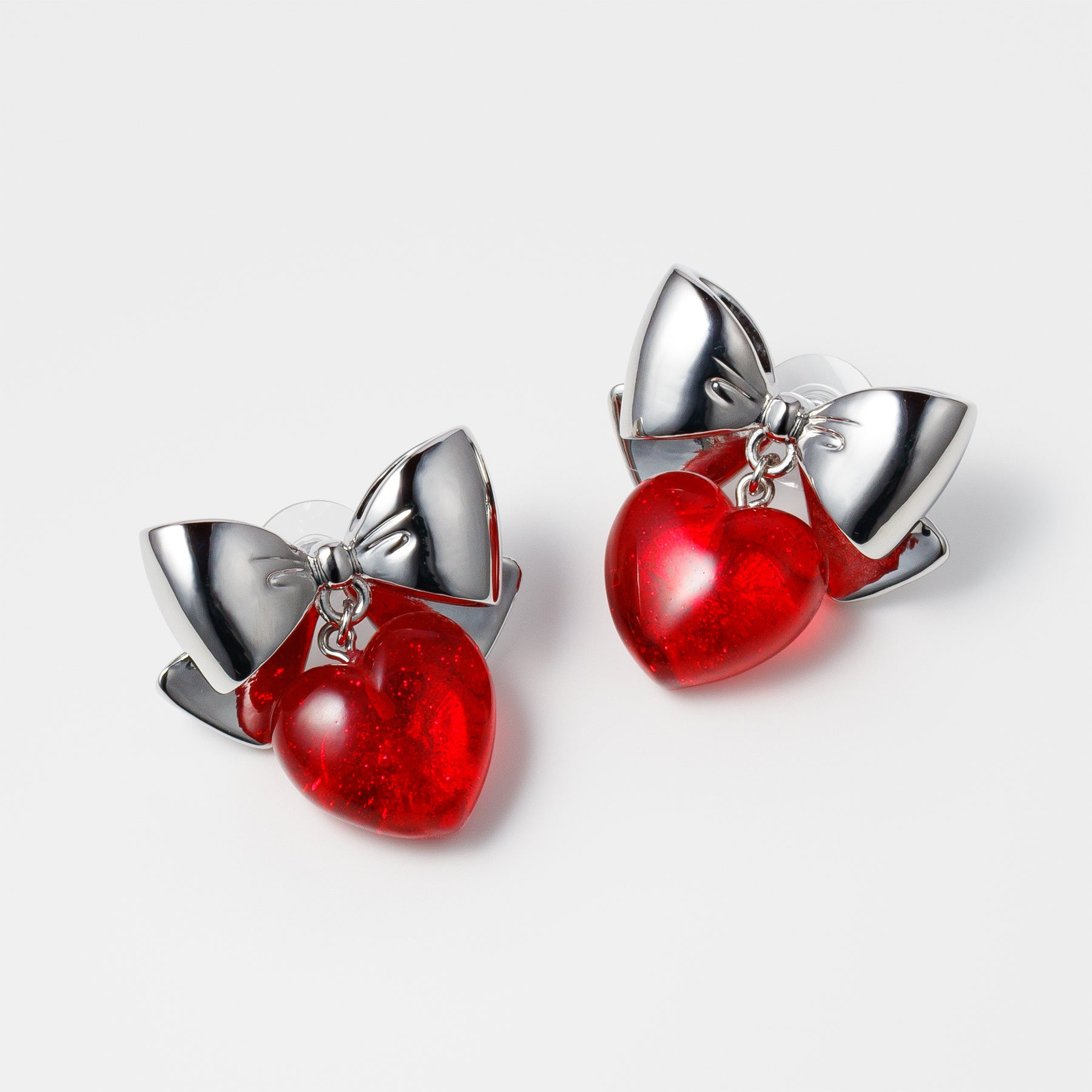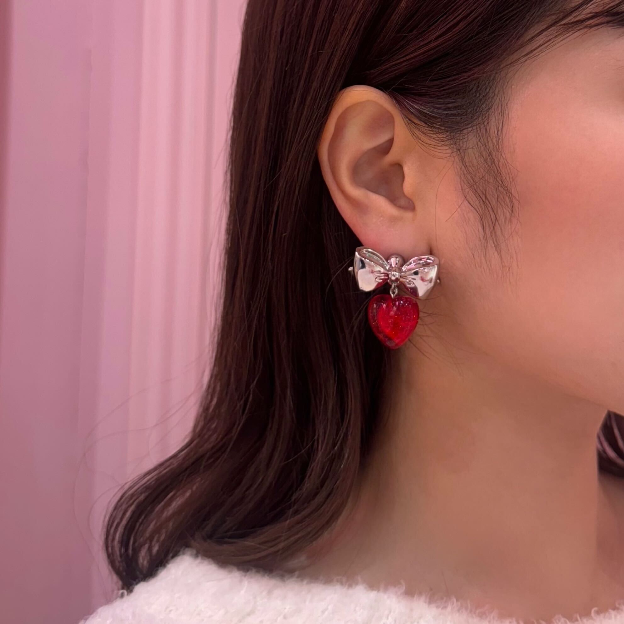カジュアルなシルバーリボンと、真っ赤な立体ハートの組み合わせ。
