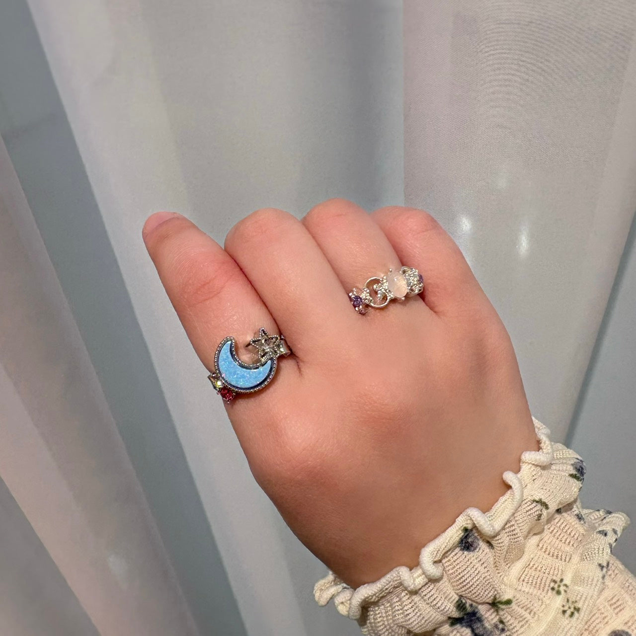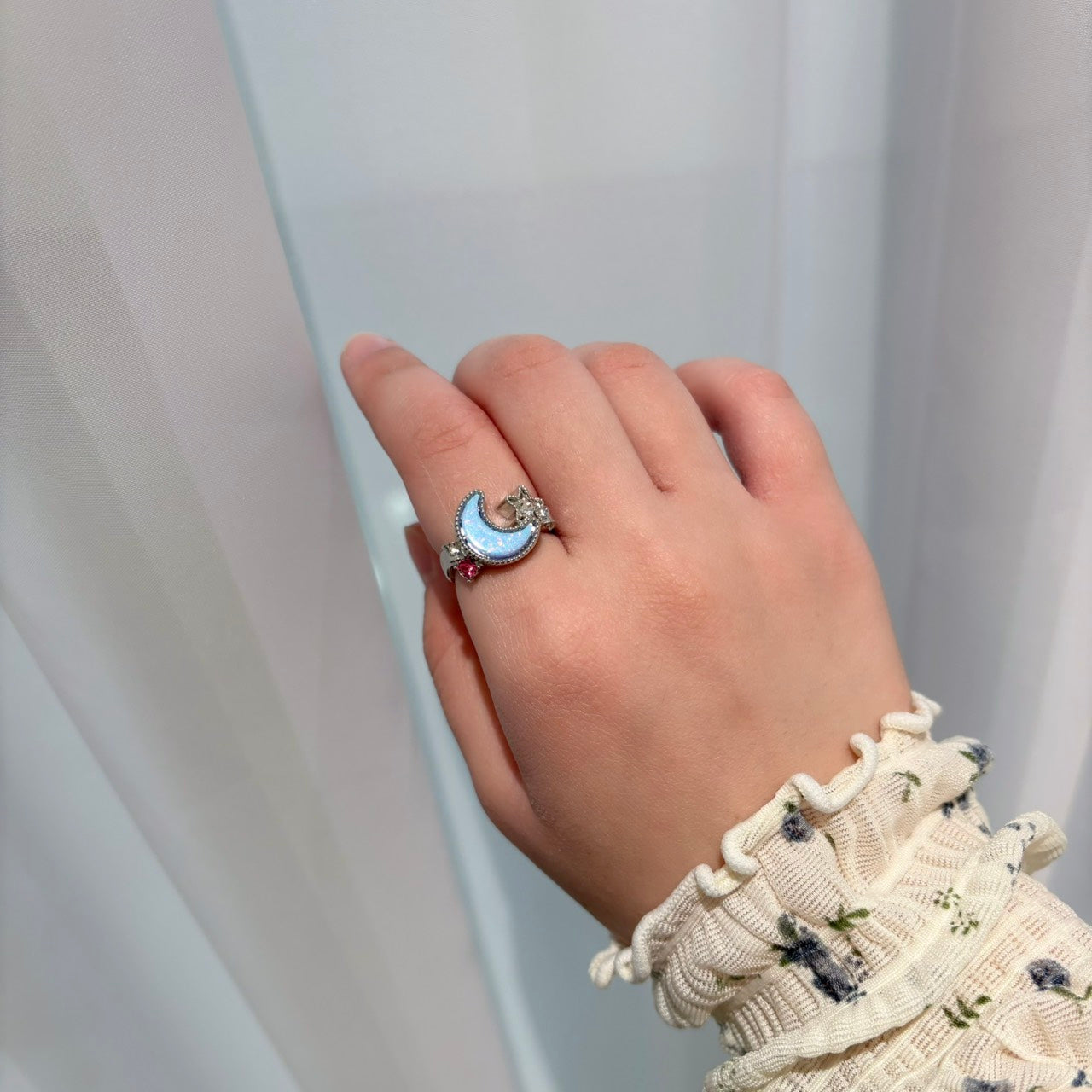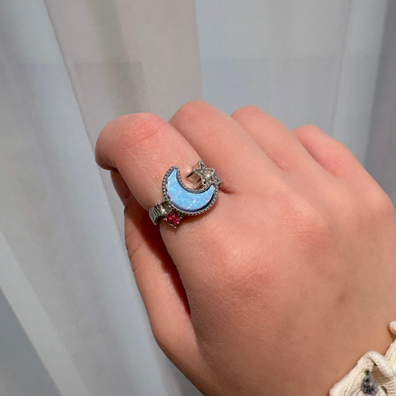 指先に静かなきらめきを落とすオパールムーンスターリング。