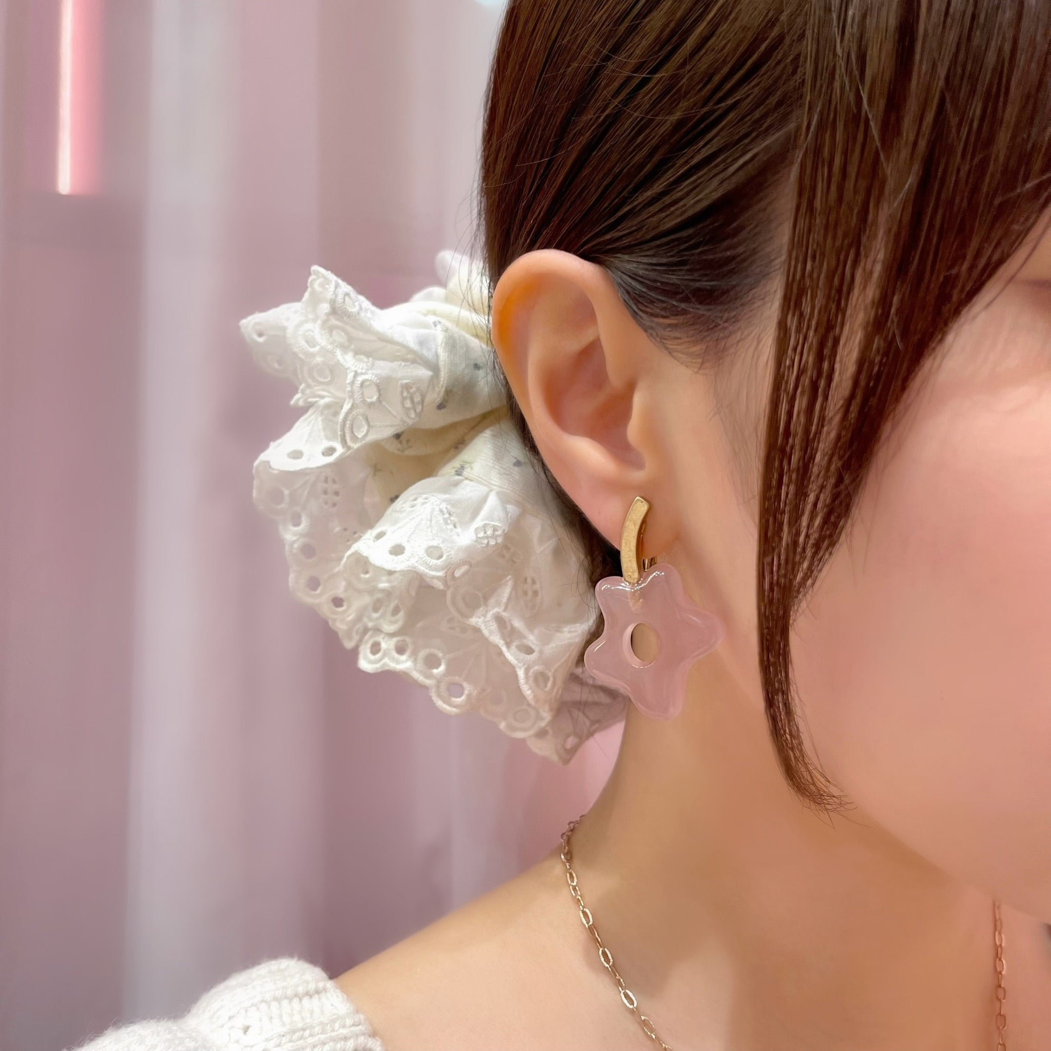 花部分は、厚みをもたせた樹脂でローズクォーツのような優しいピンクに仕上げました。