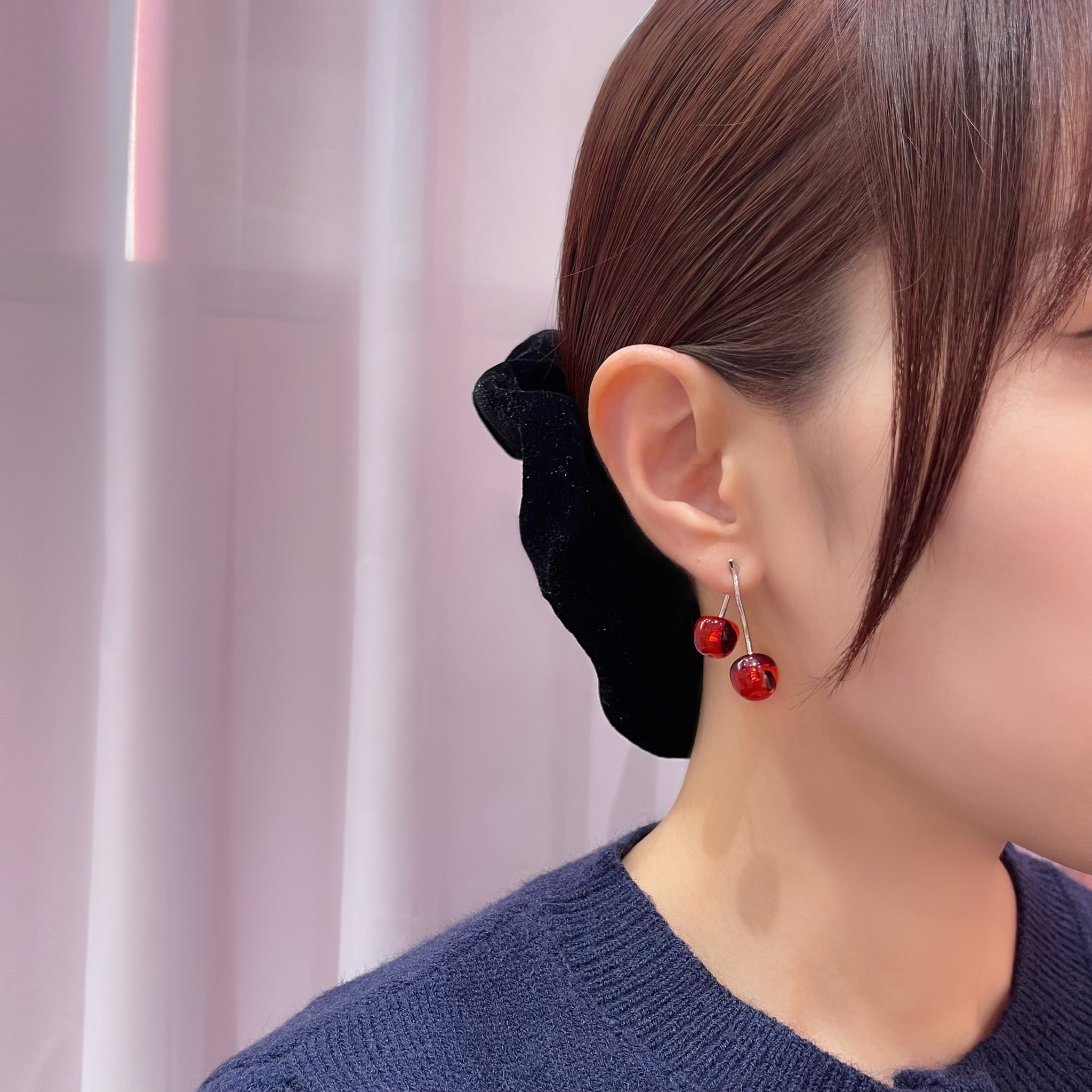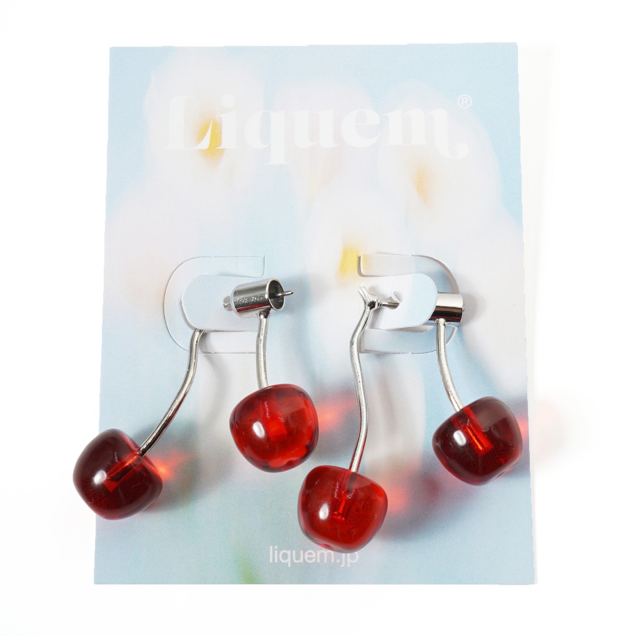 Liquemのアイコン、チェリーに新しい仲間が加わりました。 耳たぶを前後からはさみ込むような、立体感のあるシルエット。 クリアで深みのあるレッドが、光を通すたびにみずみずしく艶めきます。