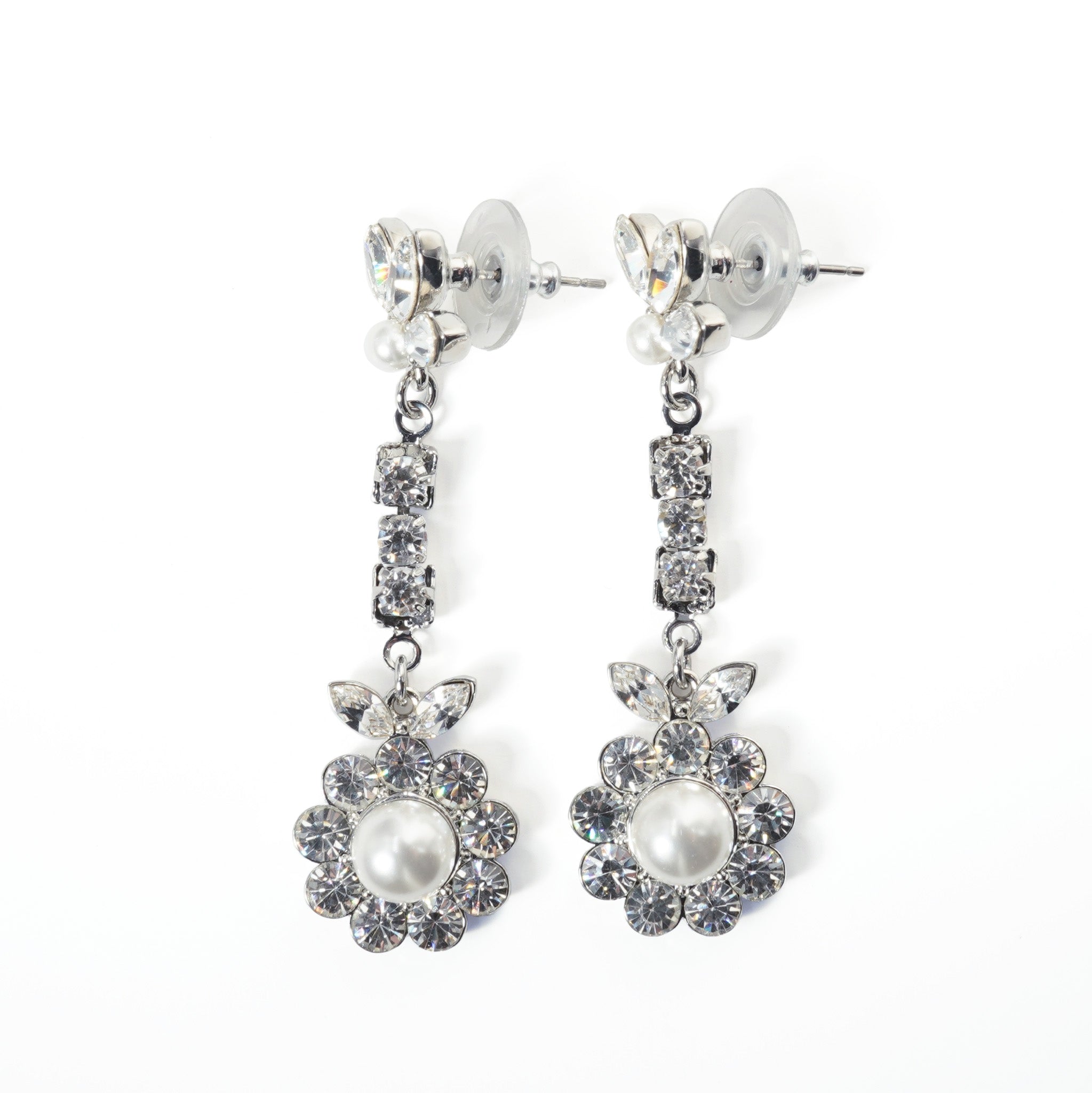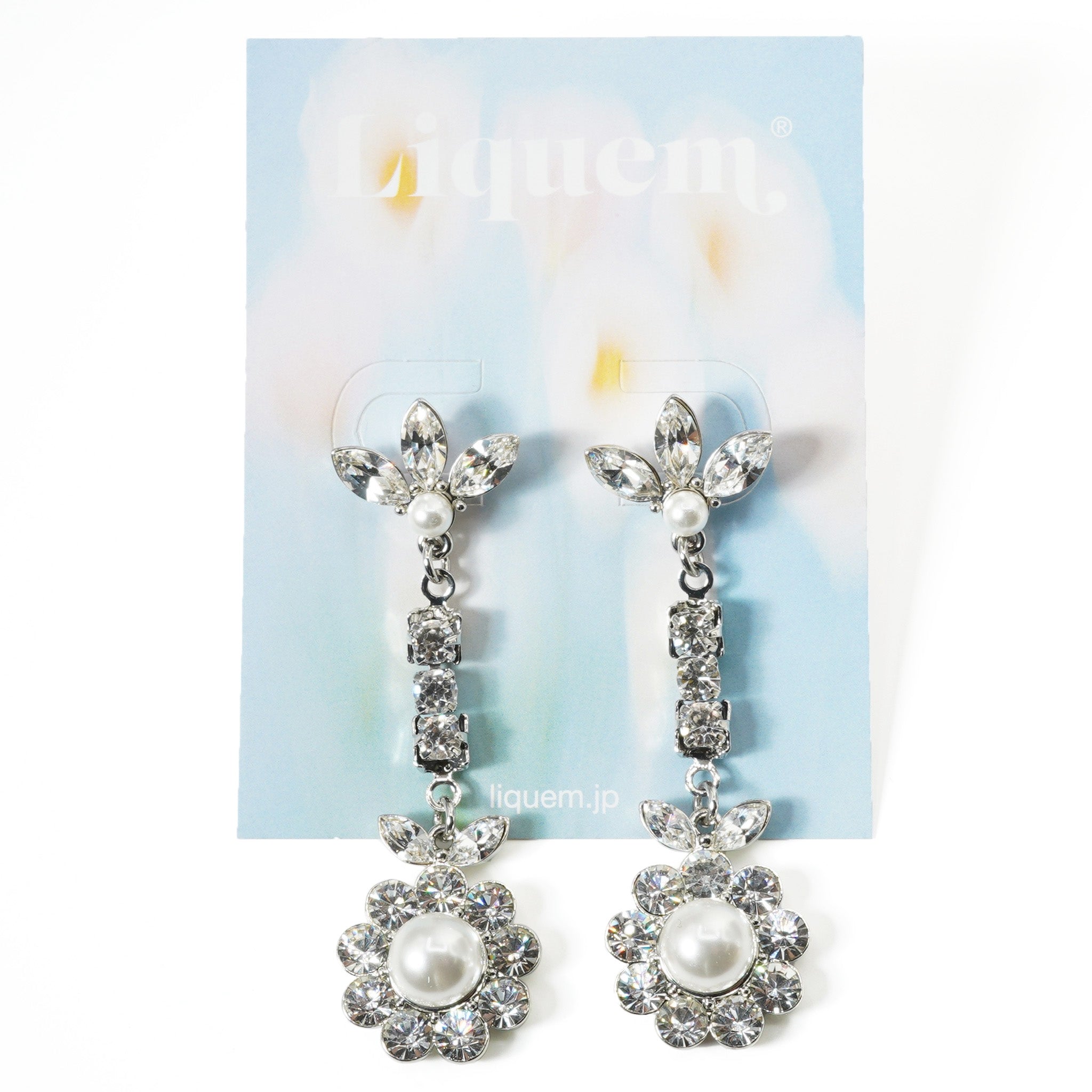 ビジューとパールをぎゅっと集めた、ここぞという時のための華やかなピアス。 一番下の花びらだけ「ムーンライト」という絶妙な色を混ぜて、奥行きのある輝きに仕上げました。 ライブや結婚式など、少し背筋を伸ばしてドレスアップしたい日の心強い味方です。