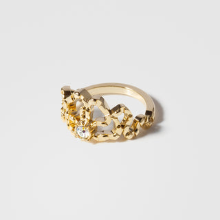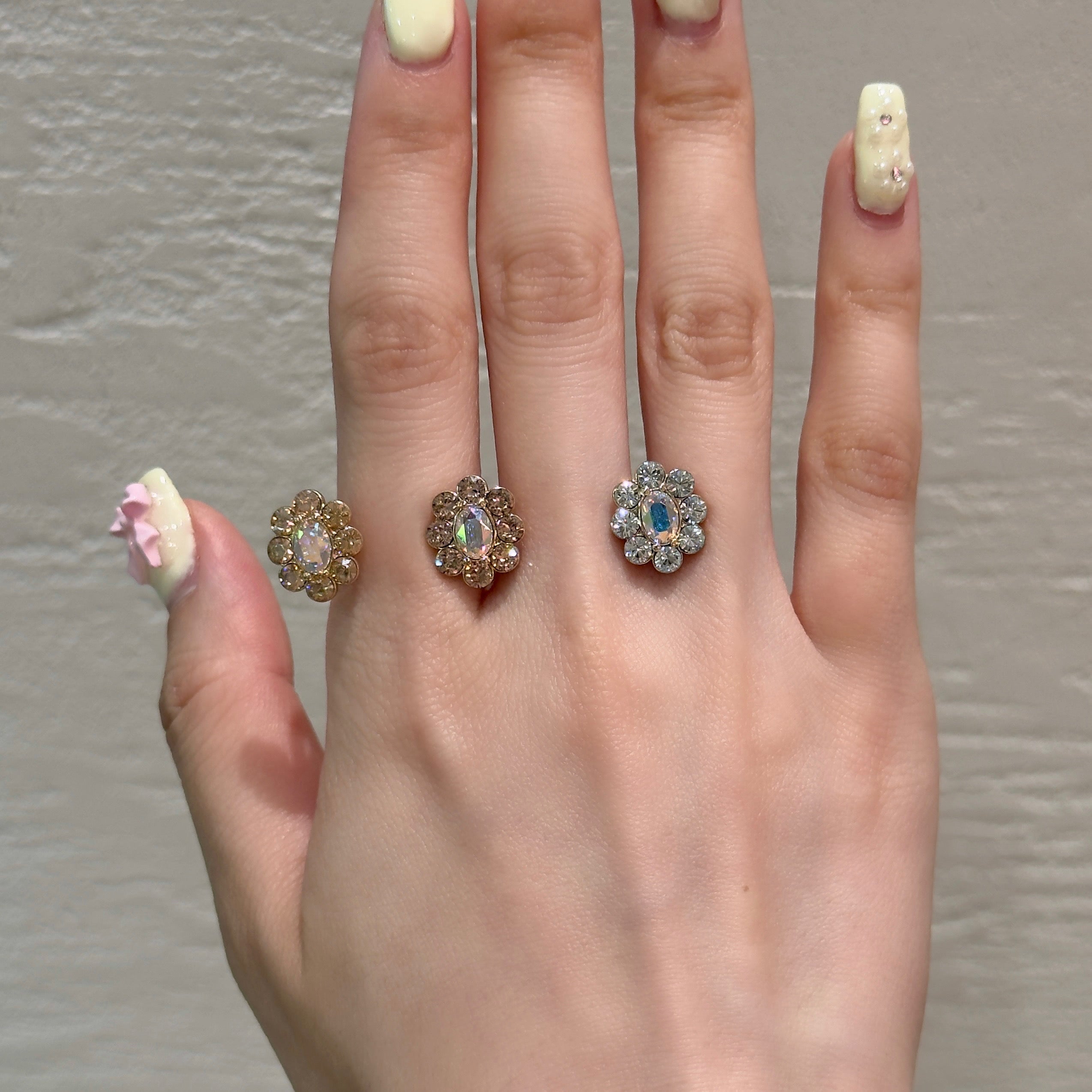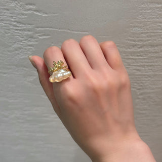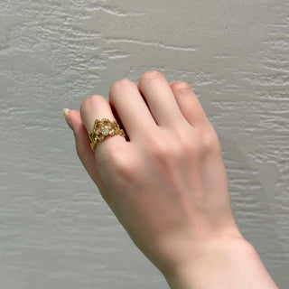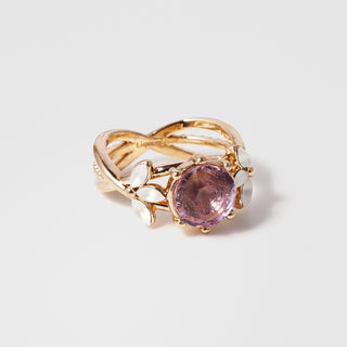 そんな背景をヒントに生まれたのが、この「トロワ・ブルームリング」。3色の花が寄り添う姿は、身につける人の指先に小さな物語を与えてくれます。
