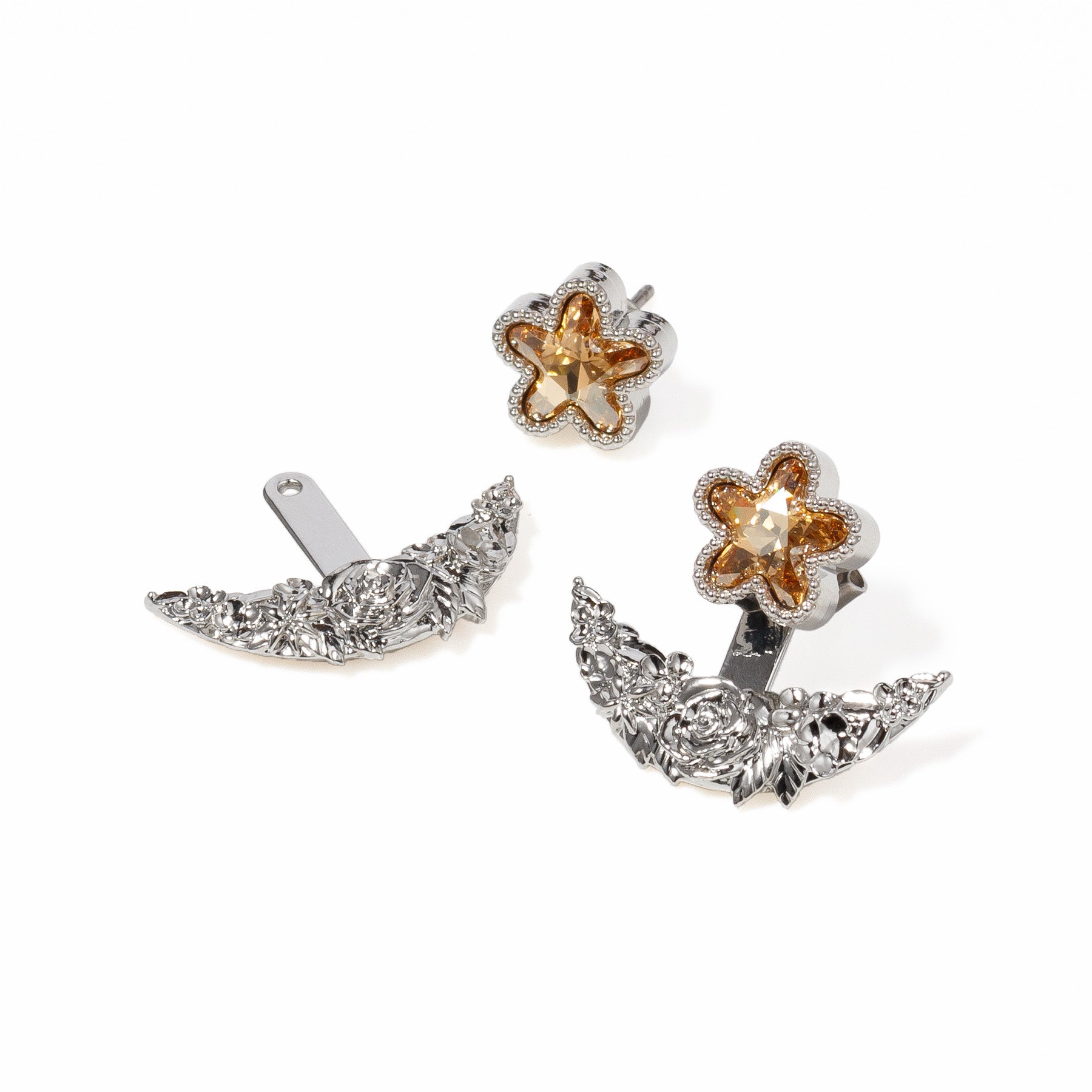 These earrings feature a star and moon motif, reflecting that atmosphere in a modern setting. You can wear them simply with stars, or add the moon for a dreamy look. You can enjoy two different looks depending on your mood.