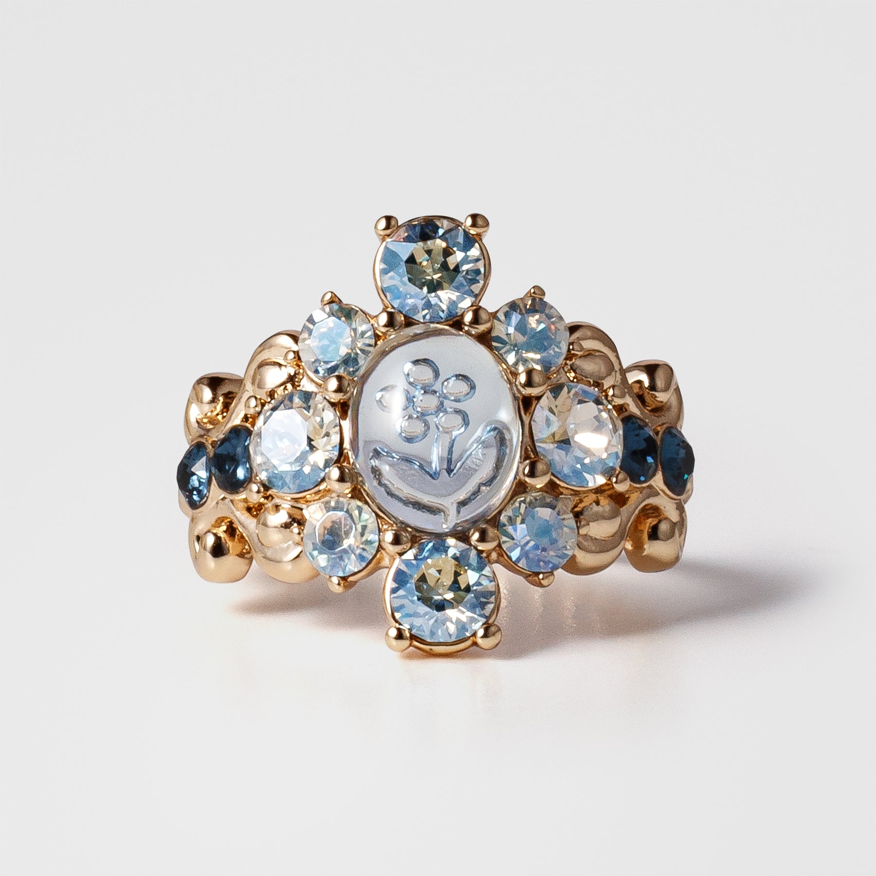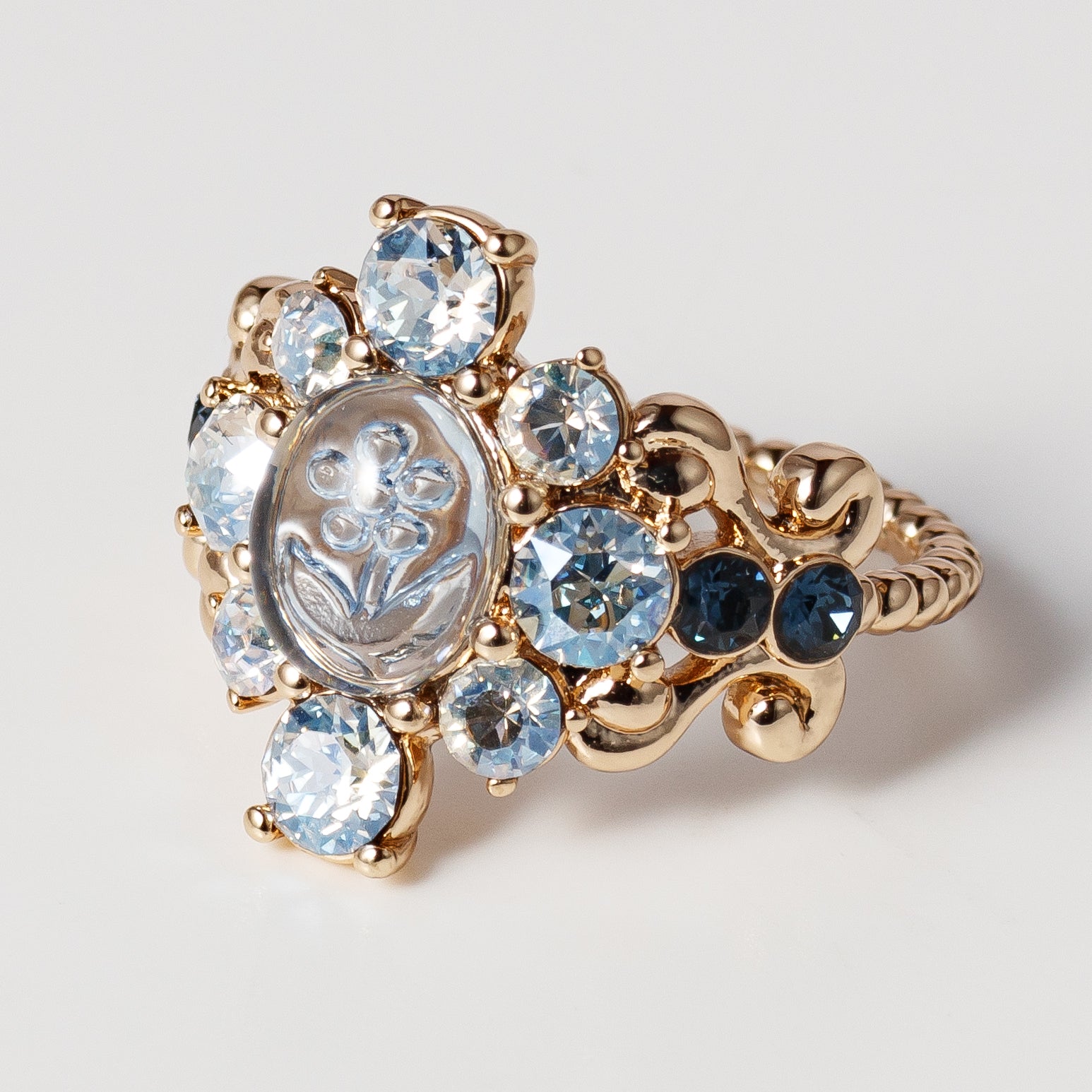 The center is made of blue-dyed resin and features a delicately carved forget-me-not motif, which gently emerges. The forget-me-not motif represents friendship and bonds.