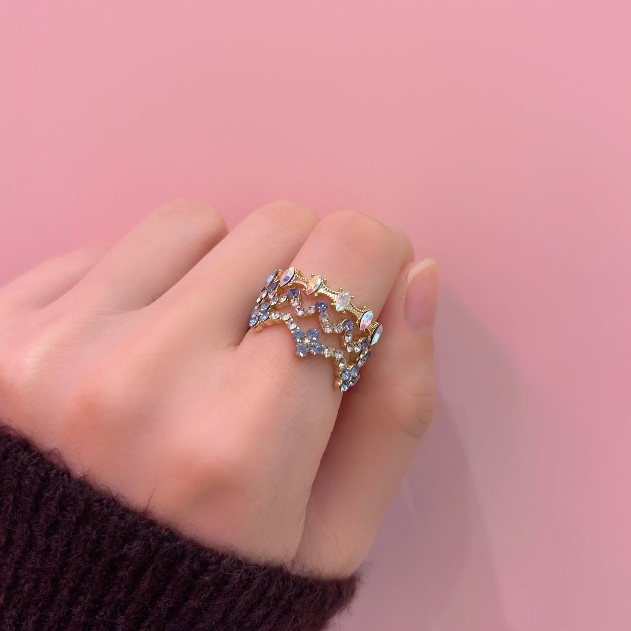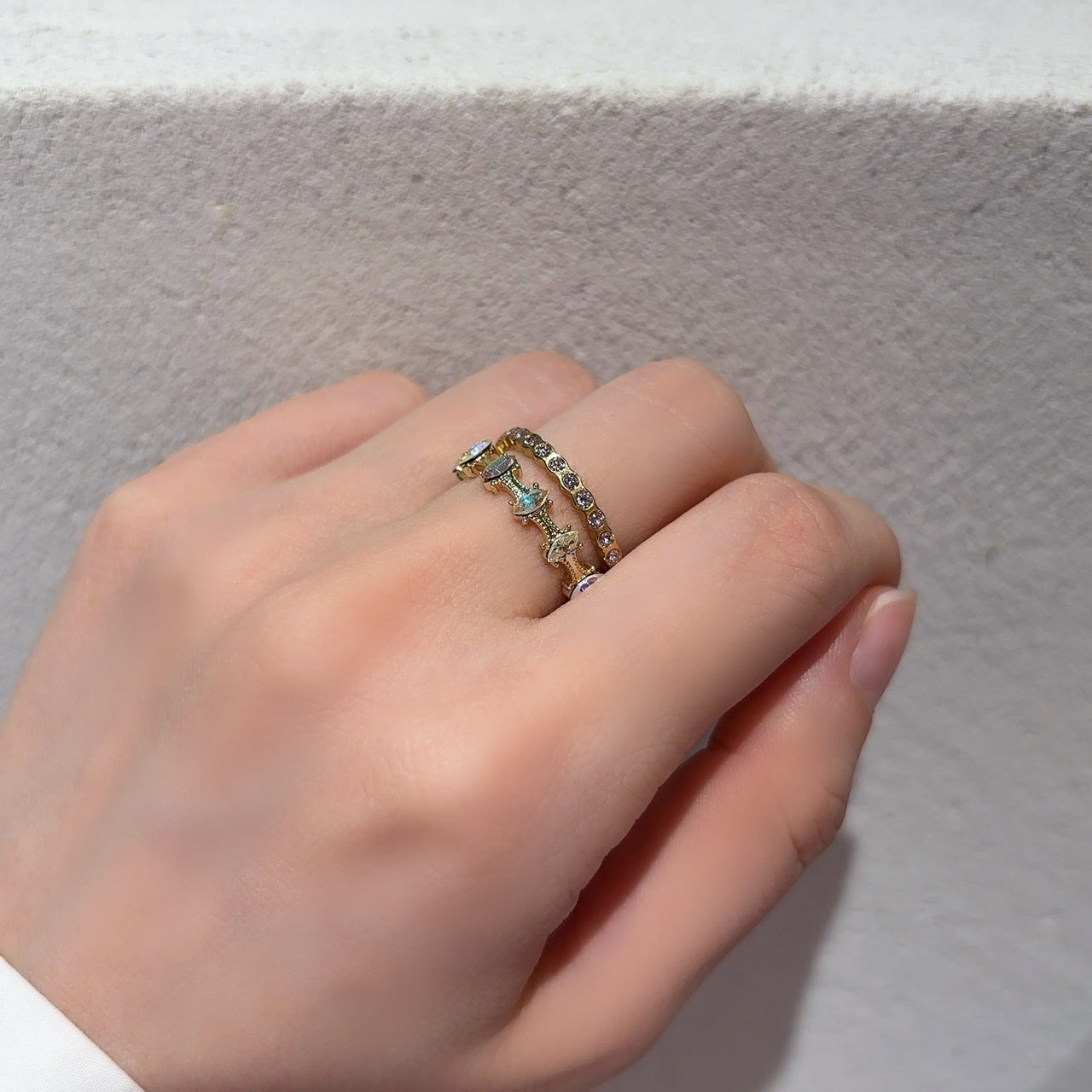 It has a presence on its own, but looks even more glamorous when paired with other rings.