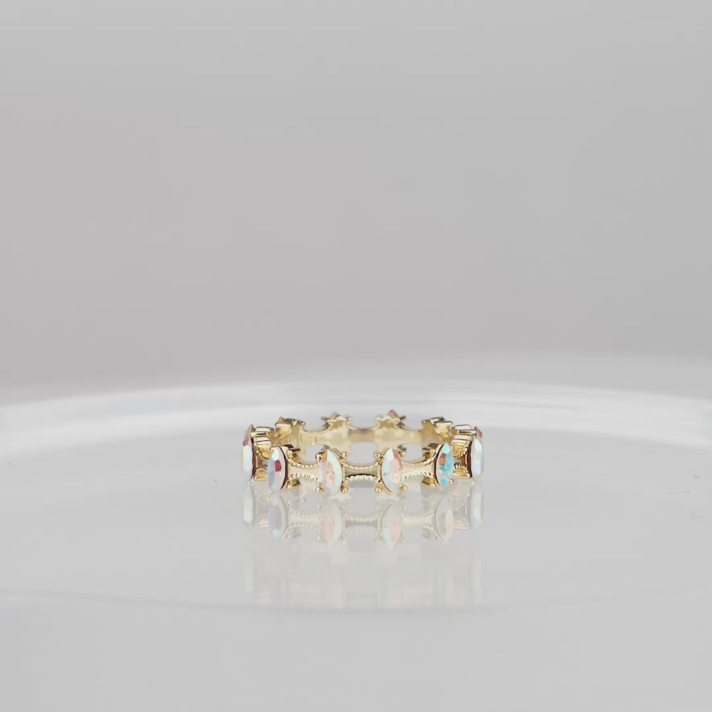 A millefeuille marquise ring featuring a series of marquise-cut stones.