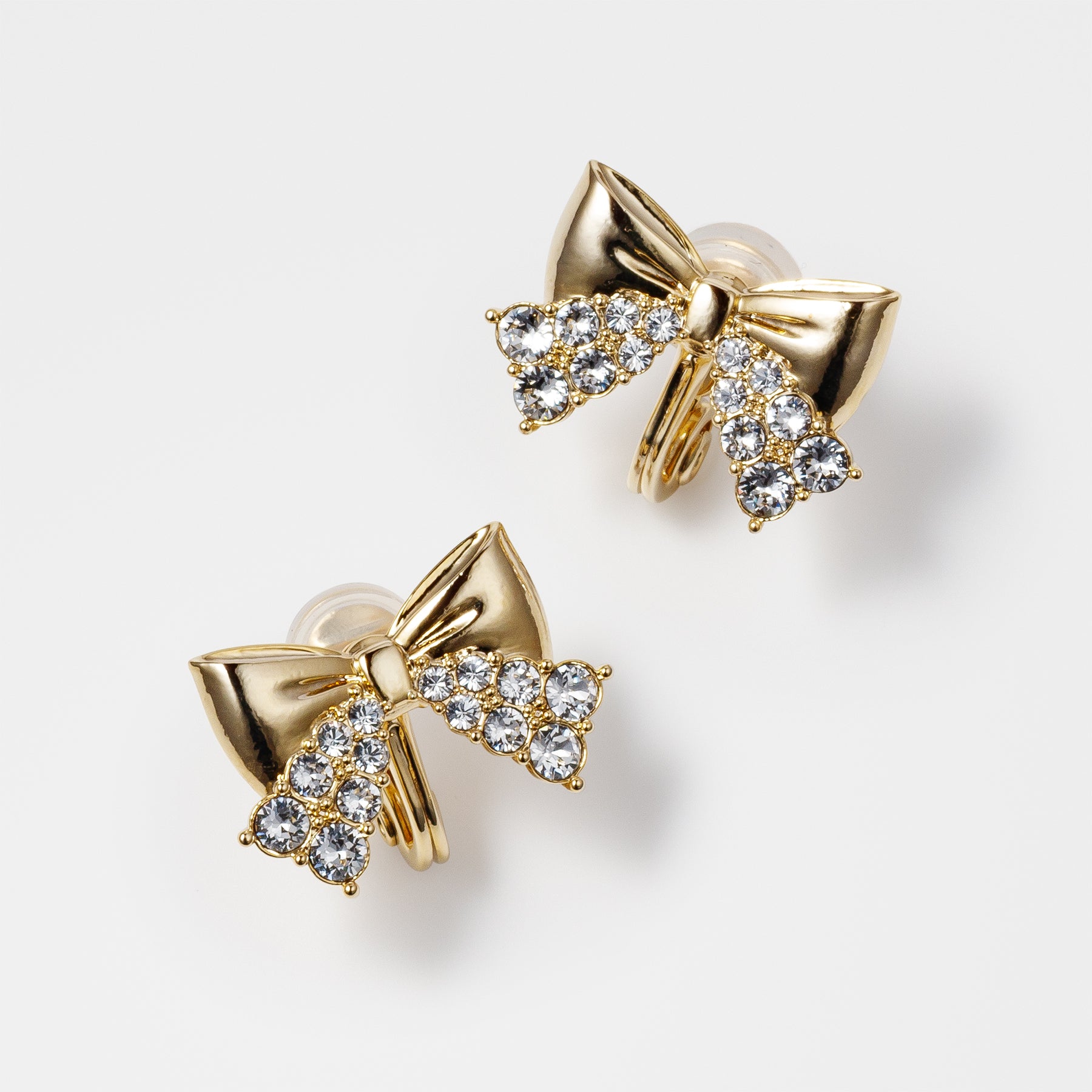 Sparkle ribbon earrings featuring crystals that subtly emit light.