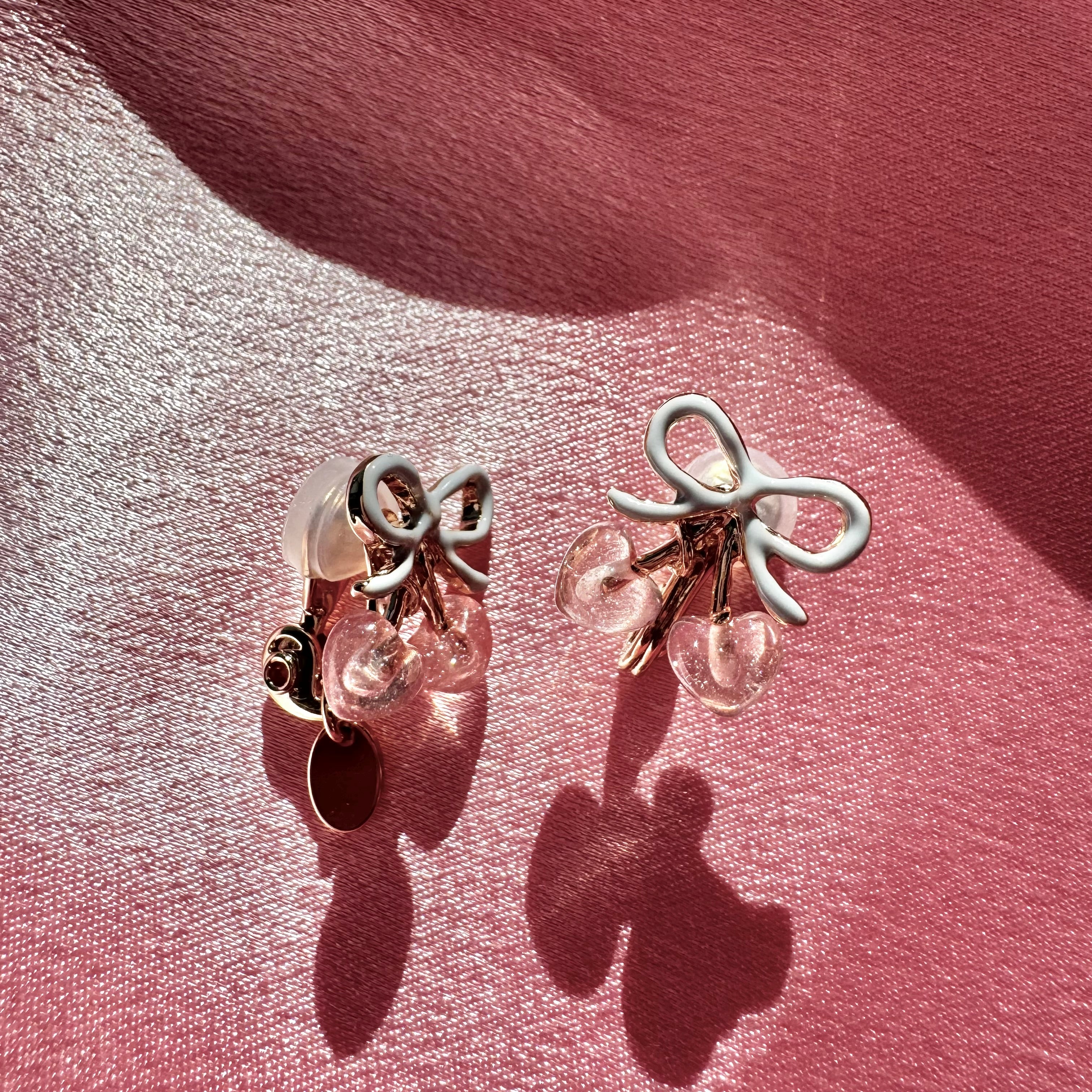 minimini Heart Cherry clip on earrings (BLPK)