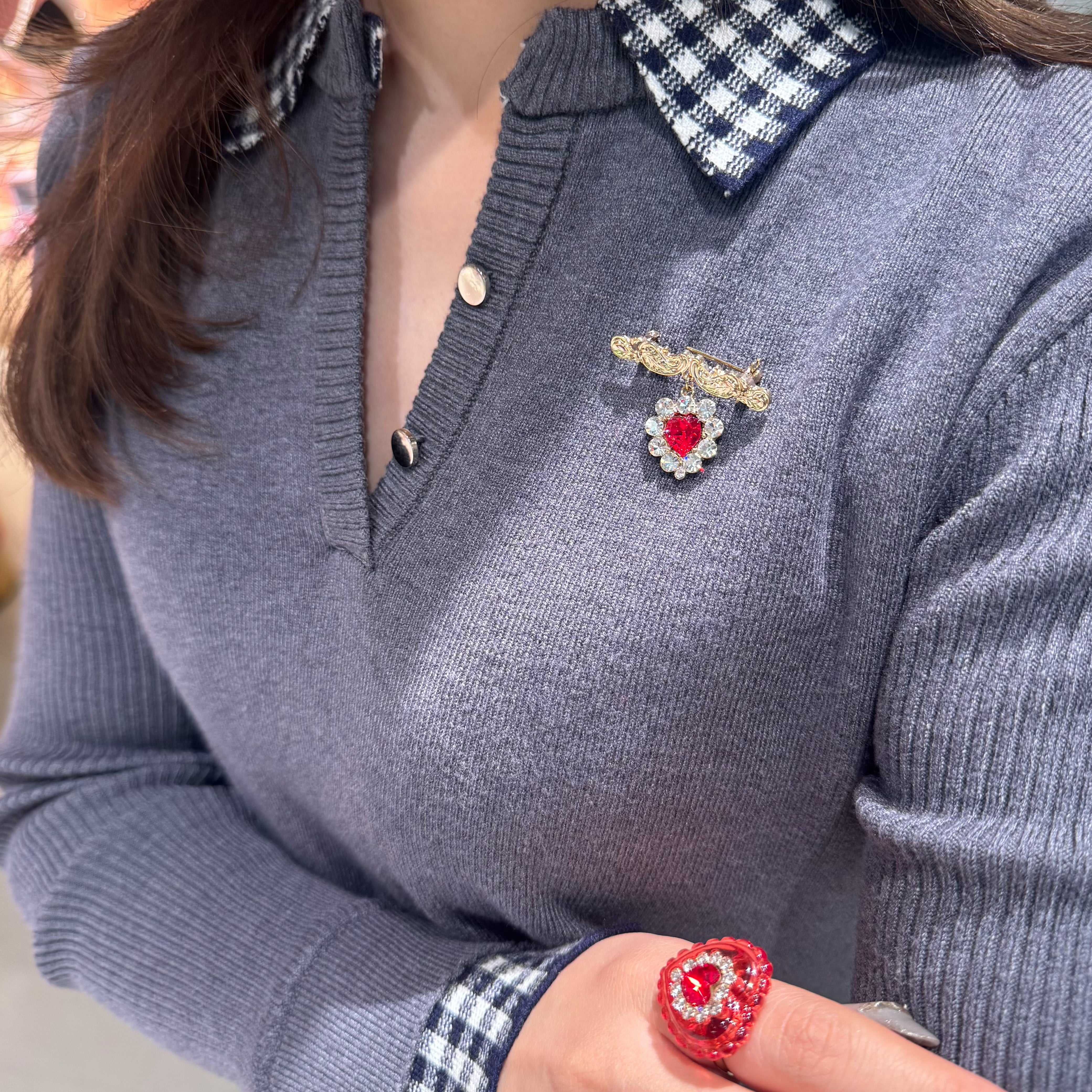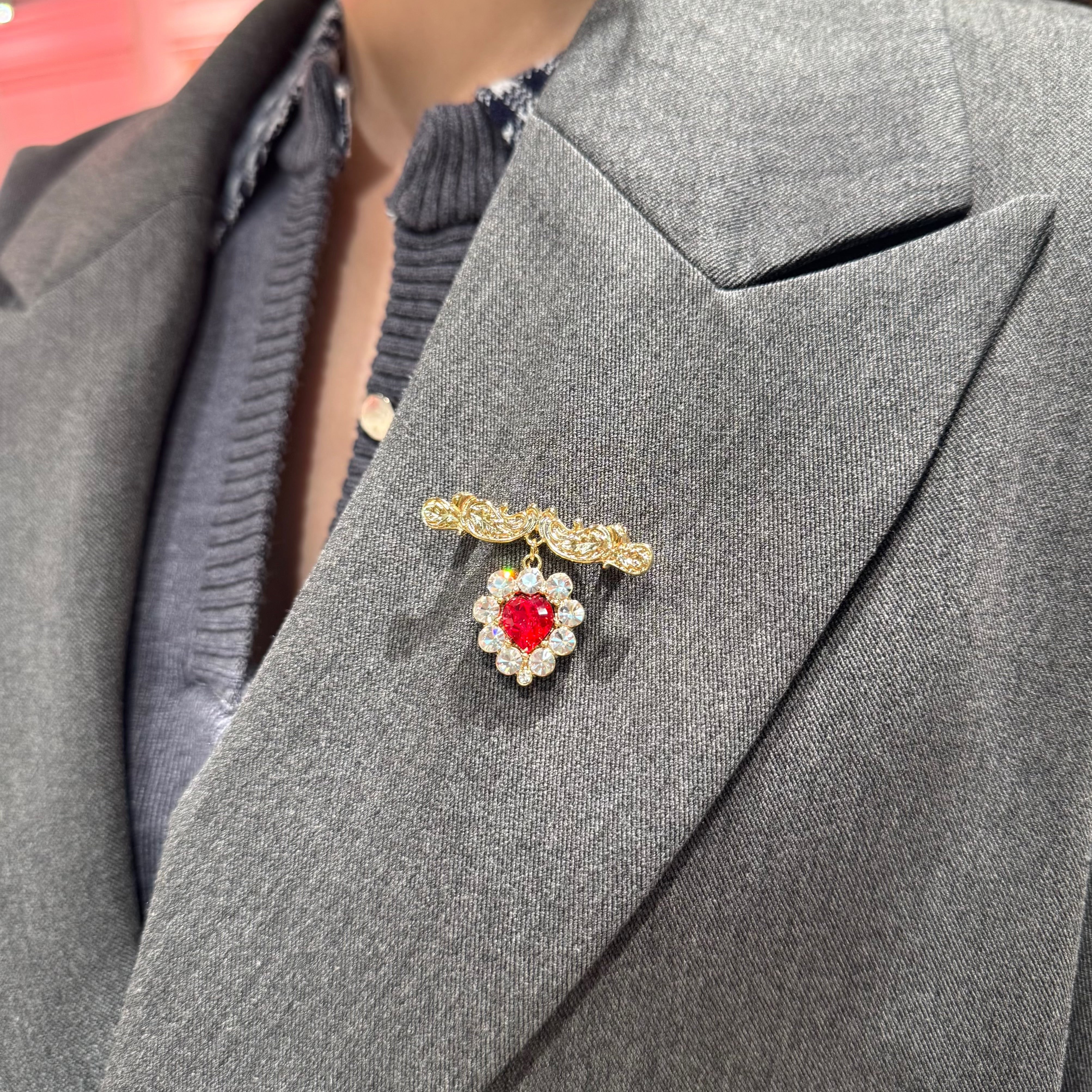 The royal heart brooch will add a touch of elegance to your winter outfit.
