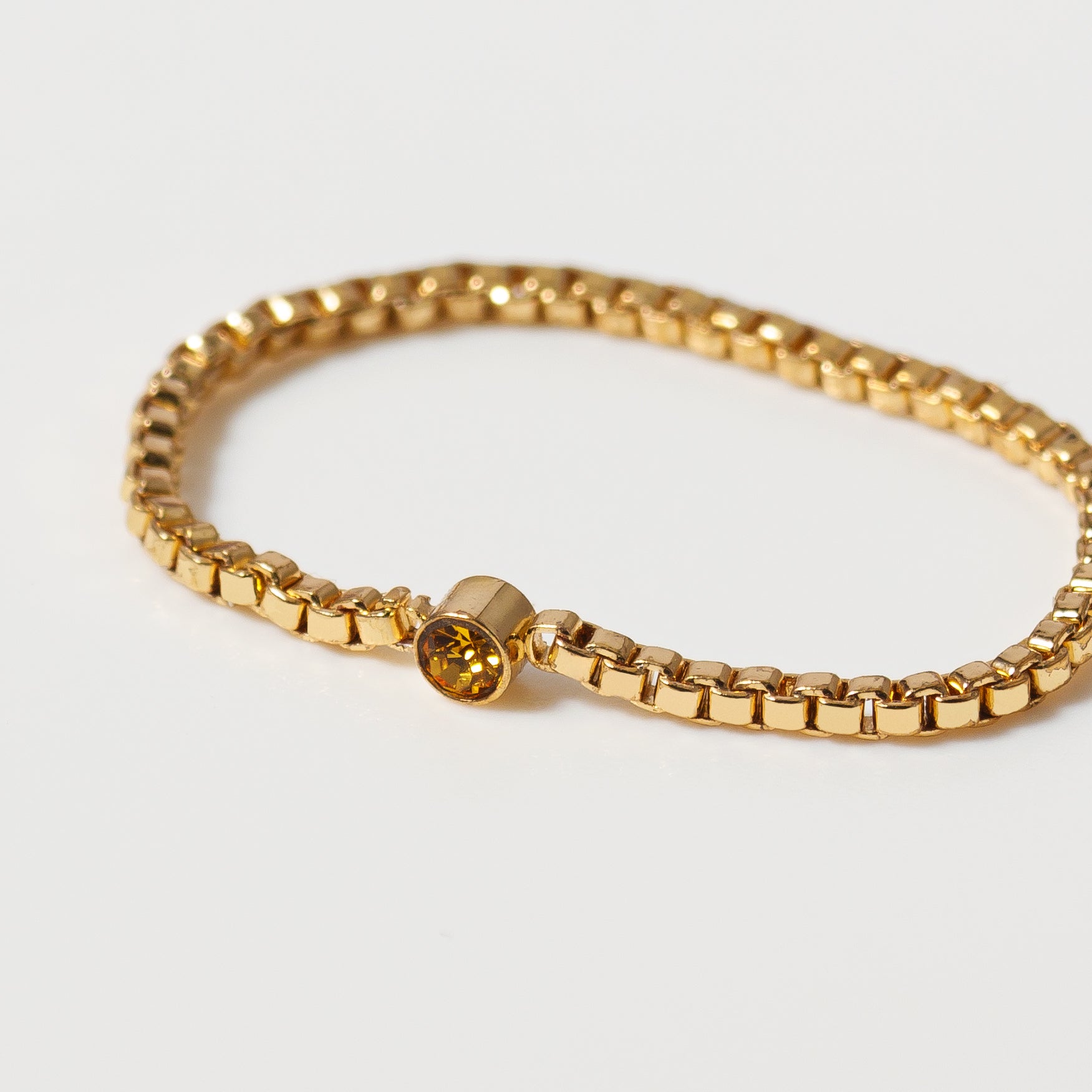 A single orange crystal (topaz) shines, giving the piece a simple yet striking presence.
