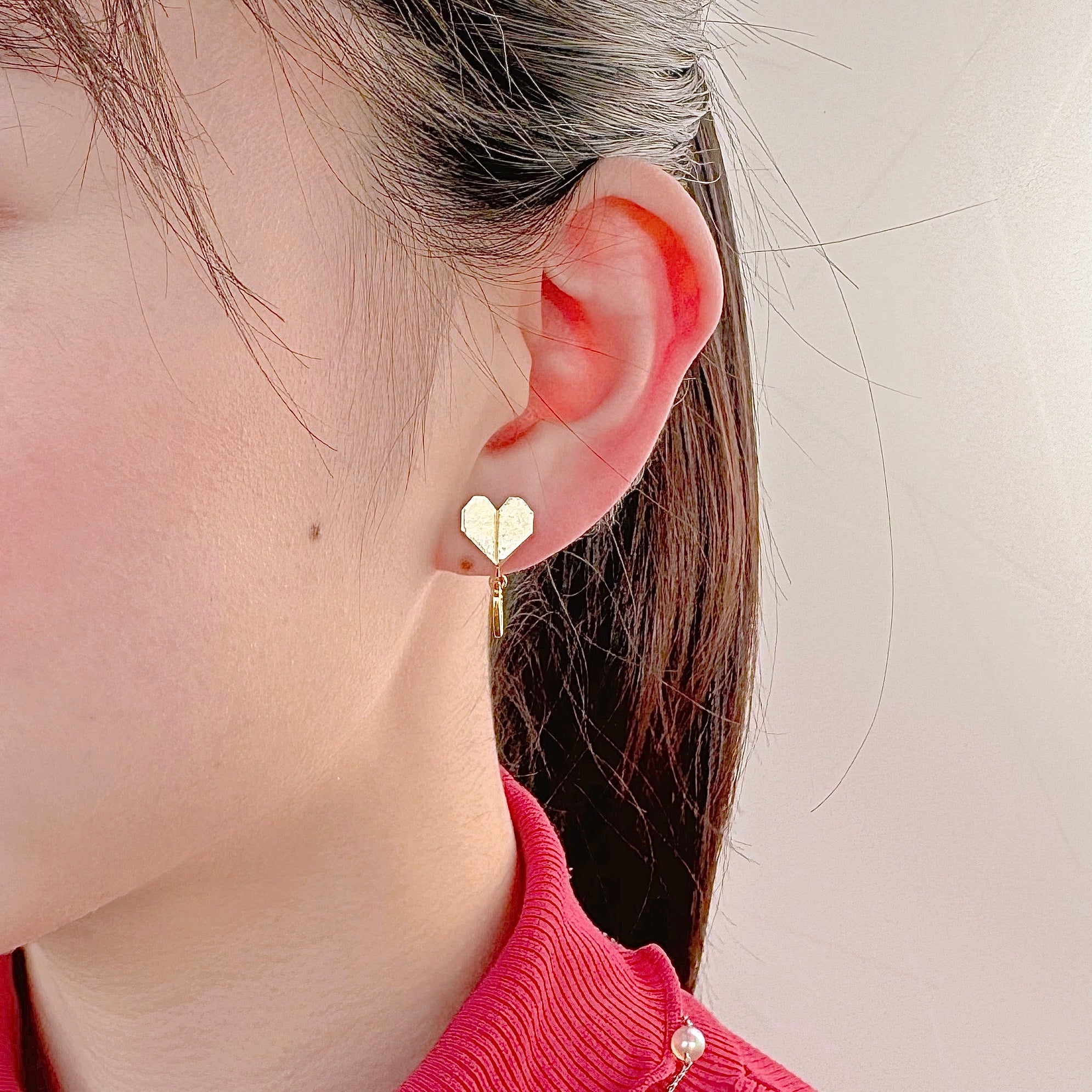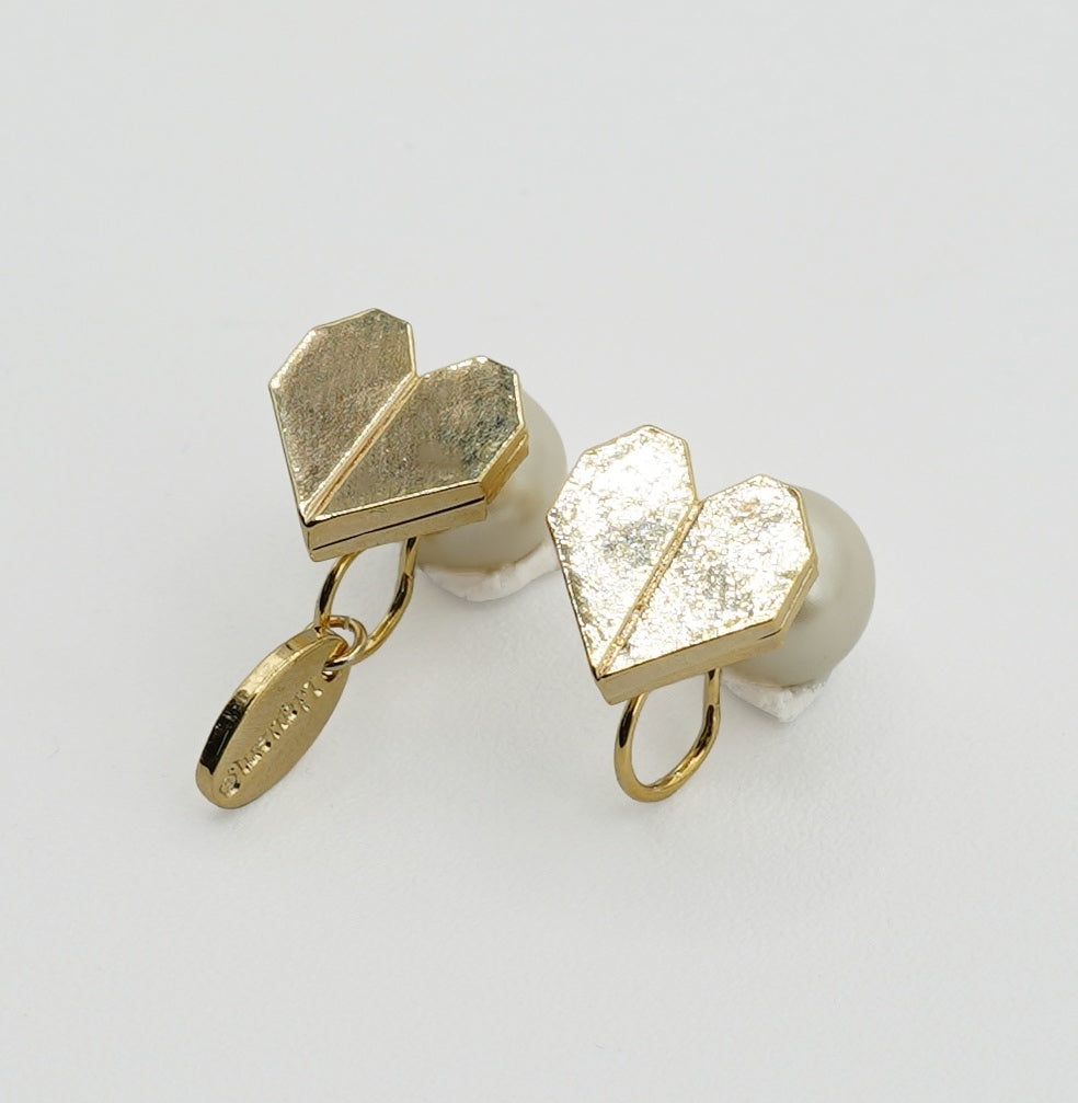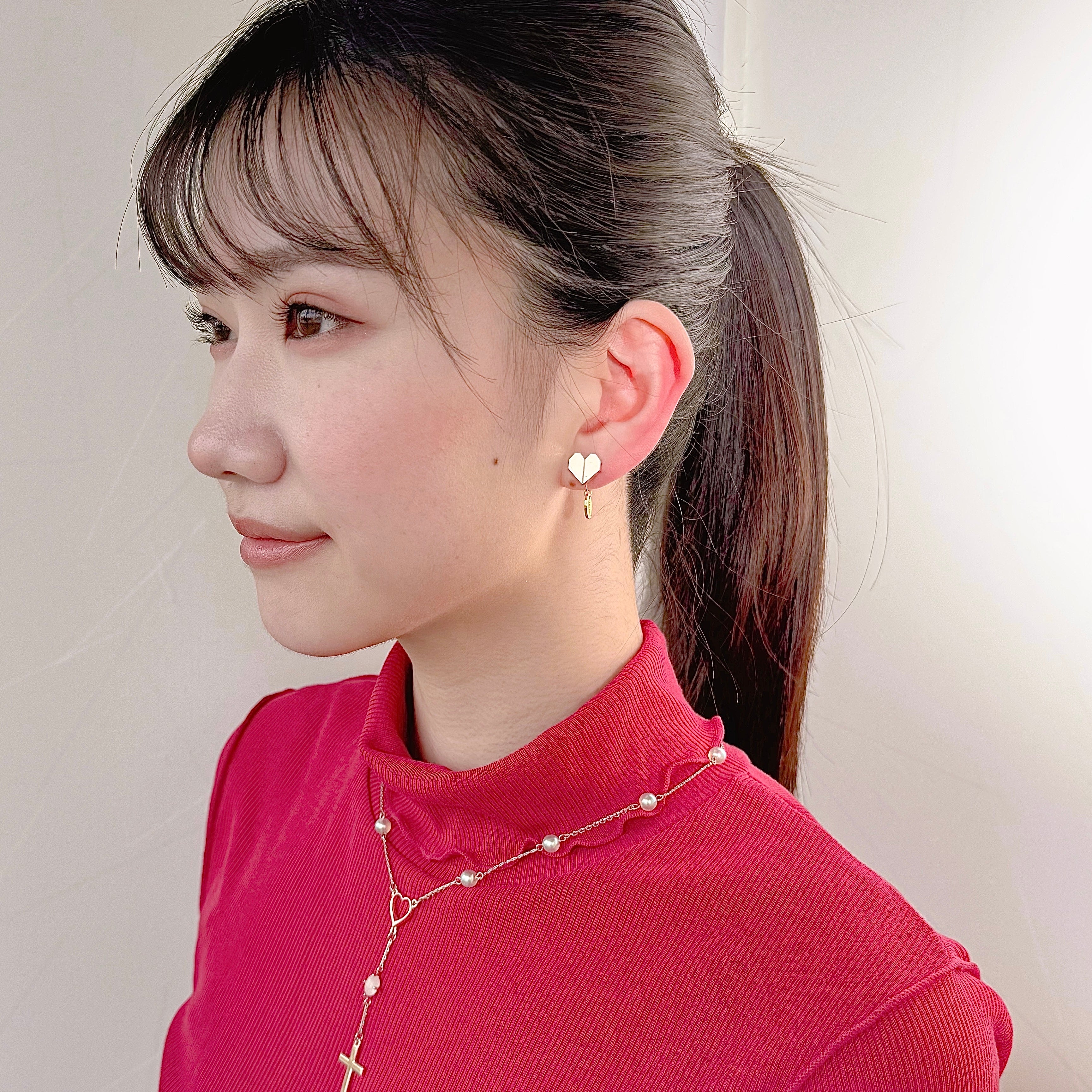 This latest addition to the Unity series. Inspired by the heart-shaped letters I used to give to friends in my student days, this design features a charming crease. The pearl catch can be worn on the front for a two-way look, allowing you to customize the look to suit any occasion. This light gold accessory retains the glamour of Liquem while retaining its sophisticated sweetness, making it suitable for any occasion.