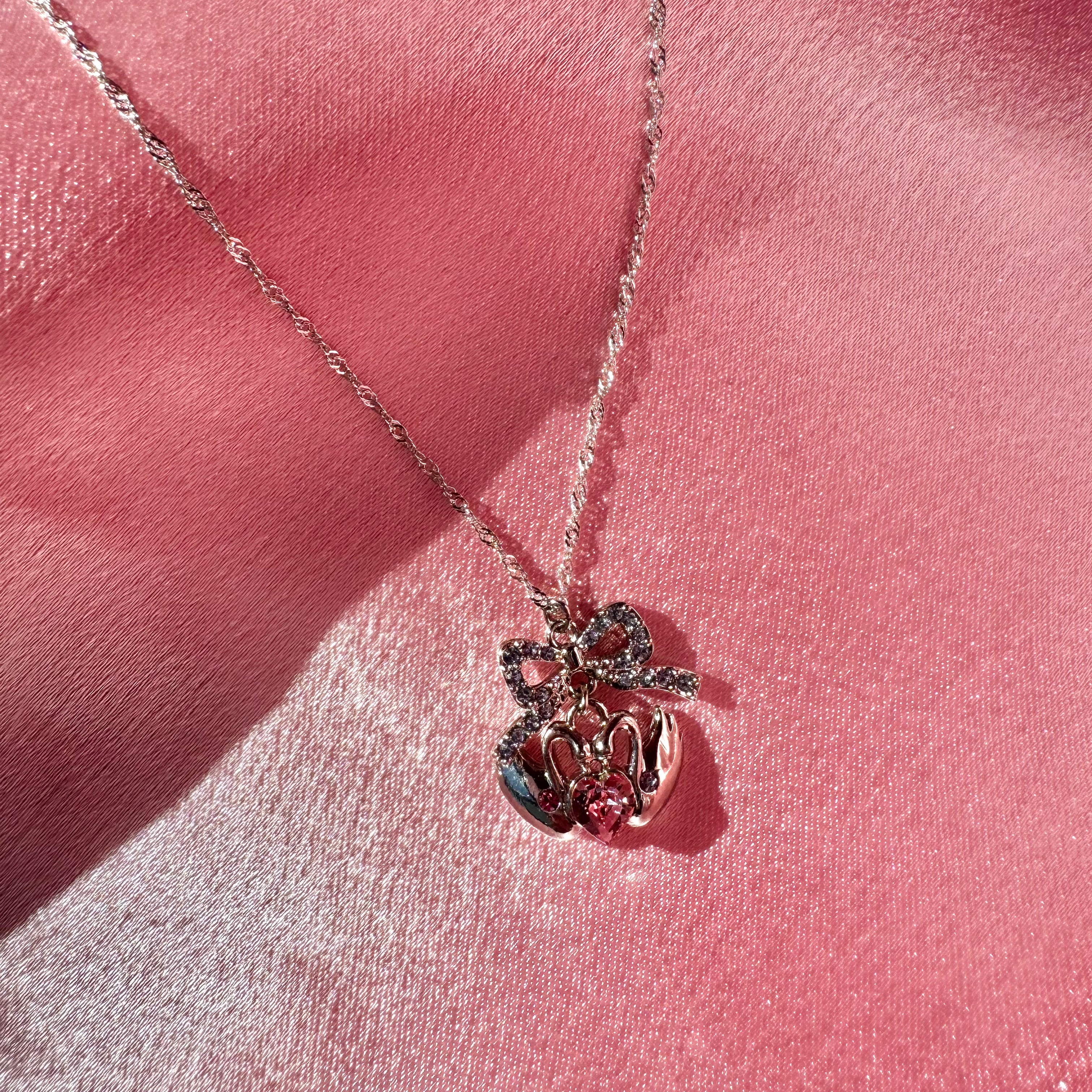 The Lt rose and violet crystals adorning the chest give off an air of elegance, as if embracing a jewel. A luxurious crystal-studded ribbon sits on top, from which a swan sways lightly, creating a ladylike design. Though modest in size, the refined sparkle of the silver plating adds a dramatic touch to everyday styling.