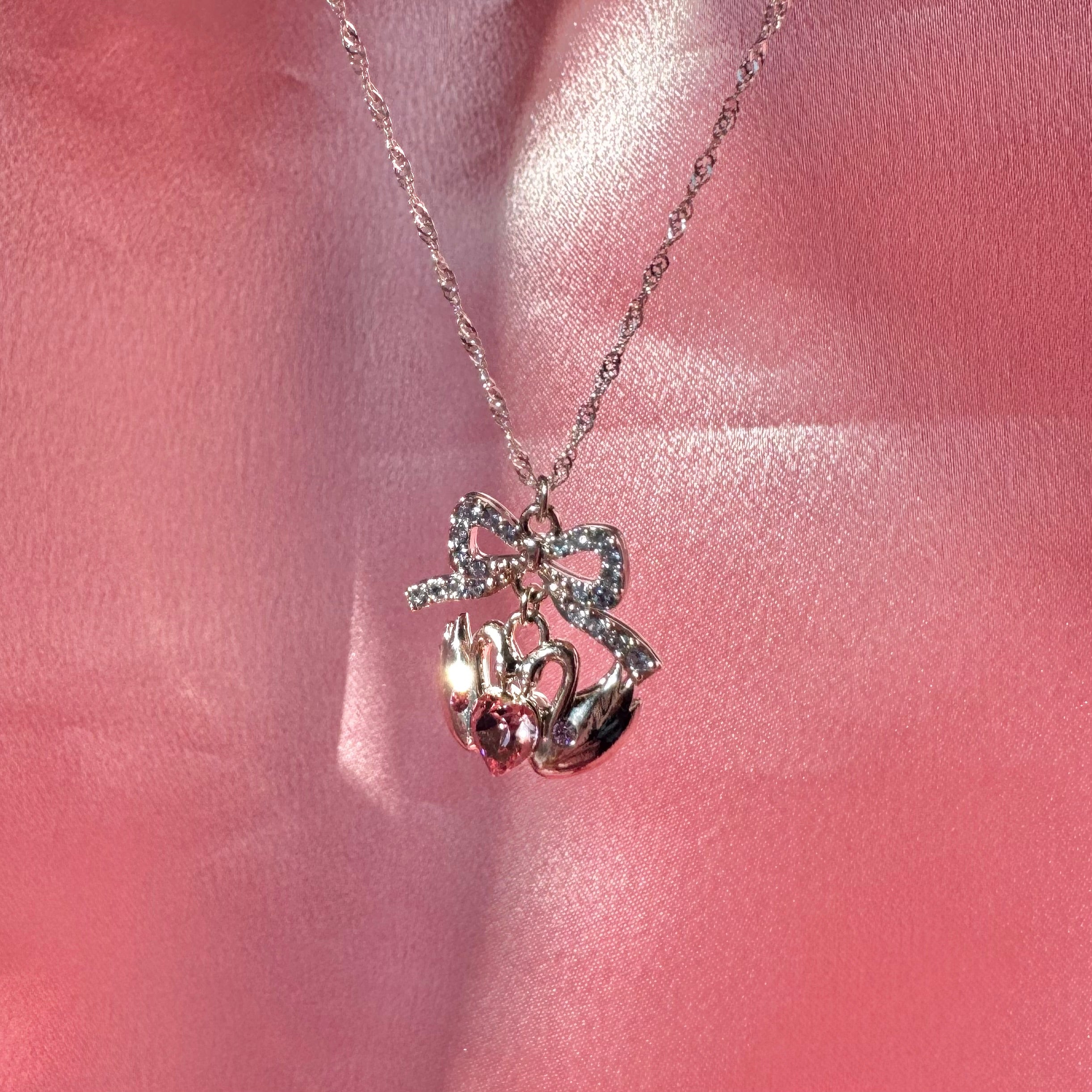 The "Swan Harmony" pendant features two swans facing each other, forming a beautiful heart in the center.