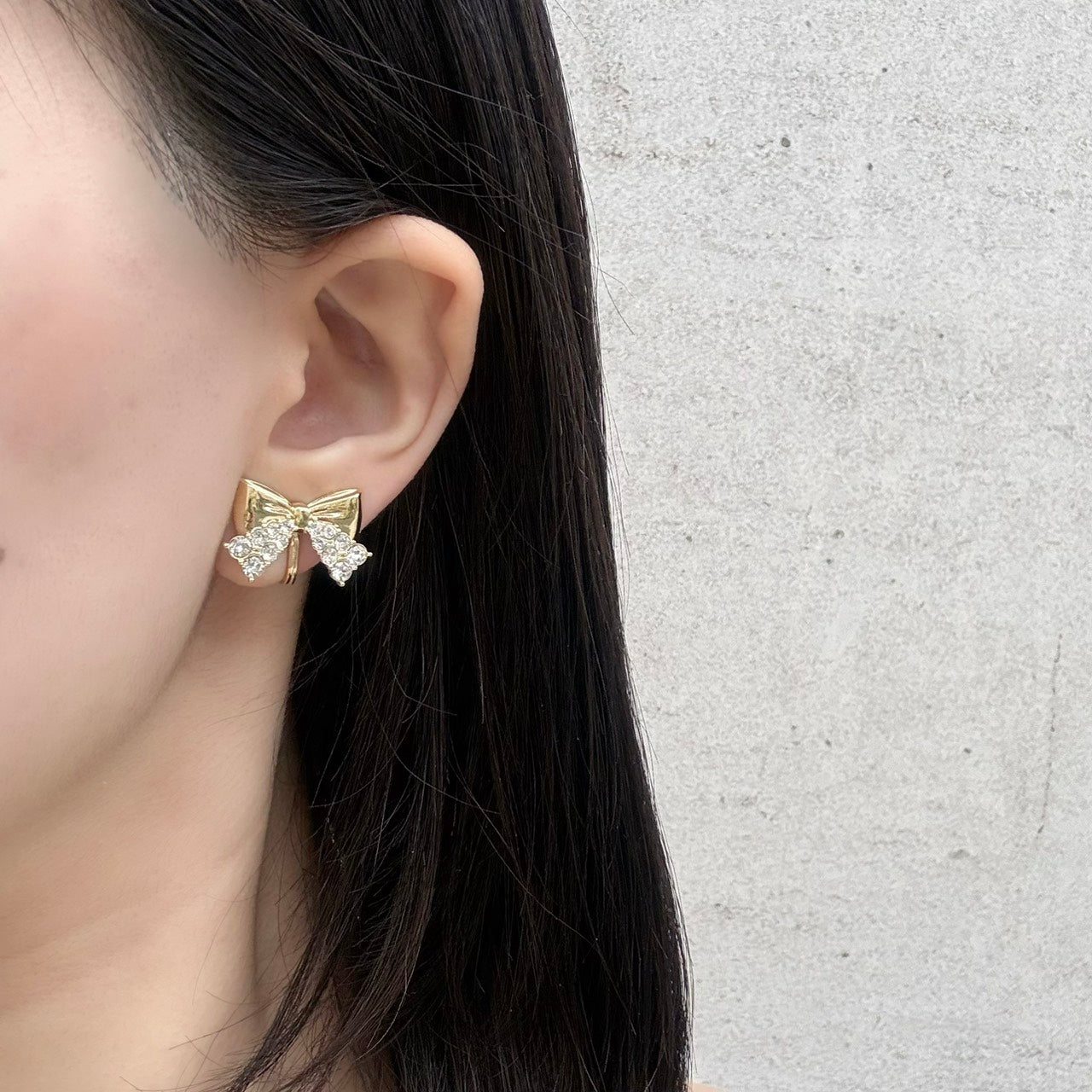Sparkle ribbon earrings that combine crystals that subtly emit light.