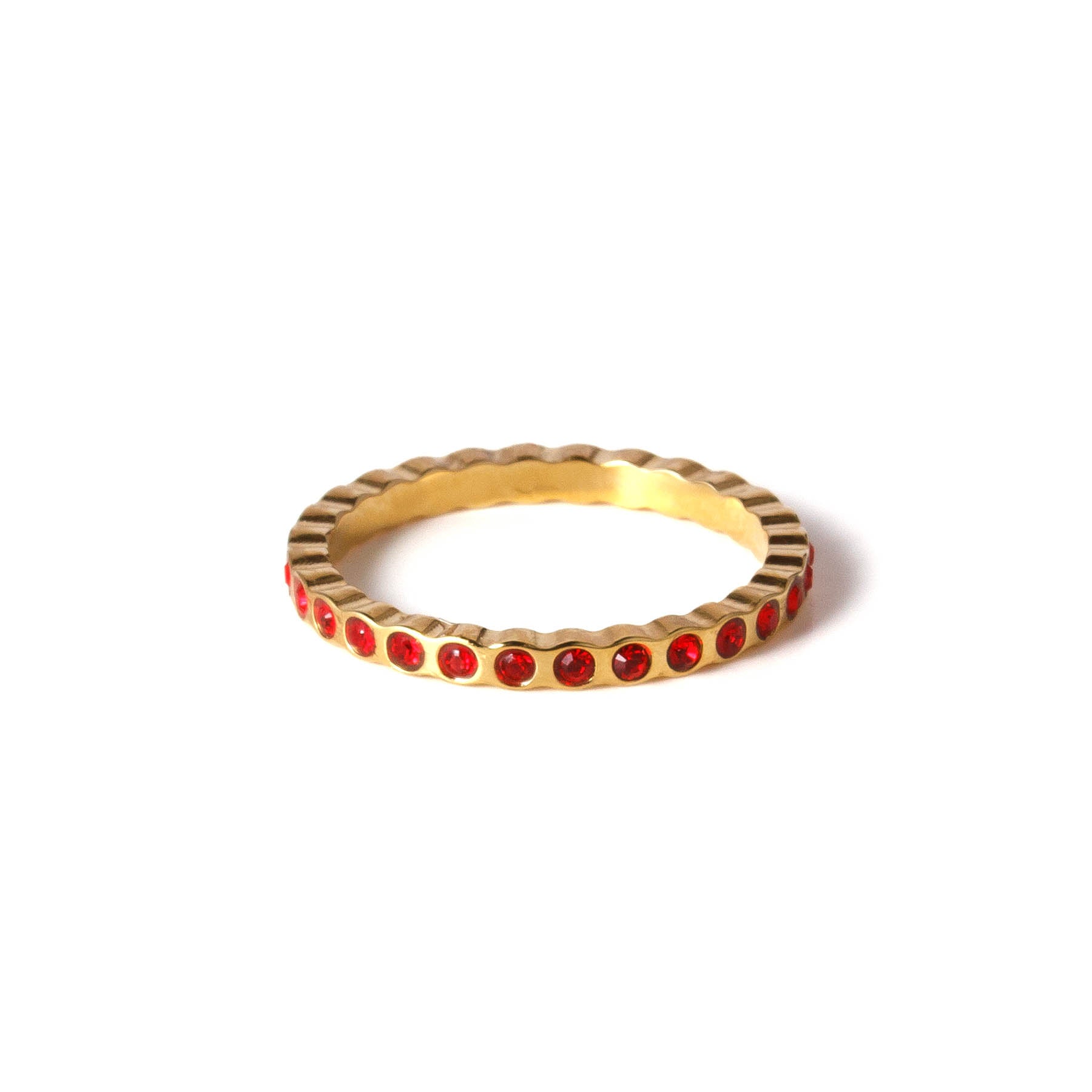 Delicate stones are arranged all around the ring, creating a line of light on your fingertips.