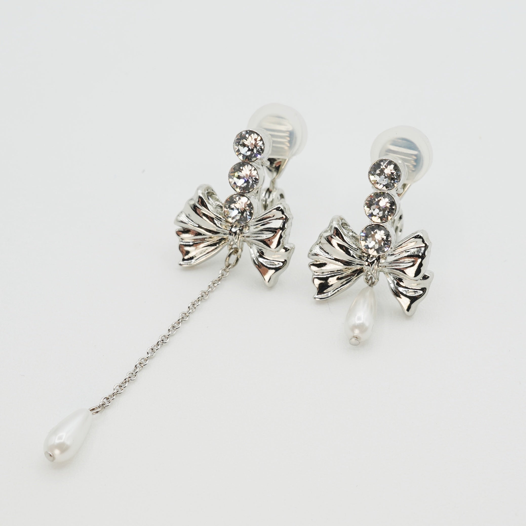 The asymmetrical design adds a subtle touch to the face. Three crystal glasses are combined with a casual, wrinkled ribbon. The chains move differently on each side, creating a romantic feel with every step.