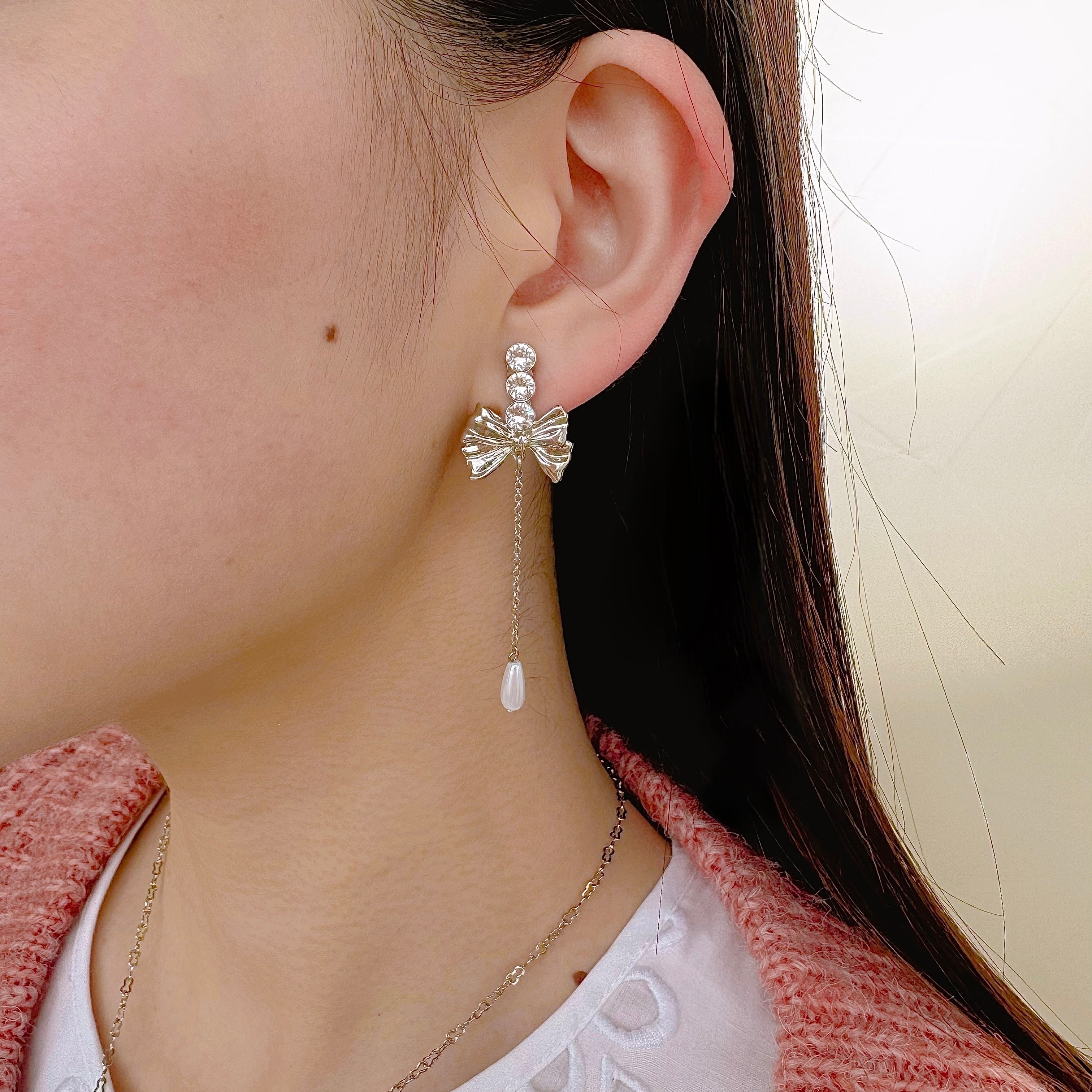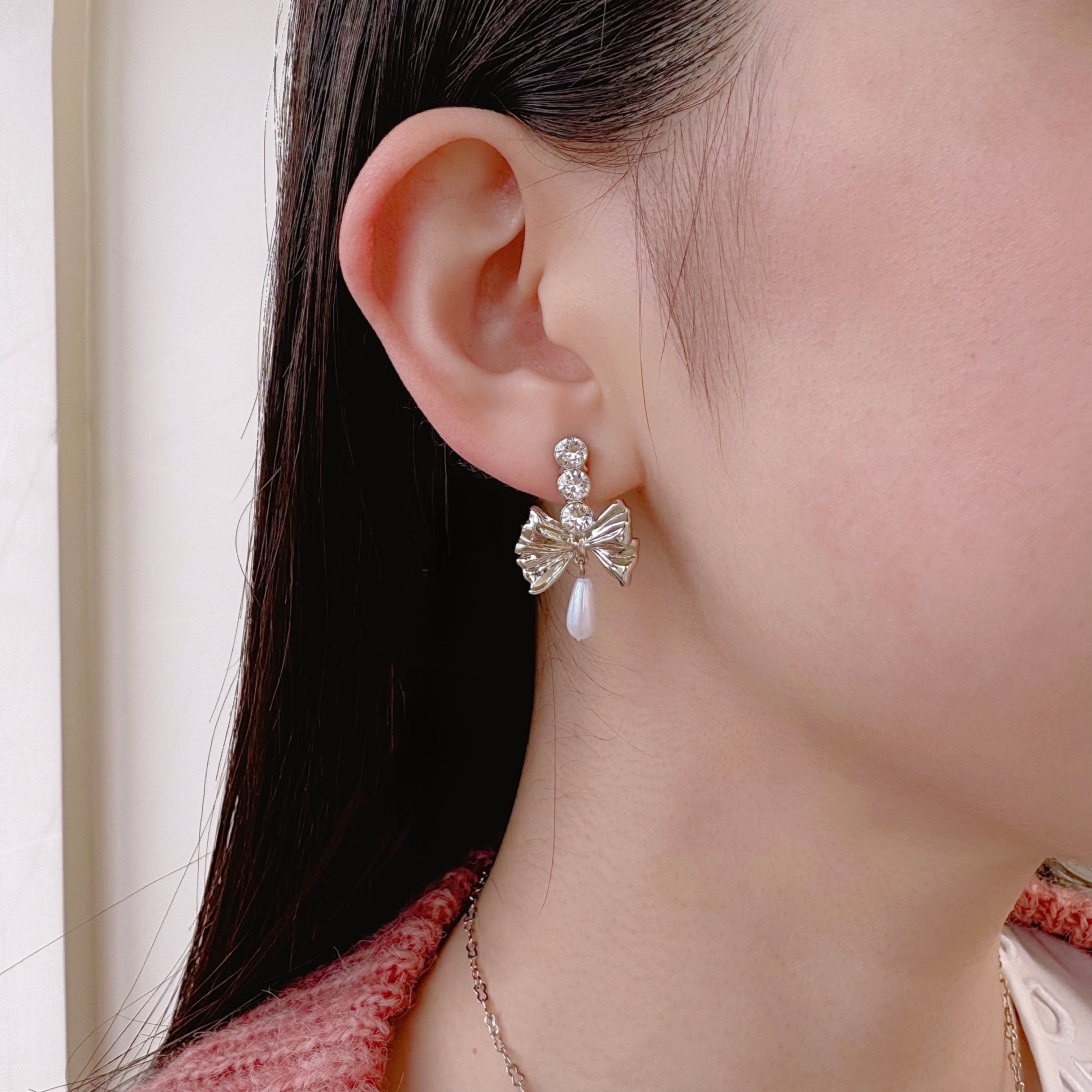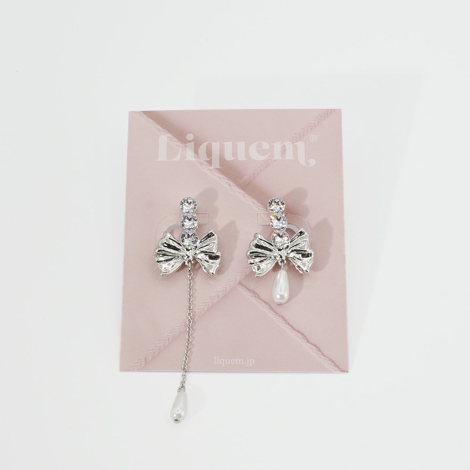 The wrinkled ribbon is not too perfect, but it fits the current mood. The sophisticated shine of the silver plating makes it perfect for layering with your existing earrings. Enjoy the sophisticated air that comes from the asymmetrical design.