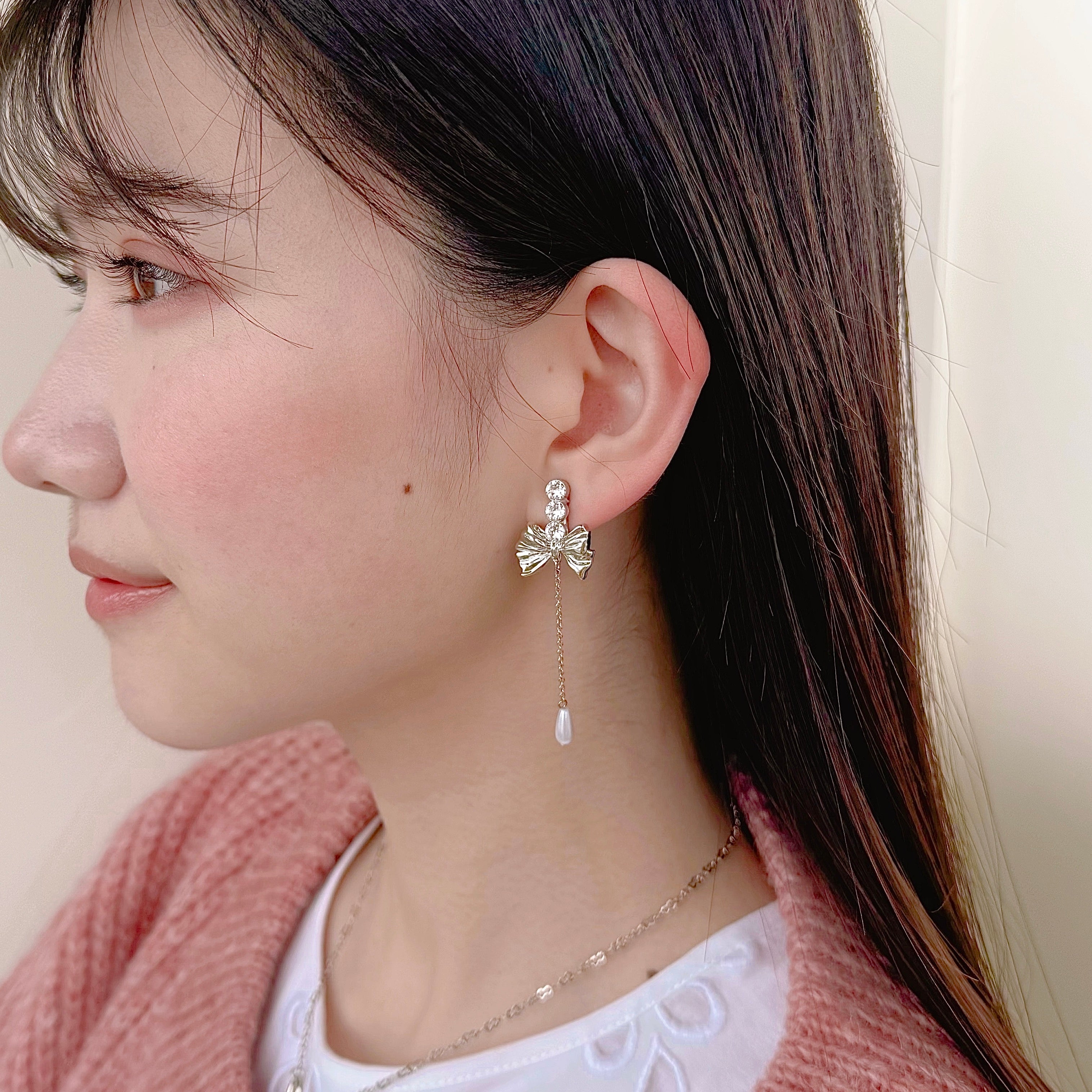Liquemのイヤリング金具は、痛くなりにくいクリップ式のものを使用しています。一般的なバネ式のものとは異なり、必要以上に挟み込むことがないため自分の耳たぶの厚みに応じて調節ができます。今までイヤリングの痛さでお悩みだった方もぜひ試しください。