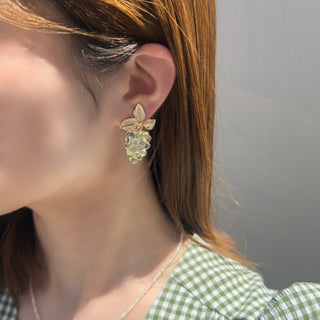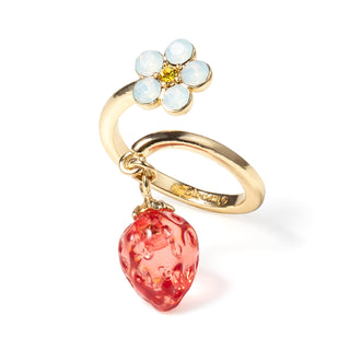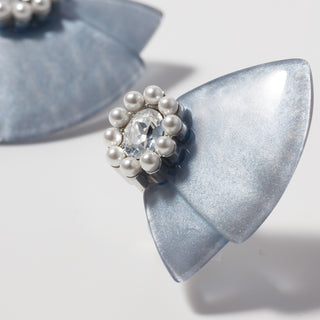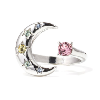 The surrounding metal frills and light ribbons create a sweet and playful look.