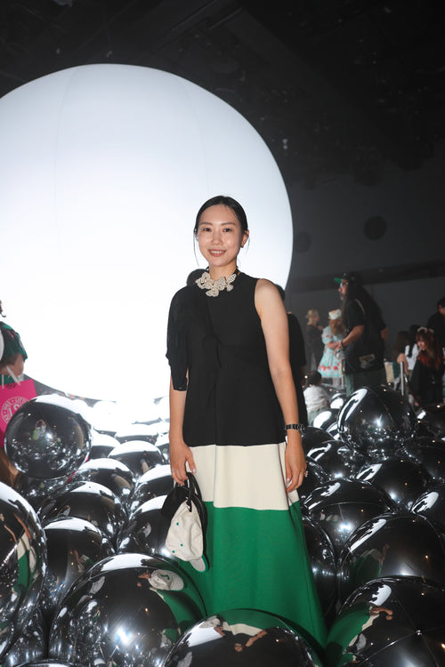 A luxurious necklace featuring a large flower woven with pearls adorning the neckline. You can achieve both a casual and fashionable look. Inspired by the image of an elegant lei, Although it has a strong presence, the softness of the pearls makes it easy to wear.
