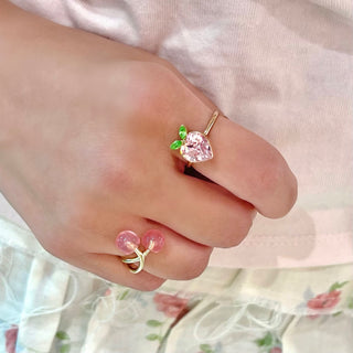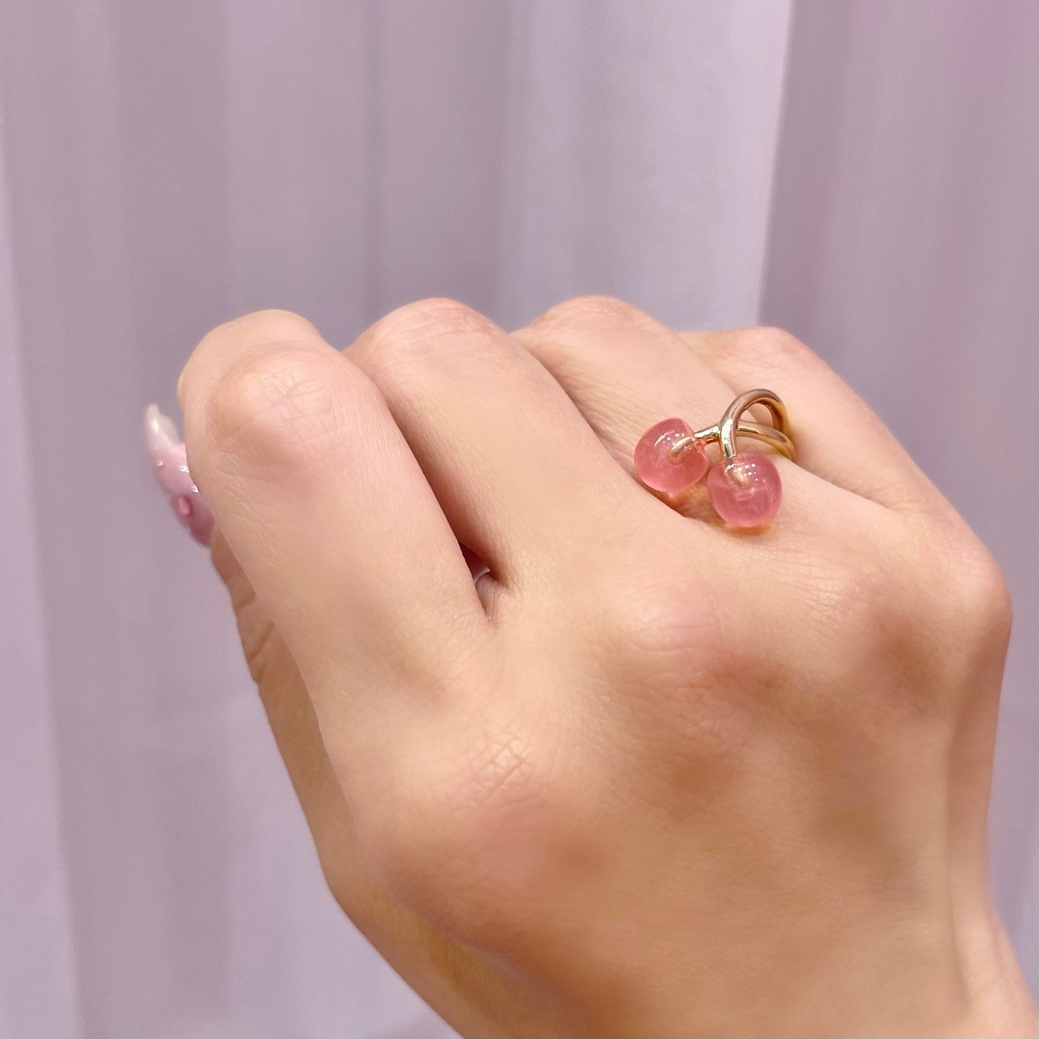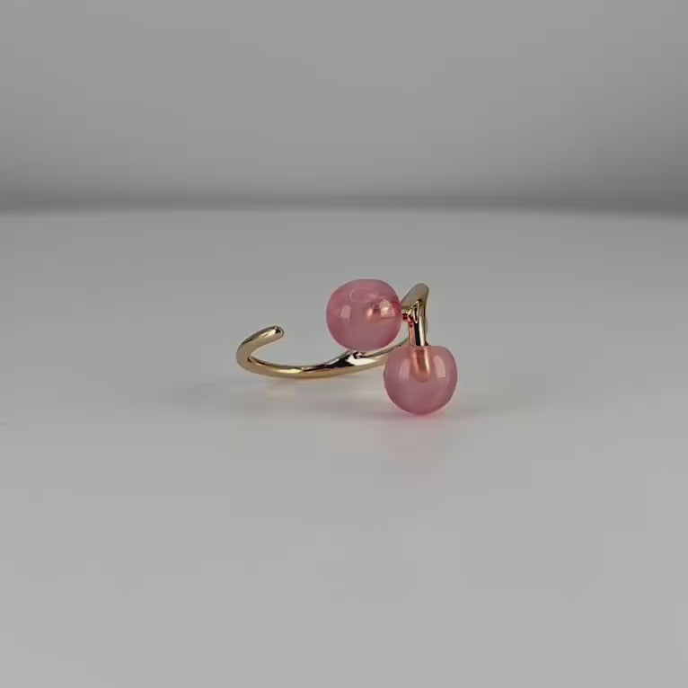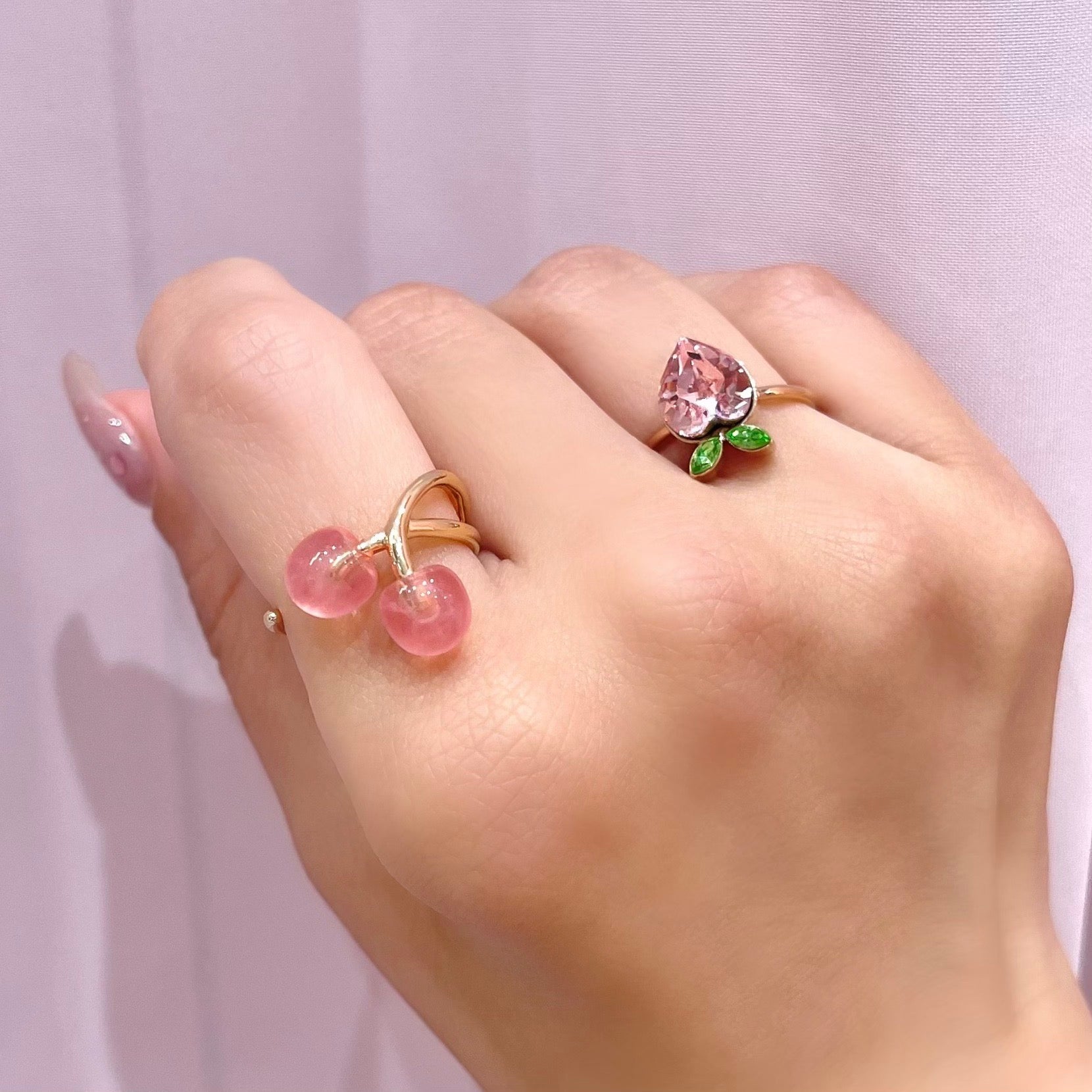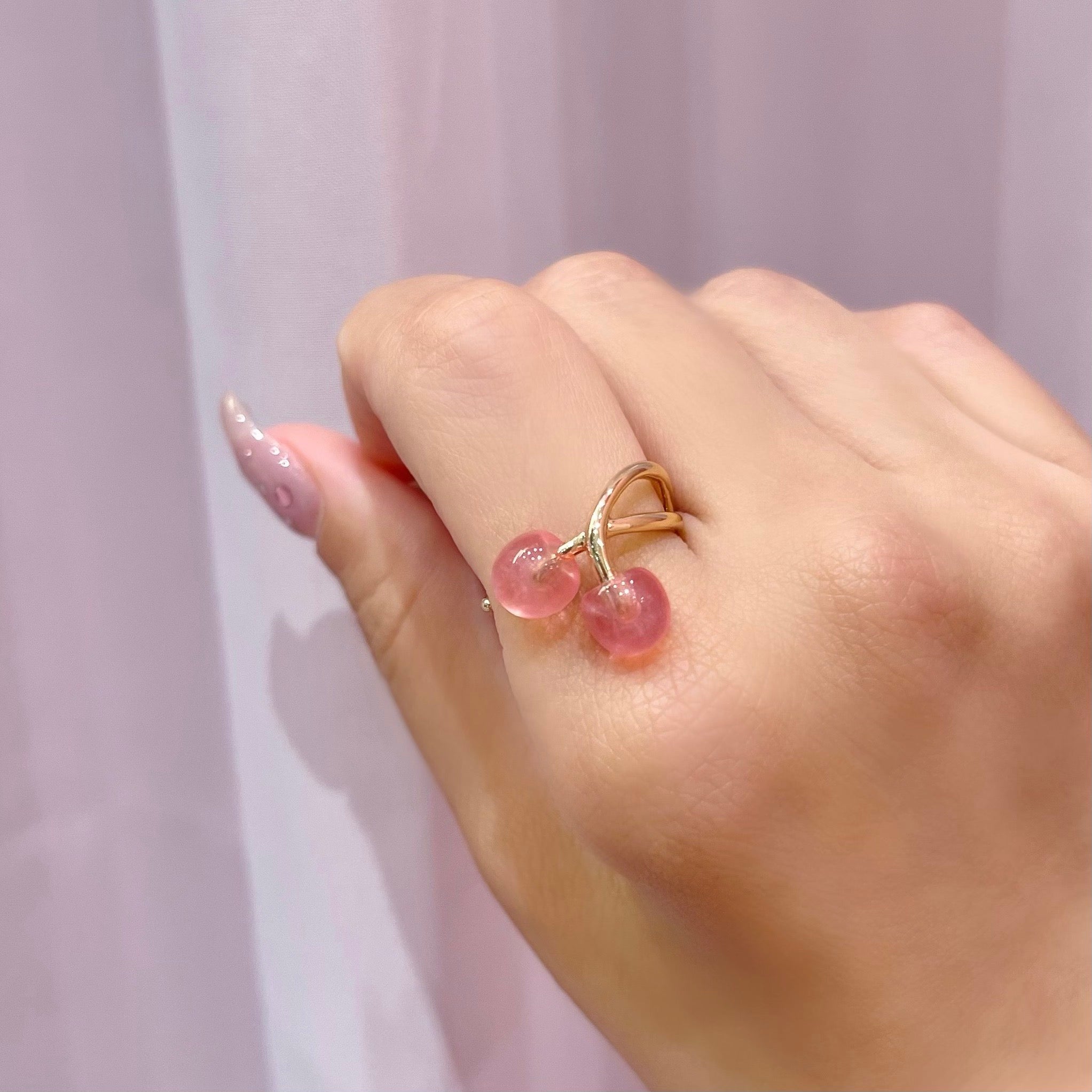 The cherry lying comfortably on your finger is sure to make you feel happy when you suddenly look down at your hand.