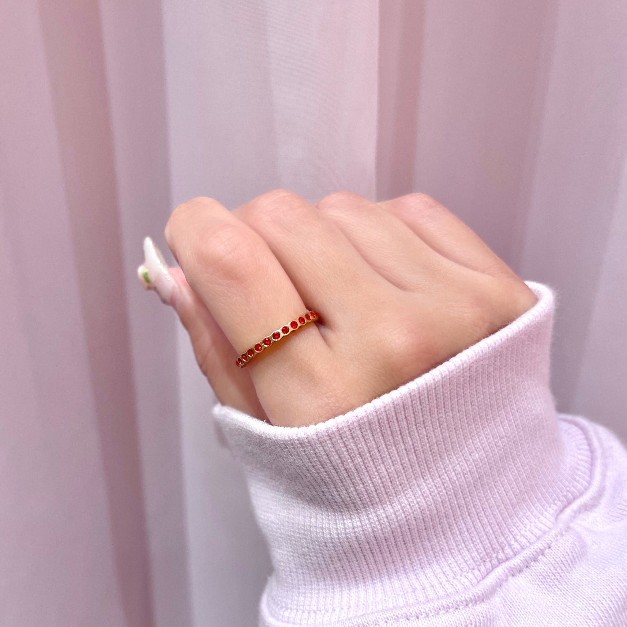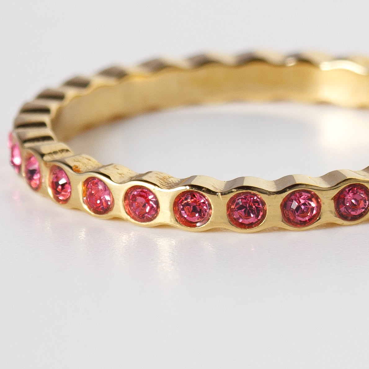 Delicate stones are arranged all around the ring, creating a line of light on your fingertips.