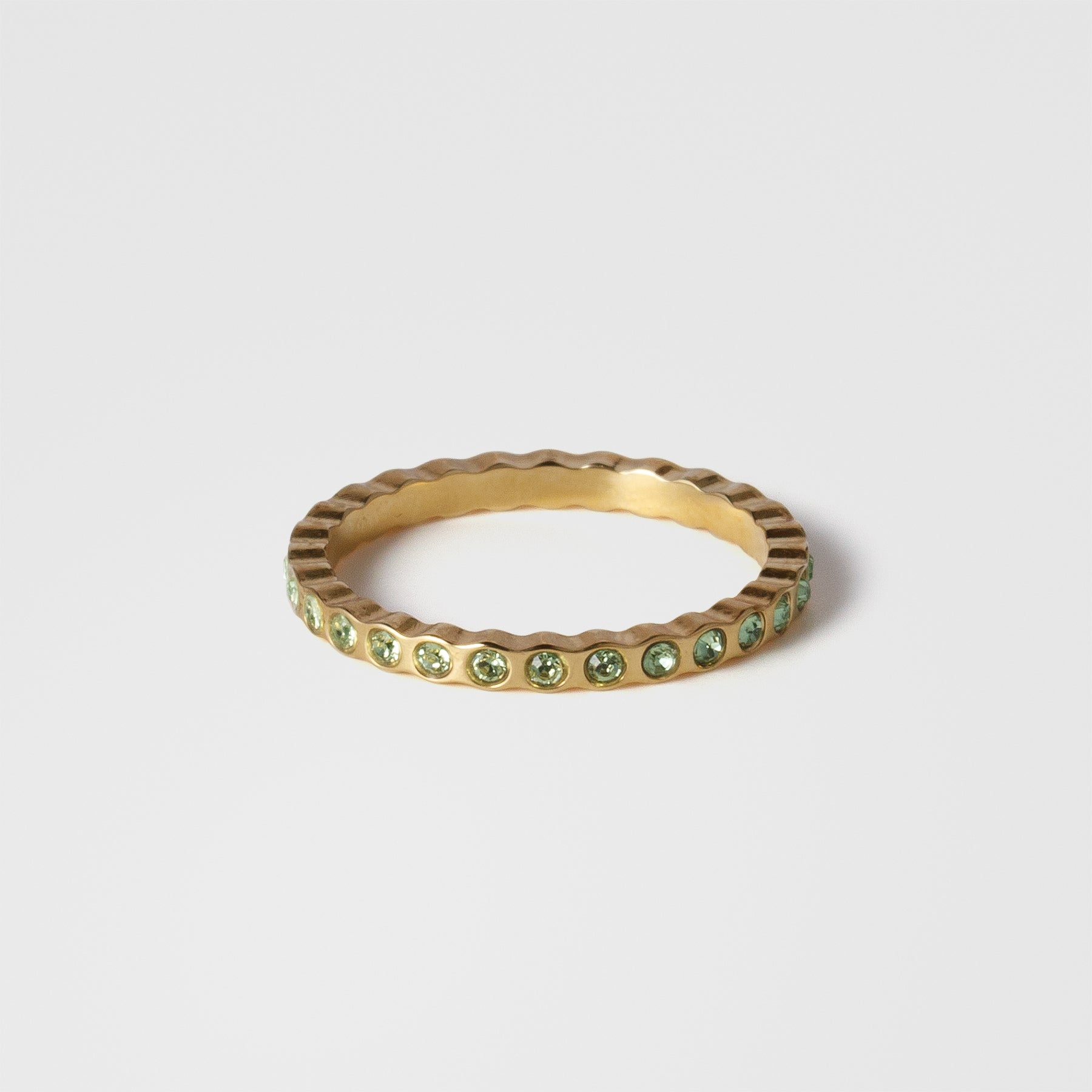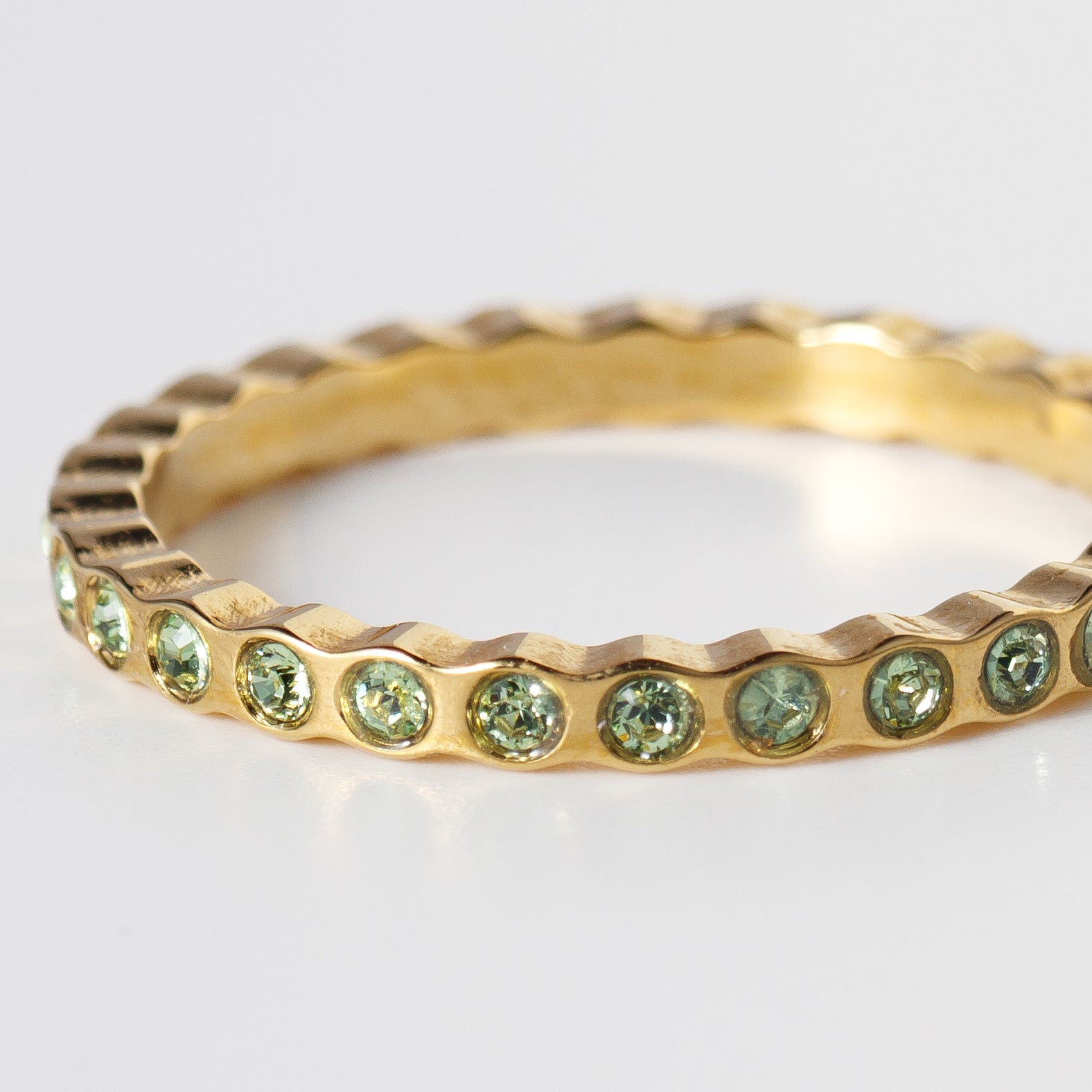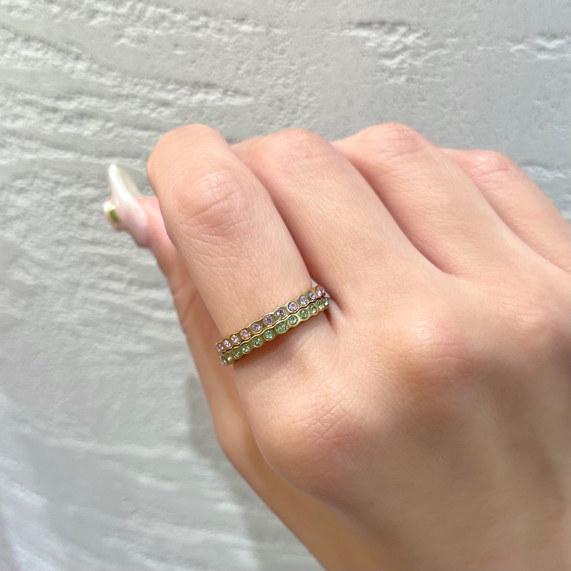 Delicate stones are arranged all around the ring, creating a line of light on your fingertips.