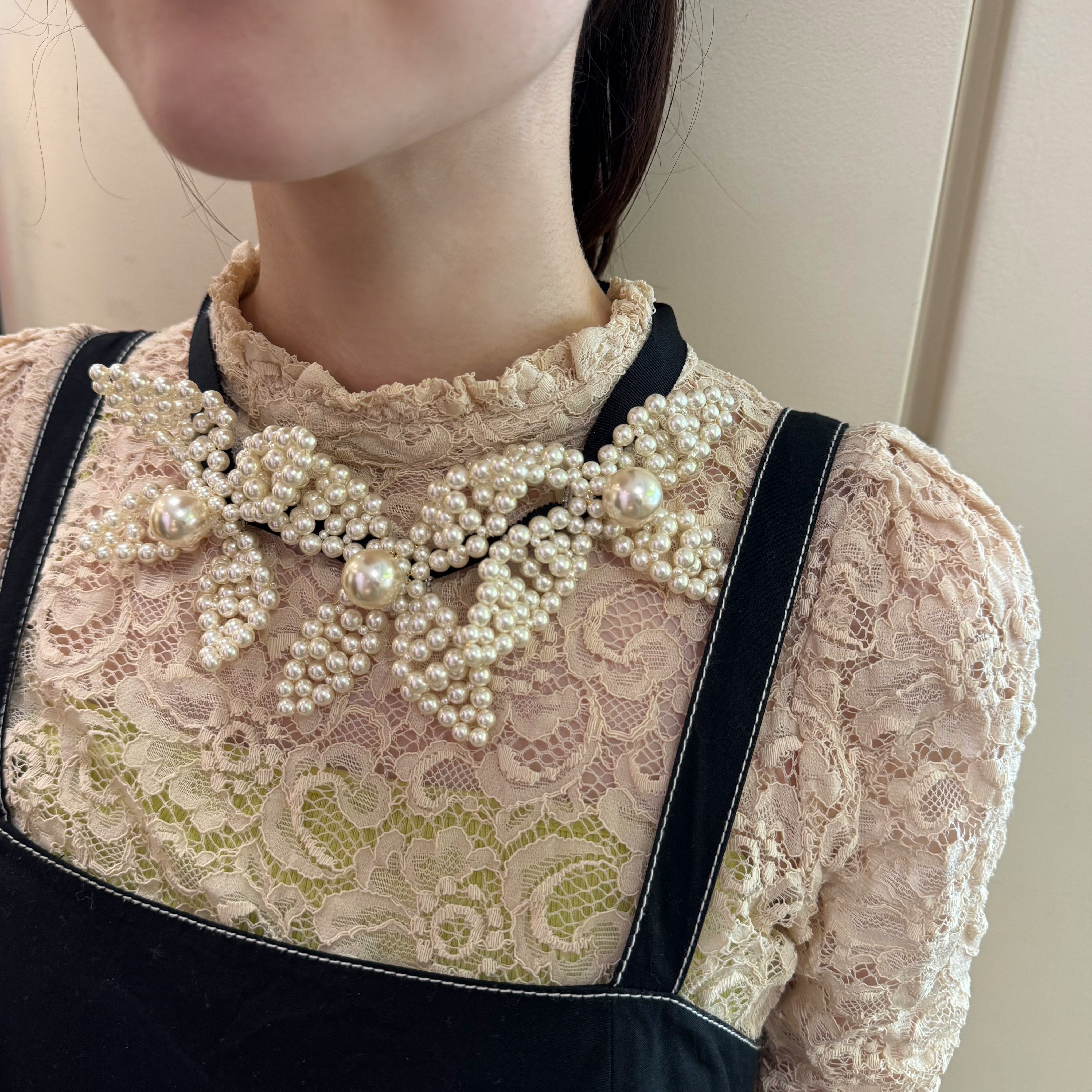 私が持っているコスチュームアクセサリーがデザインソースです。 ネックラインがシンプルなトップスやワンピースにぜひ合わせてください。 手編み感とモード感がたまりません。