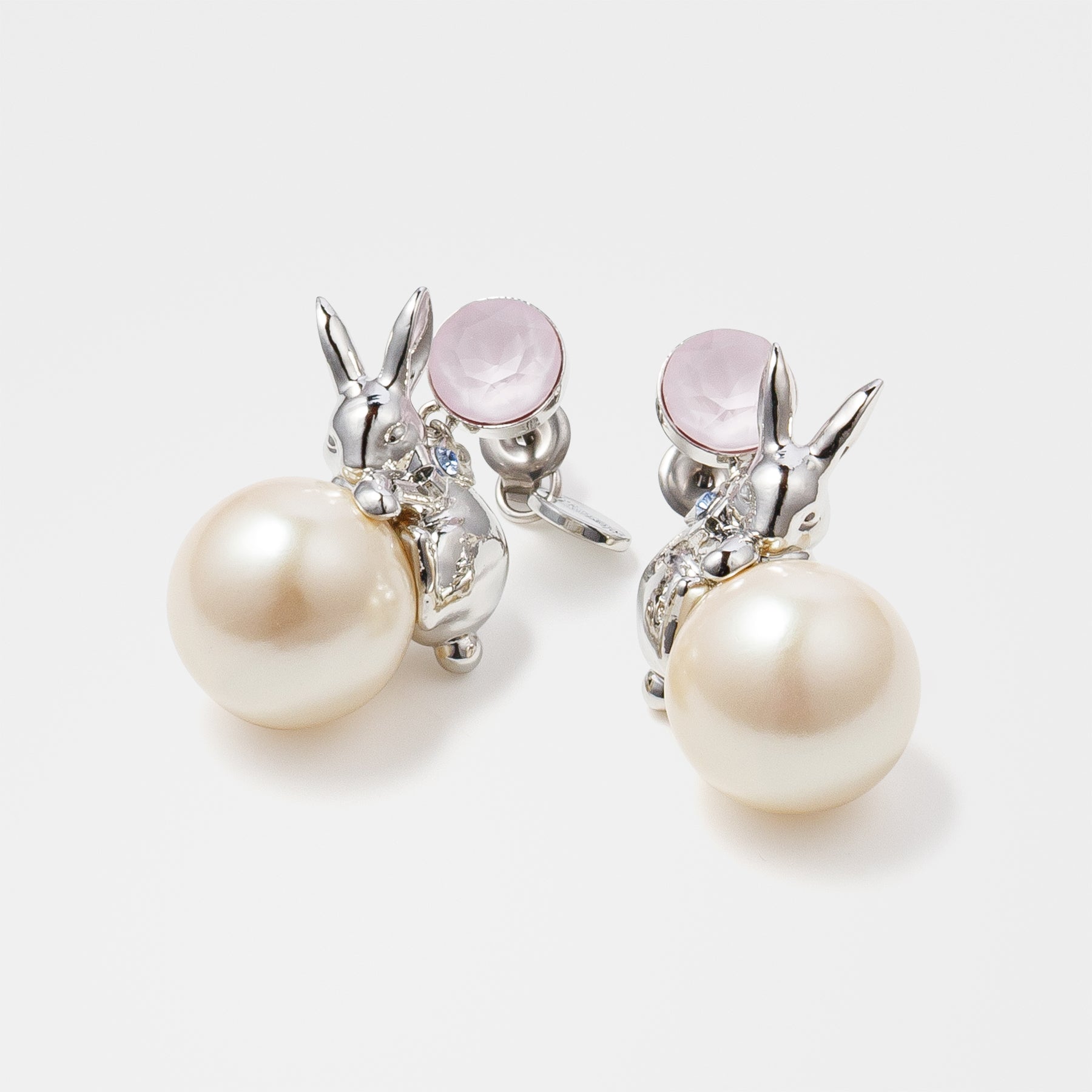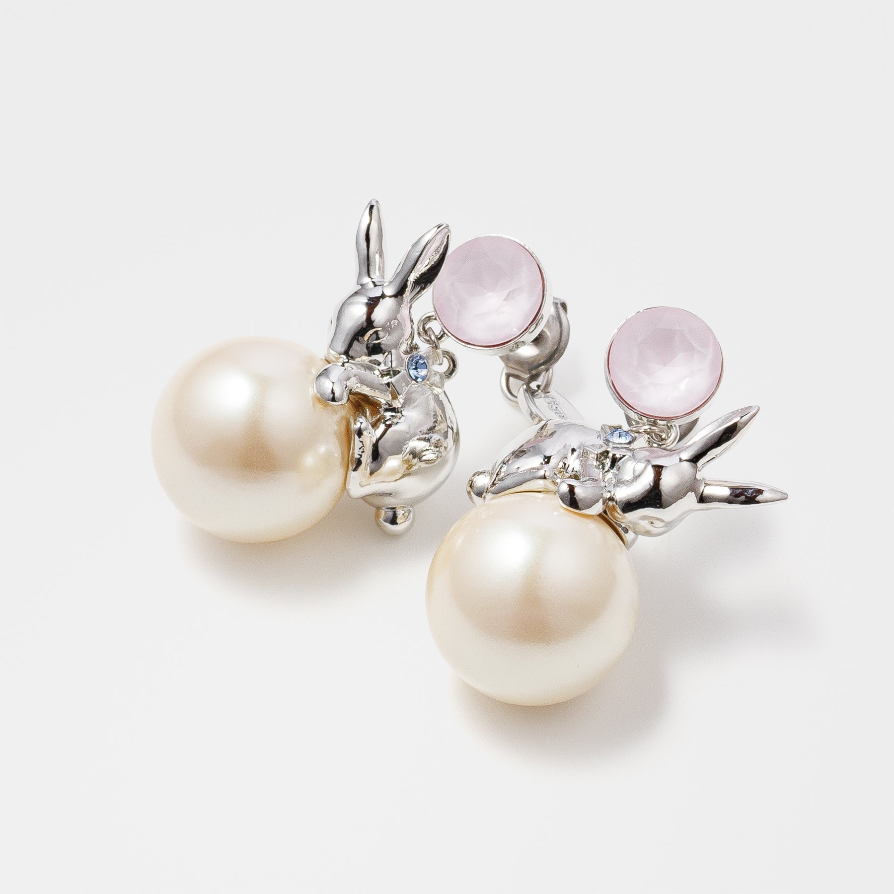 そんな穏やかで愛らしいワンシーンを耳元に宿す、特別なアイテムです。うさぎの背後には、まどろみの中の柔らかな光をイメージした、パウダリーピンクのクリスタルを添えました。心にポッと灯がともるような優しさに満ちたデザインです。