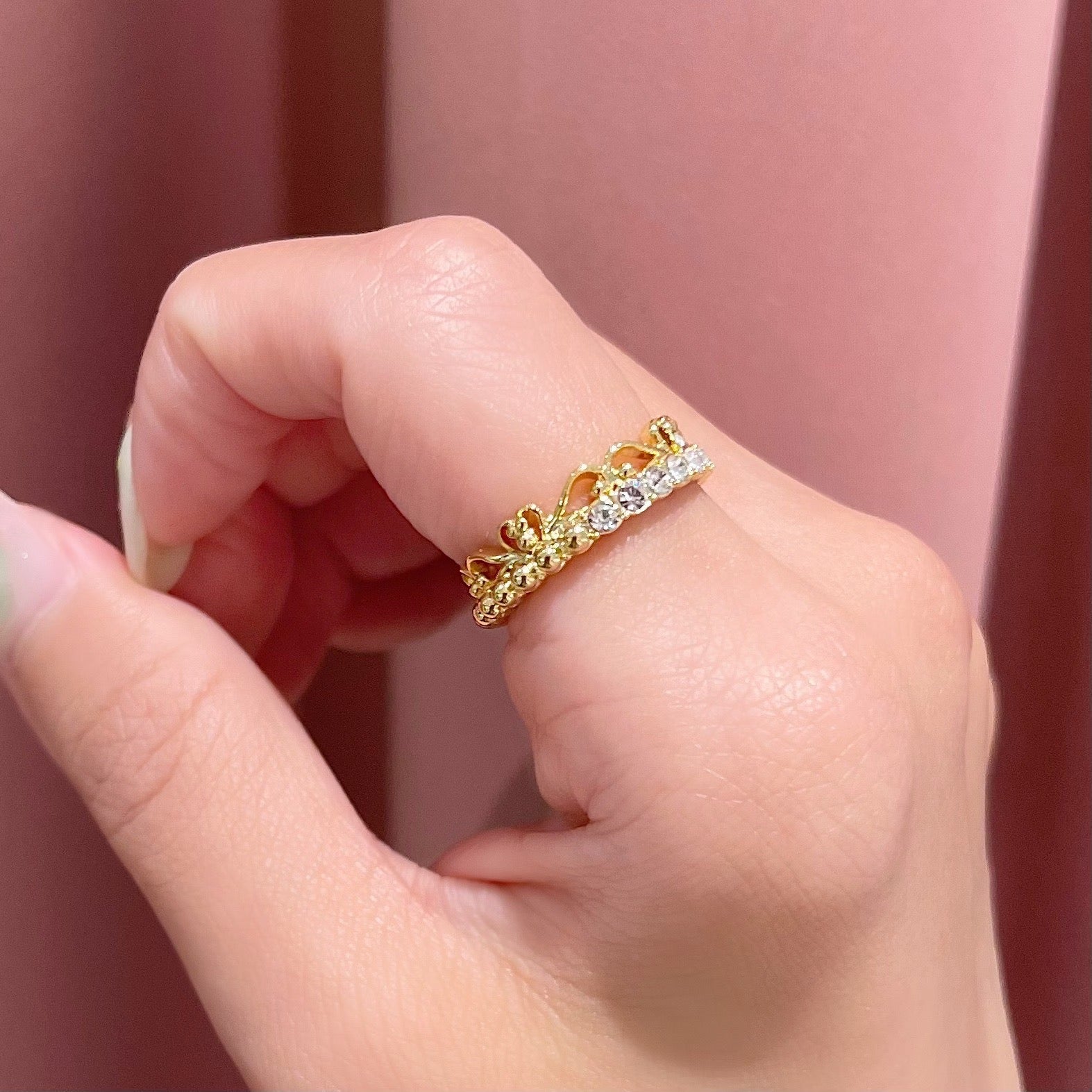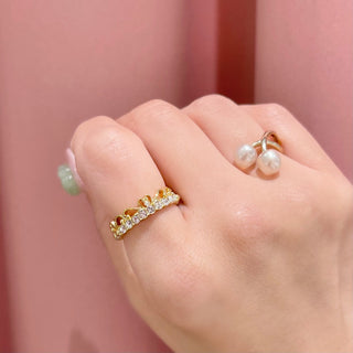 バロック調のティテールを透かし技法で表現したパール風のリング。