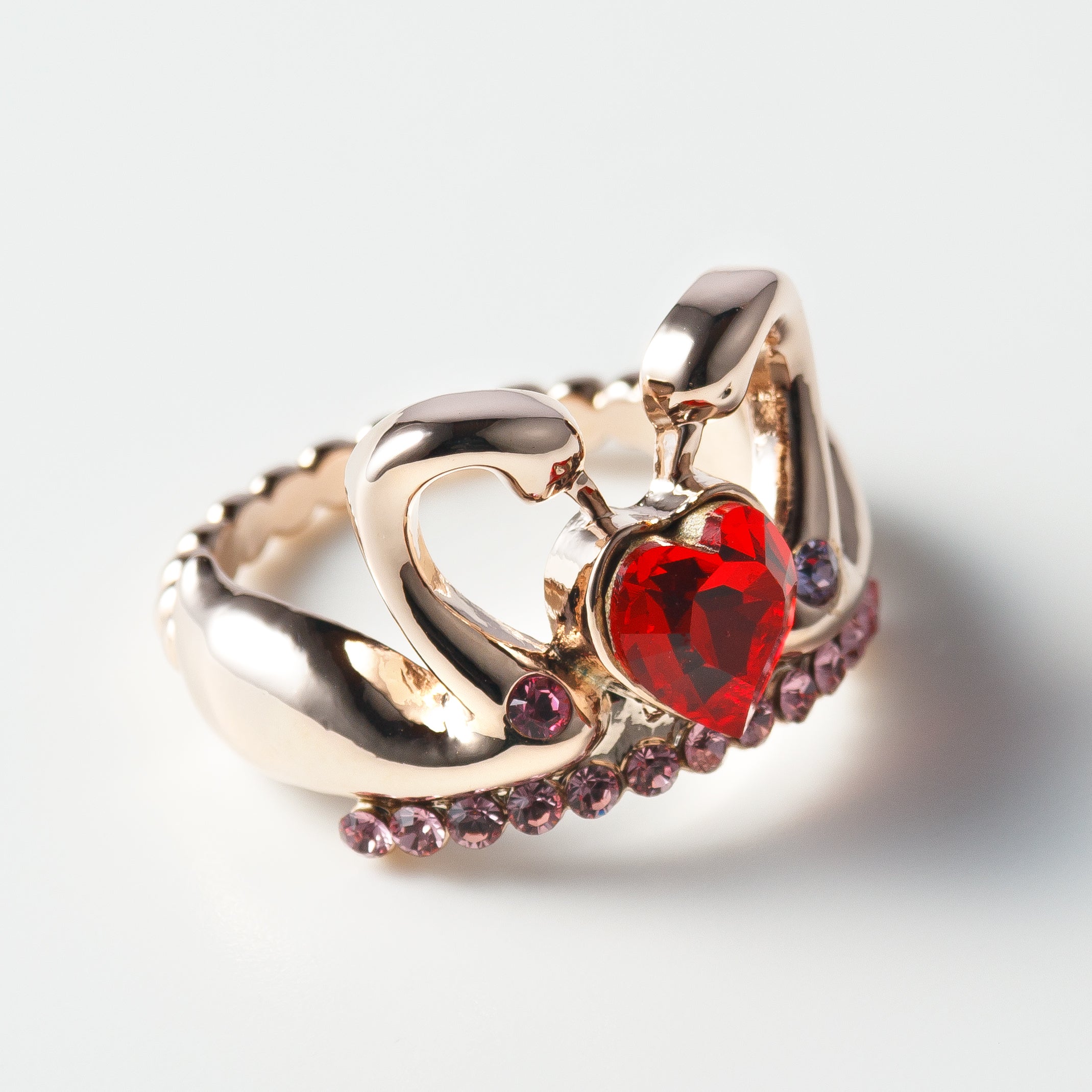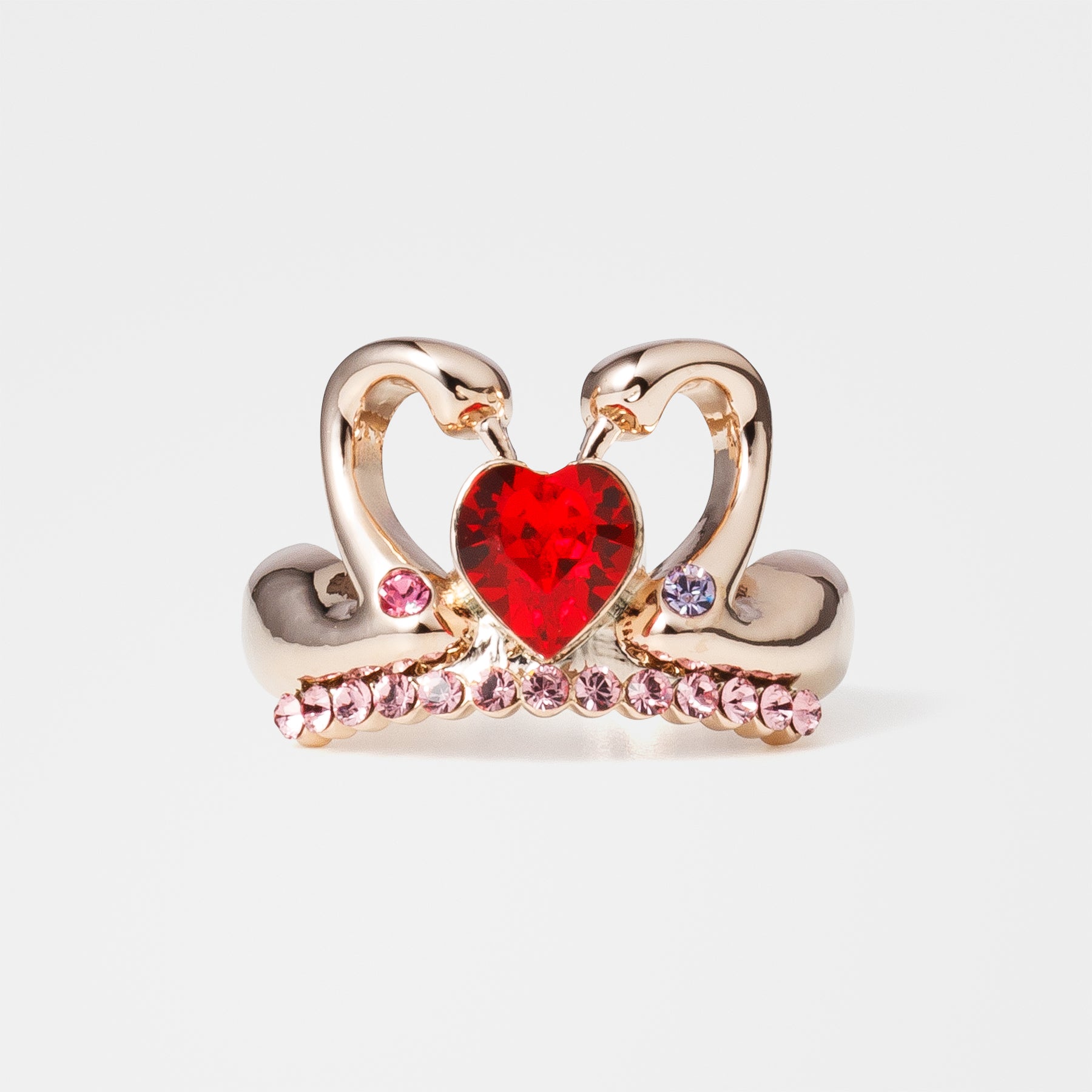 中央で真っ赤なライトシャムのハートを囲む2羽のスワン。実は、歴代のスワンたちと同じ「あの子たち」をイメージしてデザインされています。首元に光るクリスタルの色も、初回からずっと変わらない大切なこだわり。そんな変わらないストーリーを抱きながら、ピンクゴールドの優しい質感が、今の気分にぴったりの温もりを添えてくれます。