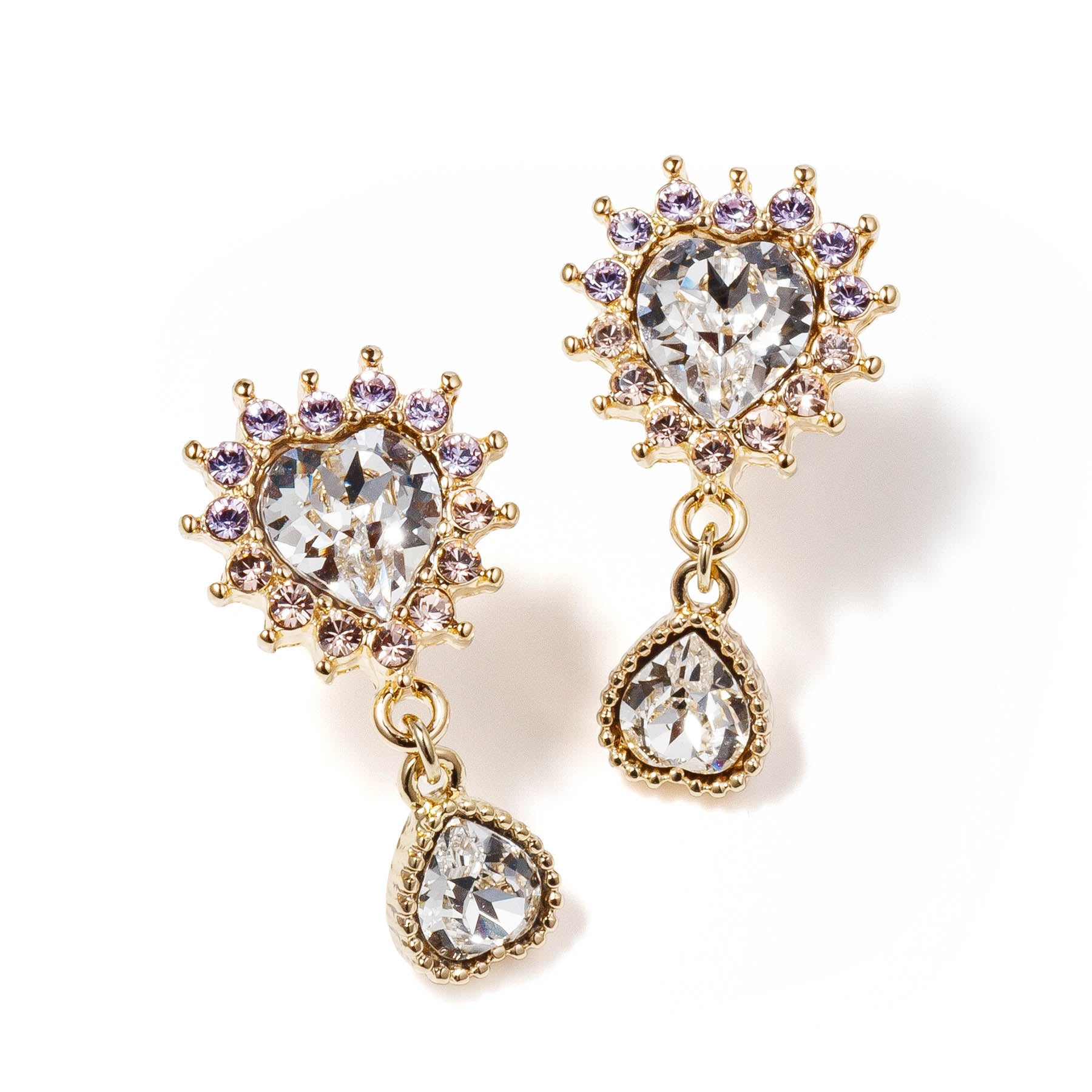 設計主題是“日出”,一輪太陽從平靜的海面緩緩升起。圍繞著中央的水晶心形,上半部為紫羅蘭色,下半部為淺桃色,展現了黎明時分天海交融的美妙漸變。下方搖曳的心型靈感源自水面反射的光芒。每當它輕柔地在你眼前搖曳,都帶來清新愉悅的感受,如同開啟嶄新的一天。